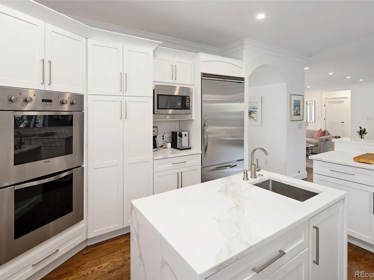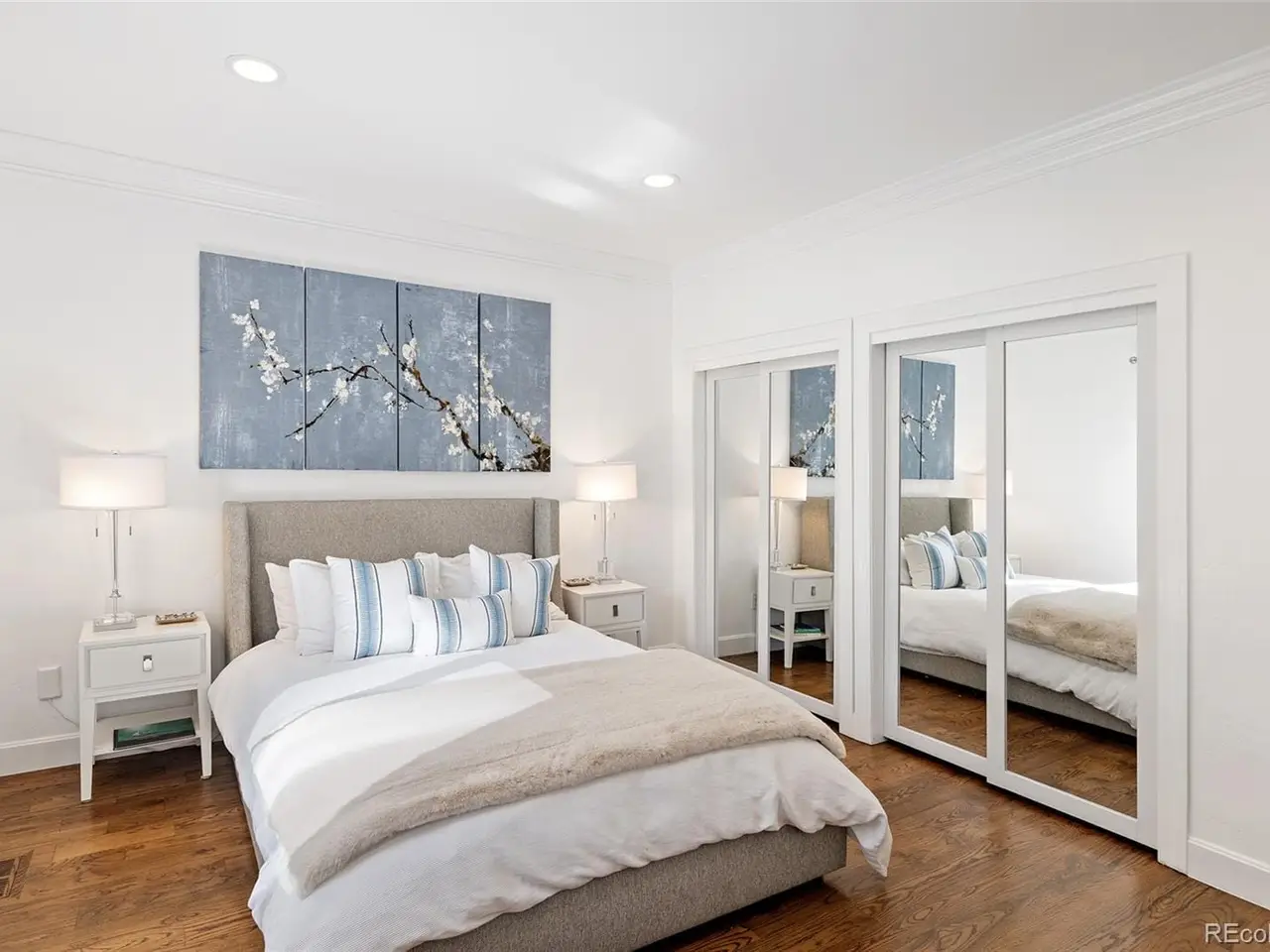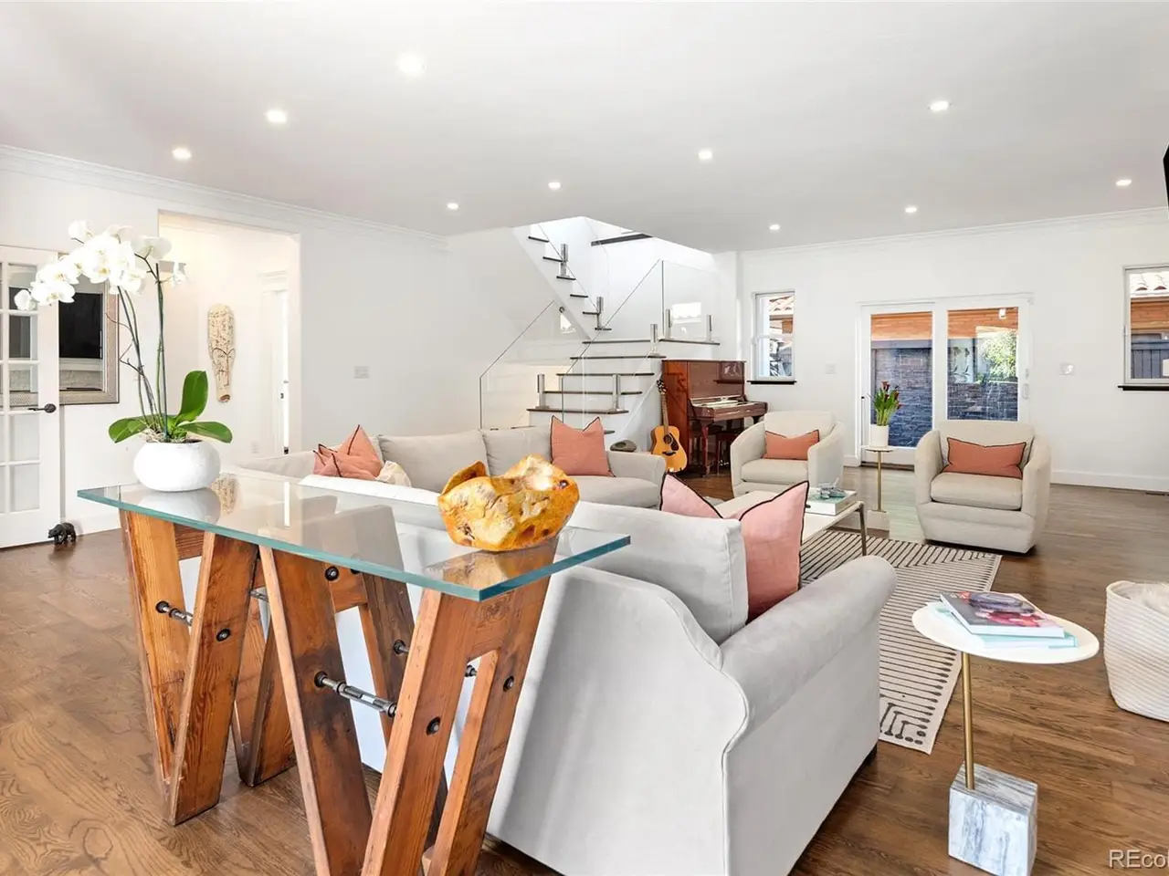 Rebuilt in 2009 with timeless craftsmanship and thoughtful updates, this residence blends elegance with everyday comfort in one of Denver's most desirable neighborhoods. With five bedrooms and an office, it offers value unmatched in the neighborhood. Southern exposure fills each room with natural light, while tree-lined streets, nearby parks, and vibrant dining create the perfect mix of neighborhood charm and city convenience. Inside, new oak floors and an open layout center around a welcoming fireplace, balancing comfort and style. The renovated chef's kitchen features custom cabinetry, quartz countertops, Bosch and Viking appliances, and an island with prep sink and seating - ideal for gatherings. A main floor office with French doors and a spacious main-floor bedroom with en-suite bath make everyday living effortless. Upstairs, the primary suite boasts a cozy fireplace, spa-like bath, and generous walk-in closet, accompanied by two sunlit bedrooms, a full bath, and a convenient laundry room. A finished basement with bedroom, a bath and fireplace provides flexible space for guests, a gym, or media. Outdoors, a tranquil water feature, two flagstone patios, and a firepit combine to create a private backyard oasis. All this in an unbeatable location with preferential waiting list to the Crestmoor Swim & Tennis Club. New furnace and A/C for main floor & basement installed 2022. New furnace & A/C for upstairs installed 2020.
