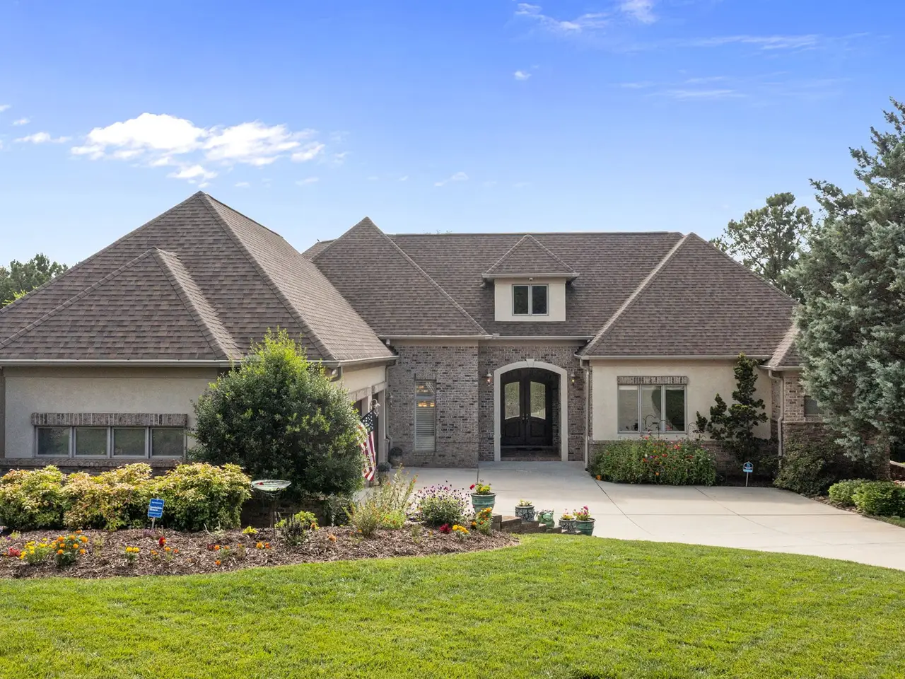 Perched on an elevated lot with views of 8th fairway at Verdict Ridge Golf Course, this stunning retreat blends timeless elegance with resort-inspired living. Step inside a sunlit main level where the spacious kitchen flows into the family room perfect for entertaining with tranquil golf course vistas. An elevator provides access throughout, while the primary suite offers a spa-style bath and dual walk-in closets. The laundry room doubles as a workspace. The office & the fireside sitting room add charm. Car lovers will enjoy the 3-car garage with epoxy floors and workshop space. Outside, your private oasis awaits complete with a heated salt water pool, covered patio, screened-in porch with fireplace & lush landscaping ideal for relaxing under the stars. The finished walk-out basement features 3 guest rooms, 2 full baths, full kitchen and bar, game/family room and generous storage. With striking curb appeal and refined design throughout this is a paradise you'll never want to leave!
