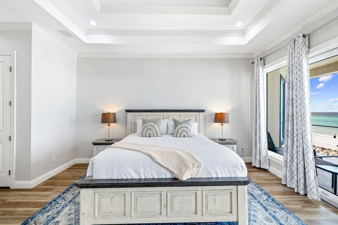 Welcome to Crystal Cabana, a gorgeous gulf front property located in Destiny Shores, one of Destin's most coveted luxury communities. Breath-taking views abound through large windows and doors throughout this light-filled beach home. Balconies on both levels span the entire width of the home and provide a relaxing retreat to enjoy the natural surroundings, sounds of the surf, and the emerald green waters. Stairs down from the lower balcony lead to the sparking white quartz sand that Destin is famous for! Features of this beautiful home include luxury furnishings & light fixtures, open spacious living/dining area, and modern well appointed kitchen. There are two updated master suites, one on each level, that include king beds, walk-in showers, and soaker tubs. The second level boasts three more guest rooms, each with their own bath. A powder room and laundry are located on the first level and there is a 2-car garage and driveway space for parking as well. Recent updates include new furniture & decor, new paint and flooring in bedrooms, and more! Owner's and guests enjoy exclusive access to Destiny Shores' numerous amenities including the upscale community pool, fully equipped fitness facility, and tennis court--all within easy walking distance. Crystal Cabana is located in the heart of Destin, less than a mile from two favorite local dining spots, Camille's and The Crab Trap. Also, less than TWO miles to Destin Commons which offers a vast array of activities including, shopping, dining, a movie theater, bowling alley, grocery stores and more!