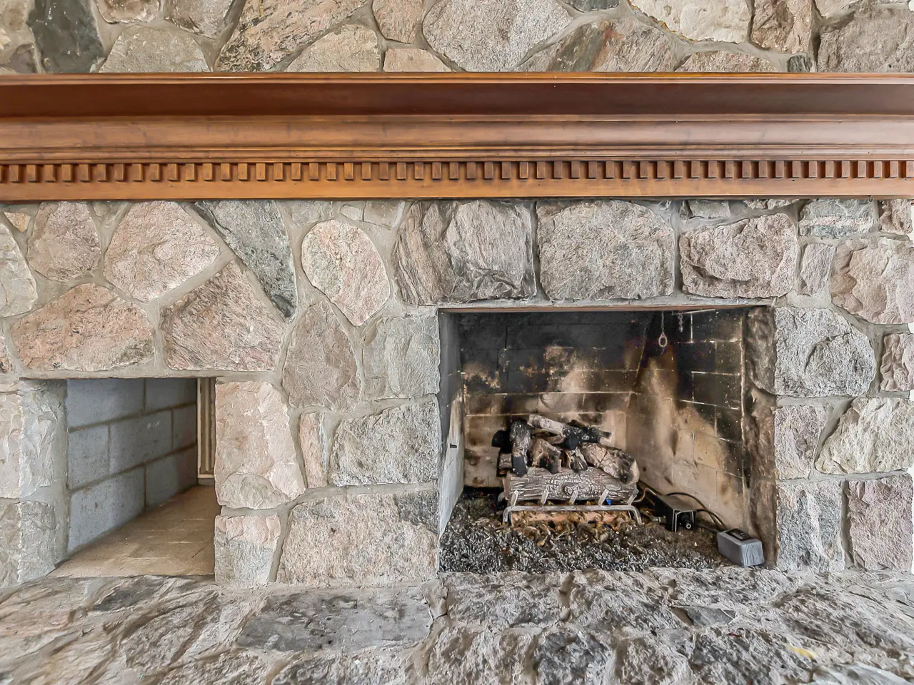 Fieldstone fireplace