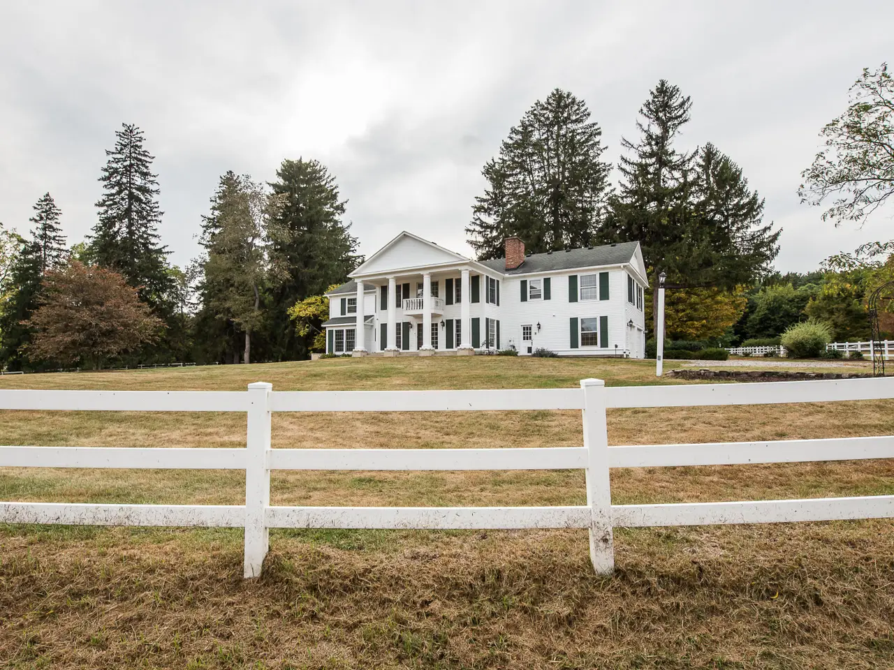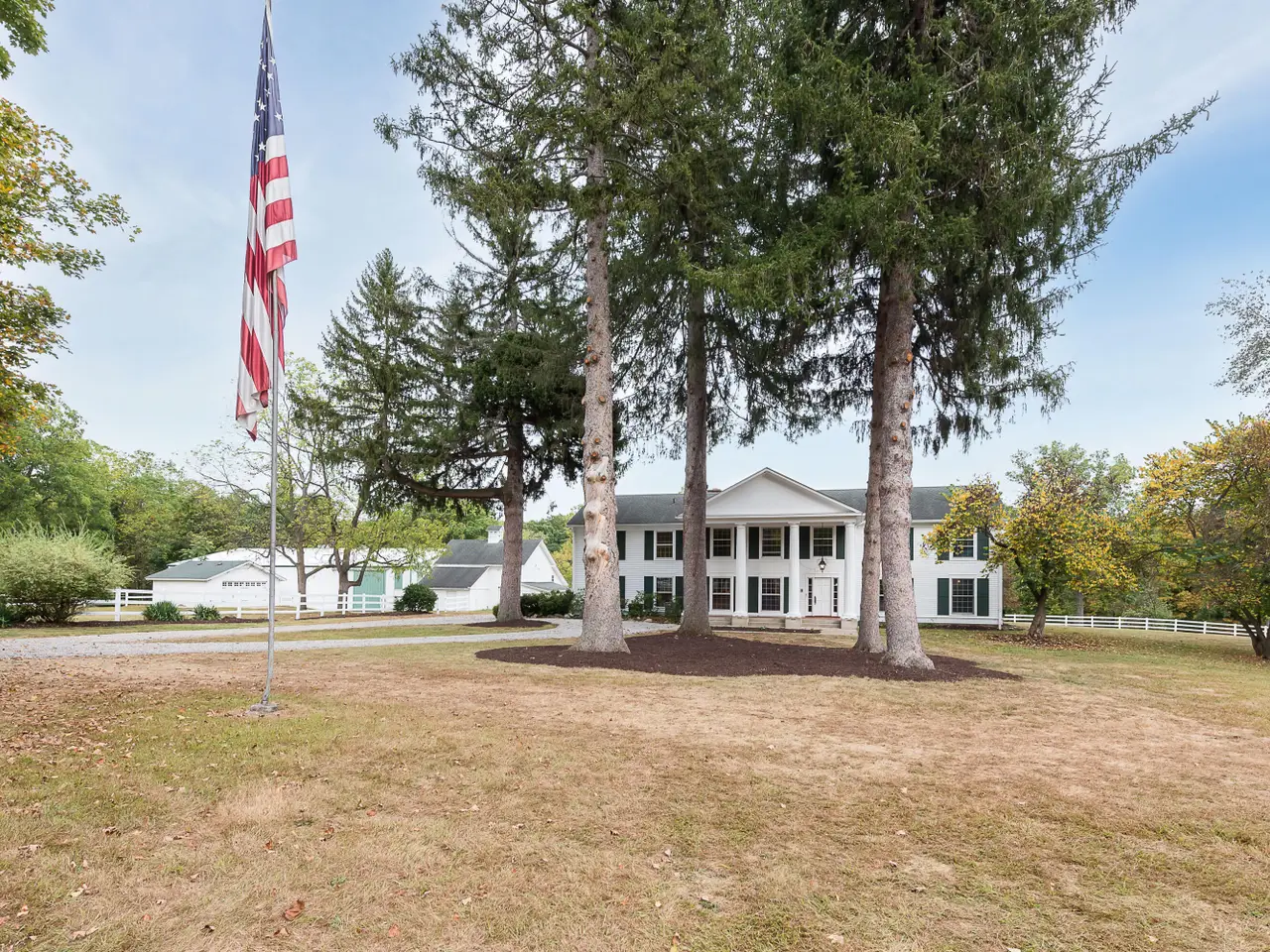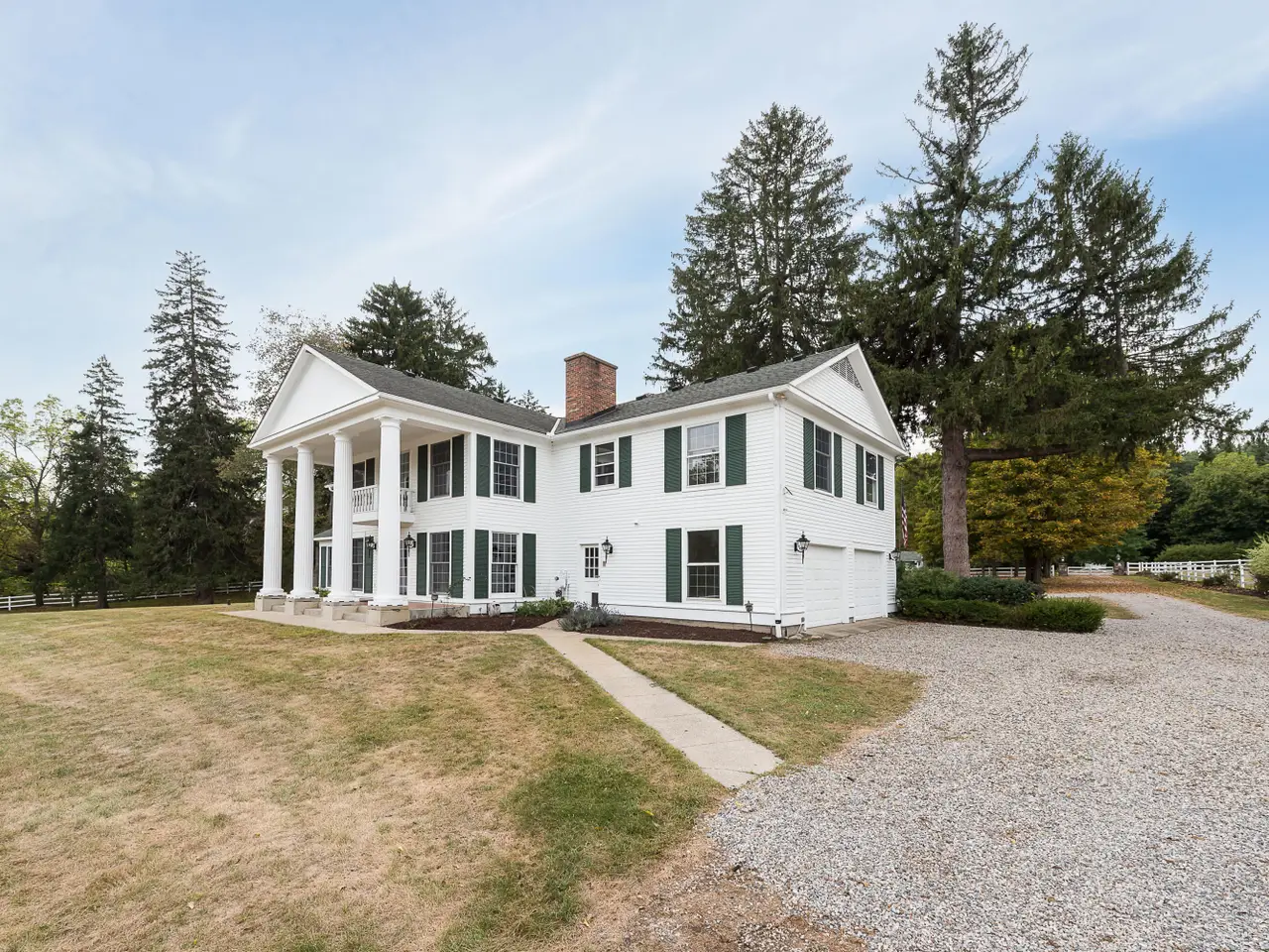 Introducing 8044 Dexter Pinckney Road, a once-in-a-lifetime riverfront estate where timeless character meets endless possibility. On the market for the first time in 57 years, this extraordinary property spans nearly 8 acres with almost 900 feet of private Huron River frontage, framed by Metropark land for unmatched privacy. A sweeping curved staircase welcomes you inside, where crown moldings, formal dining and living spaces, and a first-floor office set the tone. The family room, anchored by a fieldstone fireplace and exposed beams, opens to a sunlit breakfast nook and chef's kitchen with granite countertops and custom cabinetry. Upstairs, all bedrooms are thoughtfully placed, including a primary suite with a Romeo and Juliet balcony overlooking the manicured grounds and river. A private one-bedroom apartment offers flexibility for a caretaker or multigenerational living. The grounds include fenced pastures, multiple outbuildings, and a 6,000 sq. ft. indoor riding arena perfect for equestrian pursuits, a wedding venue, or a car collection. Mature trees and curated landscaping complete this rare offering, a true piece of Dexter history ready for its next chapter in luxury living.