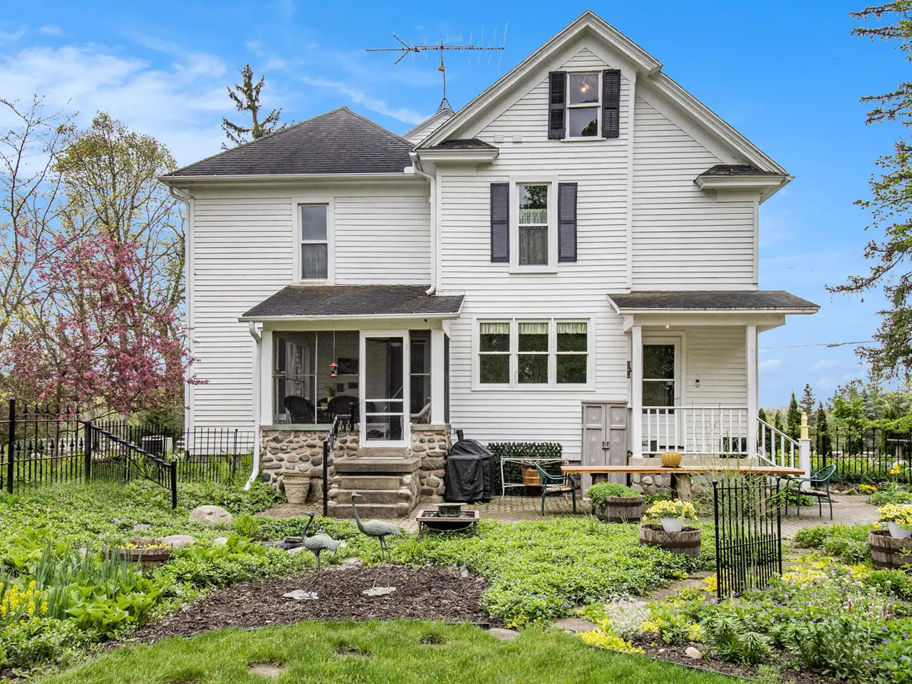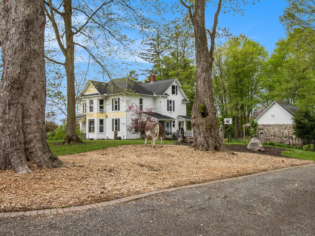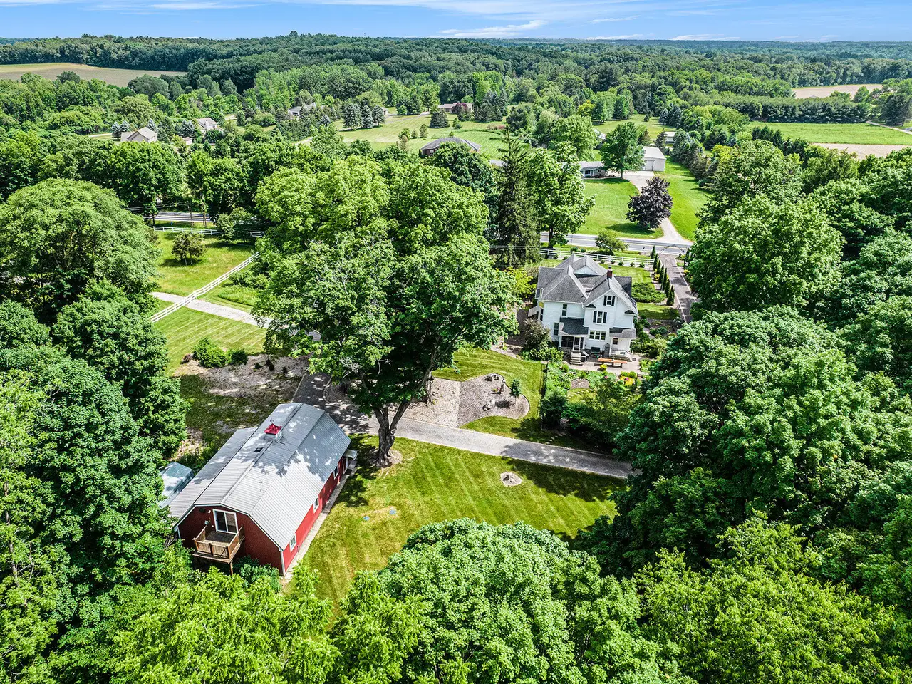 ''Sugar Maple Ridge'': Historical charm blends graciously with new-age comfort and quality in this classic Victorian home on gated 5 acres. *Minutes from Ann Arbor and Brighton and moments to Dexter. *Natural stone wraparound porch. *Spacious foyer with oversized case and base featuring elegant stairwell. *Light-filled living and dining rooms with coved detail. *Beautifully updated kitchen with copper sink, stainless appliances, and custom walnut counters opening onto family room/office with cozy gas fireplace. *Upstairs featuring 4 spacious bedrooms, 2 of which with original pine plank floors revealed, and 2 updated full baths with laundry. *Screen porch opening onto brick patio in secluded fenced back yard with garden house.*Stone 3 car garage. *2800 sq. ft. heated 5 car garage/workshop barn with studio apartment. *Fully restored stone outbuilding with half bath. Exterior completely repainted spring 2025.