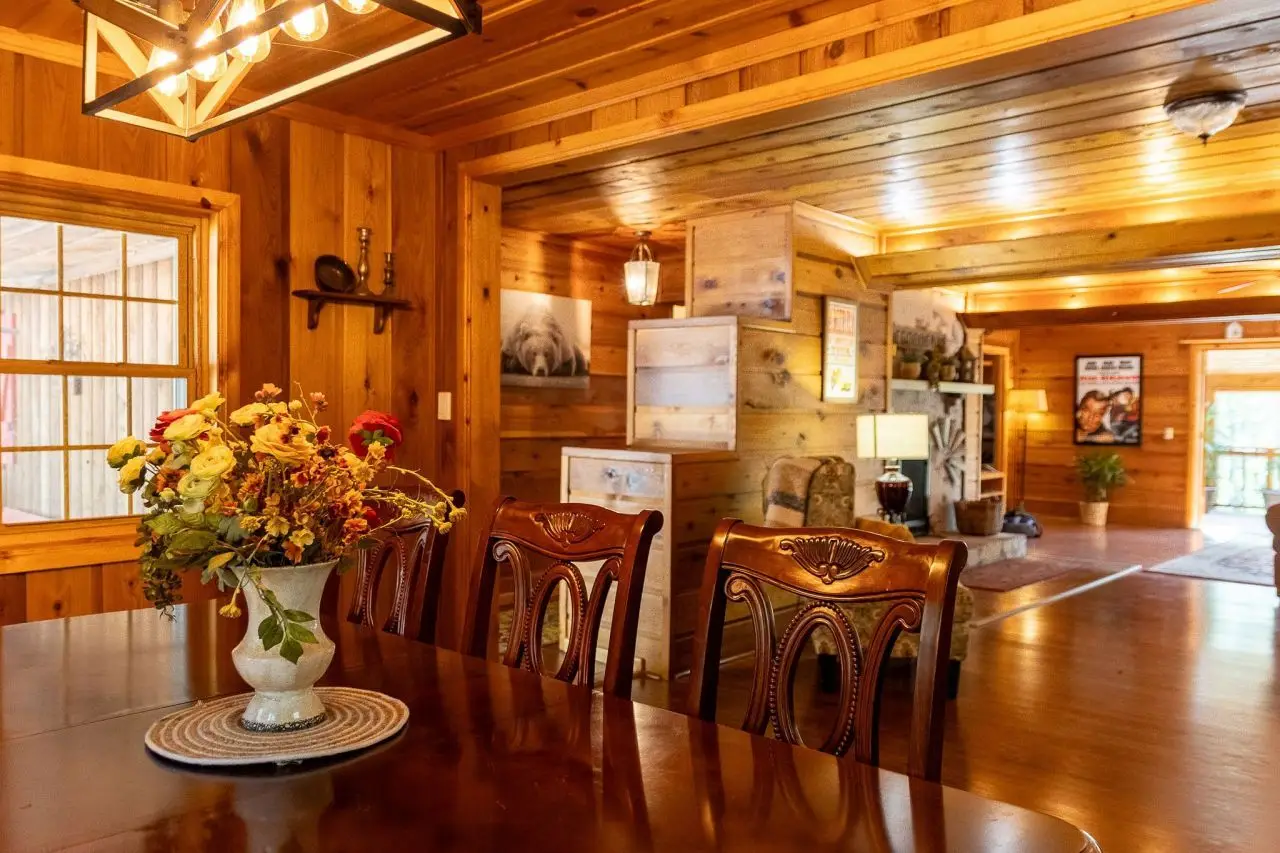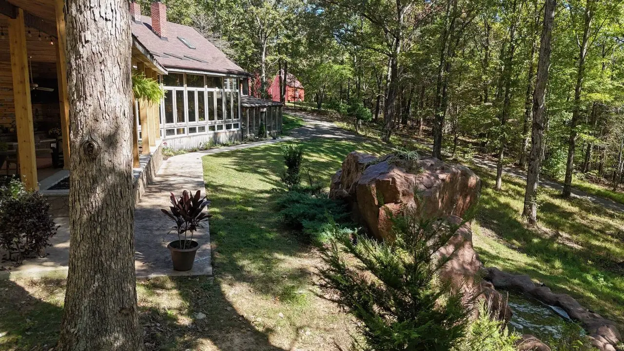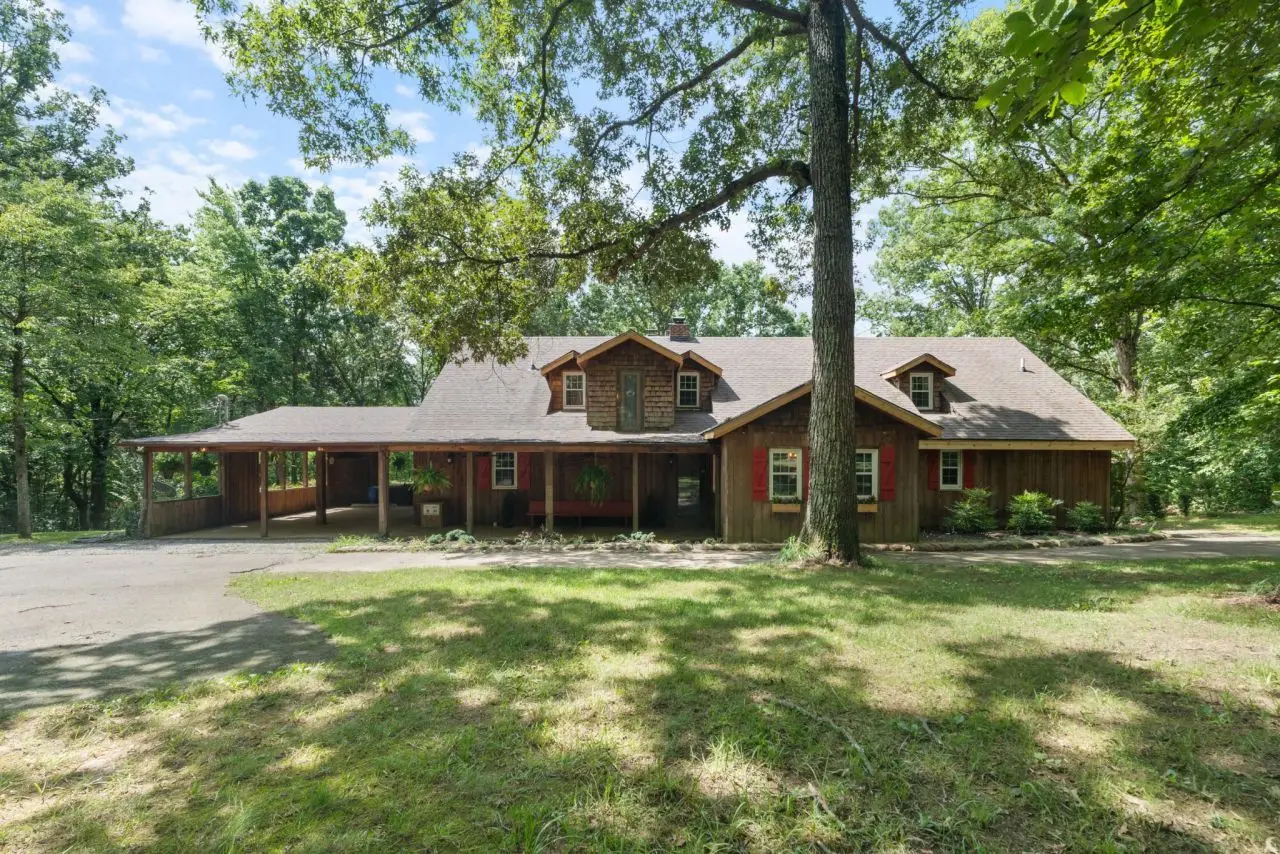 Unique 4bdrm,4.5bath rustic retreat w/guesthouse, all nestled within 25 private wooded acres. This 5603sqft Western Red Cedar lodge style home is a property like NO OTHER, offering total seclusion and elevated views. Surrounded by a custom waterfall feature, 2 spring fed ponds, a creek and an abundance of wildlife. This 'Greenbelt (tax incentive program) property is just 12 min from downtown Dickson and 50 min from Nashville. Highlights & Features...~Large kitchen w/oversized island, a JennAir (gas) stove top, new S-Steel double ovens and SxS refrigerator, marble countertops and a German smeared wood burning FIREPLACE. ~Antique French doors separate the kitchen from the spacious living room that offers soaring ceilings and large windows that overlook the waterfall, pond & driveway ~Two newly renovated primary bedrooms w/en-suites on the main floor that Include a tiled walk-in shower and large soaking tub ~Take the ELEVATOR to the 2nd floor where there are two large bdrms, a full bath, lots of storage & a library loft overlooking the main floor ~Ride down to the 'lower level basement where there is a full kitchen, half bath and a large workshop that could easily be converted into additional bedrooms & bath, plus other unfinished rooms for storage or expansion ~The adjacent ATRIUM is fully heated & cooled, and offers a NEW HOT TUB and access to the attached GREENHOUSE ~Step outside to the newly renovated elevated & Inviting ENTERTAINMENT AREA expertly crafted with cedar and includes ample seating, a wood-burning FIREPLACE and built-in grilling station ~PLUS a NEW two-bedroom GUESTHOUSE that is cleverly hidden/built-in behind the barn offering ultimate privacy, and could easily be used as a RENTAL or AirBNB ~A 10ac build site has already been surveyed & perked if needed to build another home ~Old spring house located near the creek, could be used for garden spot or animals