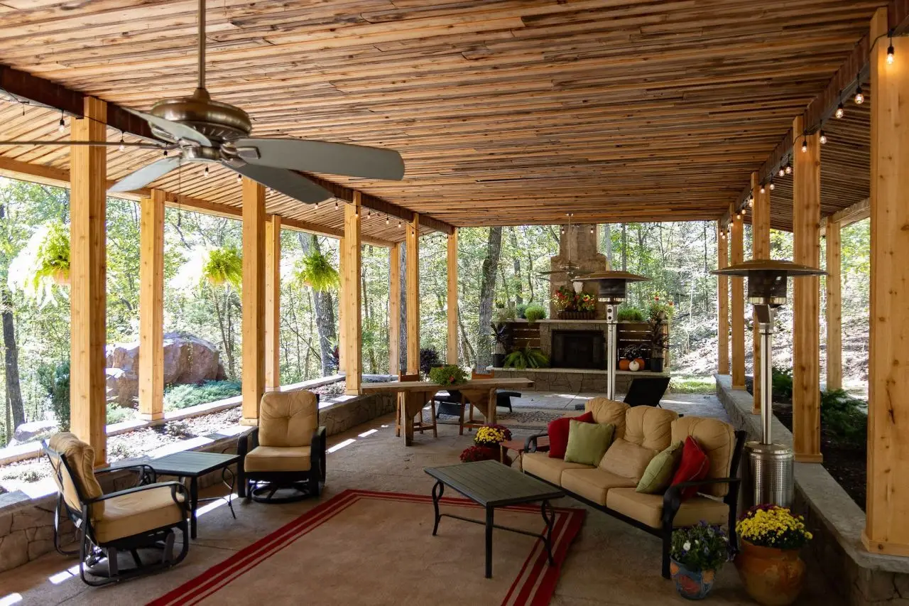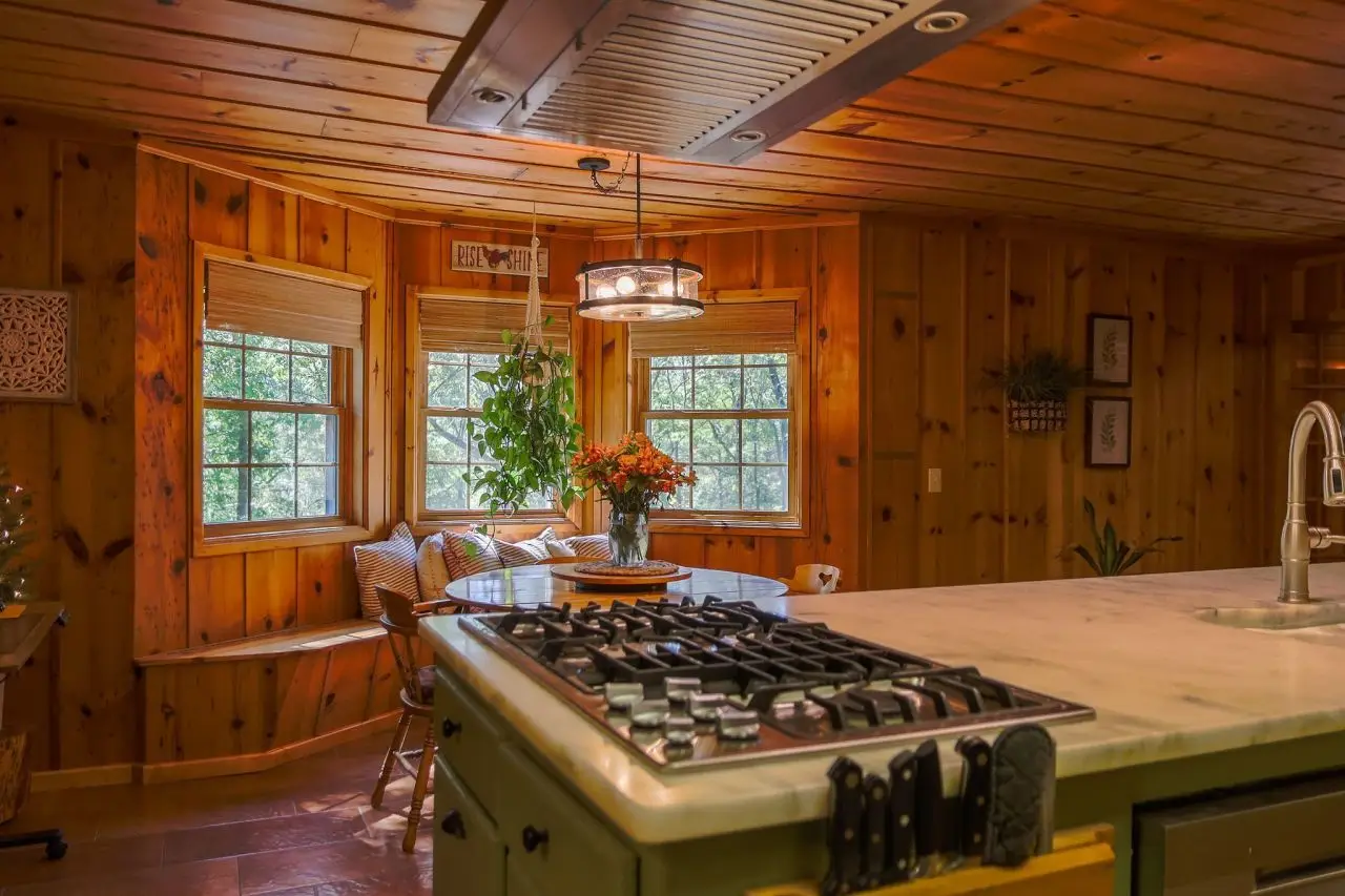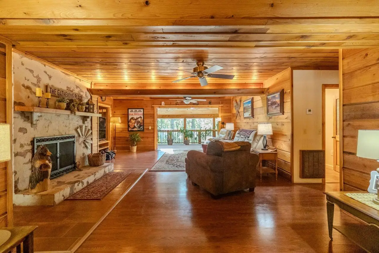 Unique 4bdrm,4.5bath rustic retreat w/guesthouse, all nestled within 25 private wooded acres. This 5603sqft Western Red Cedar lodge style home is a property like NO OTHER, offering total seclusion and elevated views. Surrounded by a custom waterfall feature, 2 spring fed ponds, a creek and an abundance of wildlife. This 'Greenbelt (tax incentive program) property is just 12 min from downtown Dickson and 50 min from Nashville. Highlights & Features...~Large kitchen w/oversized island, a JennAir (gas) stove top, new S-Steel double ovens and SxS refrigerator, marble countertops and a German smeared wood burning FIREPLACE. ~Antique French doors separate the kitchen from the spacious living room that offers soaring ceilings and large windows that overlook the waterfall, pond & driveway ~Two newly renovated primary bedrooms w/en-suites on the main floor that Include a tiled walk-in shower and large soaking tub ~Take the ELEVATOR to the 2nd floor where there are two large bdrms, a full bath, lots of storage & a library loft overlooking the main floor ~Ride down to the 'lower level basement where there is a full kitchen, half bath and a large workshop that could easily be converted into additional bedrooms & bath, plus other unfinished rooms for storage or expansion ~The adjacent ATRIUM is fully heated & cooled, and offers a NEW HOT TUB and access to the attached GREENHOUSE ~Step outside to the newly renovated elevated & Inviting ENTERTAINMENT AREA expertly crafted with cedar and includes ample seating, a wood-burning FIREPLACE and built-in grilling station ~PLUS a NEW two-bedroom GUESTHOUSE that is cleverly hidden/built-in behind the barn offering ultimate privacy, and could easily be used as a RENTAL or AirBNB ~A 10ac build site has already been surveyed & perked if needed to build another home ~Old spring house located near the creek, could be used for garden spot or animals