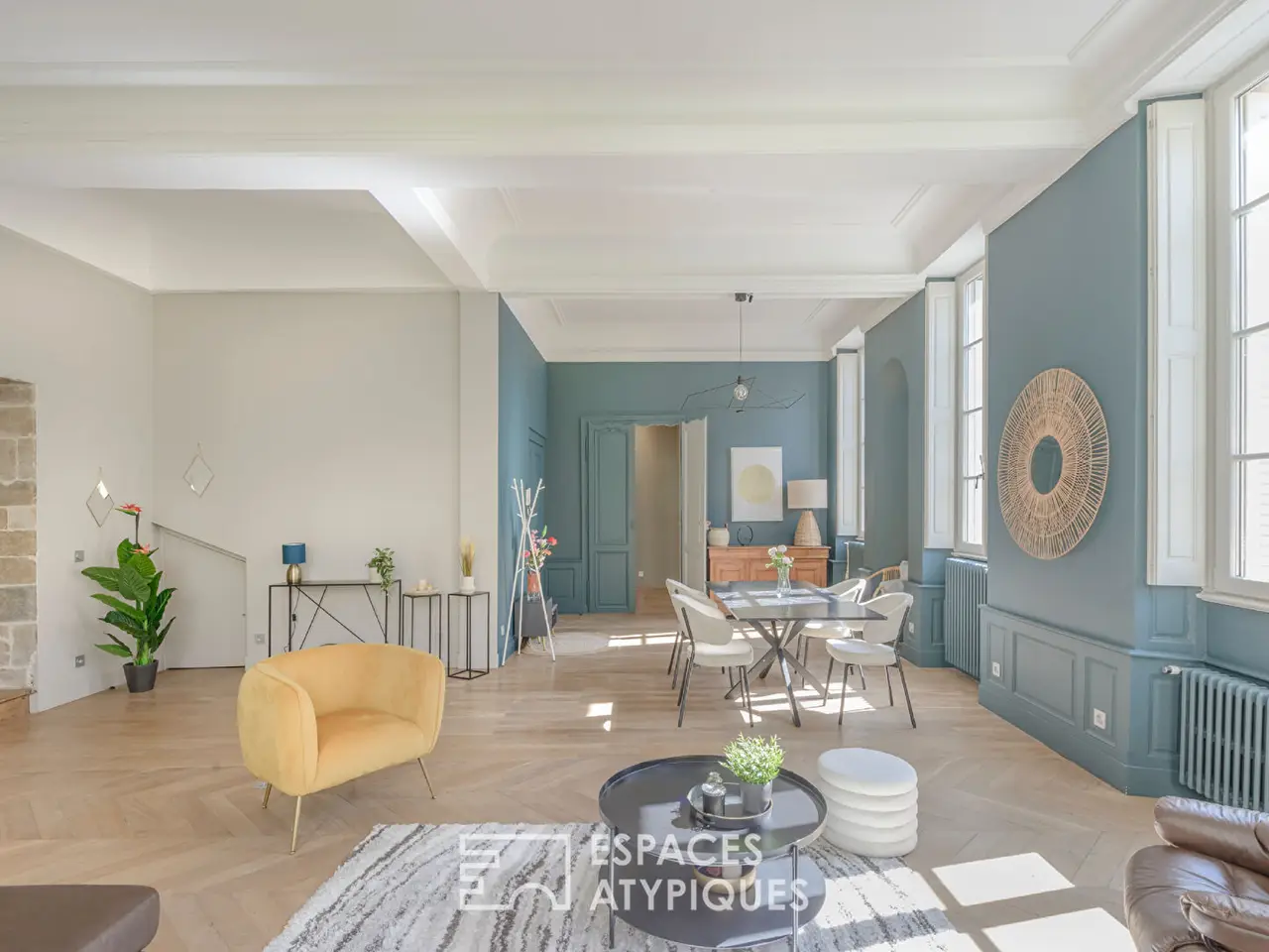 Located in a beautiful private mansion in the pedestrian area of the city of the Dukes, this beautiful apartment of 241m2 on the ground floor, was completely renovated in 2017 with high-end services. Beyond its address, it benefits from a private courtyard planted with jasmine and honeysuckle and direct access without using the common areas. The main entrance, from the private courtyard, opens onto a large space allowing you to equip it as you wish, leading to all the living rooms and to the lower level. The 60m2 living room, benefiting from exceptional light with its double exposure and its view of the intimate courtyard, offers a beautiful functional marble fireplace, herringbone parquet flooring and a beautiful high ceiling. The interior wooden shutters, woodwork and moldings highlight the character of yesteryear. The modern, equipped kitchen is a real dining room, warm with its exposed stone wall. On the night side, two suites with private bathrooms are air-conditioned. On the second level, a third suite with shower room offers its own independent entrance, suggesting a professional activity (guest room or office). Finally, the converted cellar of 60m2 on the ground with its window will leave a mark on everyone's heart; where the uses can be varied according to desires (additional bedroom, dormitory, TV lounge, games room, :). A large cellar with direct access from the apartment or outside will house a significant storage space. Finally, a storage box in the old stables of the hotel completes the annexes of this 'catalog' apartment. Possibility of acquiring in a secure neighboring condominium, a parking space equipped with an electric terminal. Different independent entrances allow many possibilities. This property benefits from a dual destination, for professional and / or residential use. The prime location and luxurious services constitute an ideal place to live and / or work. Condominium of 67 lots including 7 residential (Procedure in progress). Annual charges: 3,222 euros. ENERGY CLASS: D / CLIMATE CLASS: D. Estimated average amount of annual energy expenditure for standard use, established from 2021 energy prices: between EUR3,115 and EUR4,215 Information on the risks to which this property is exposed is available on the Georisques website http://www.georisques.gouv.fr REF. 787EB Additional information * 5 rooms * 4 bedrooms * 3 floors in the building * 7 co-ownership lots * Annual co-ownership fees : 3 222 € * Property tax : 2 646 € * Proceeding : Non Energy Performance Certificate Primary energy consumption d : 174 kWh/m2.an High performance housing
