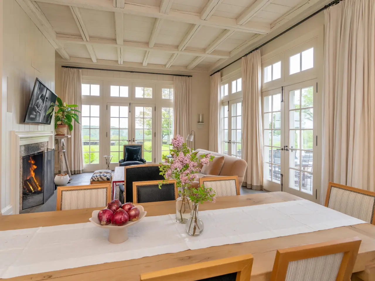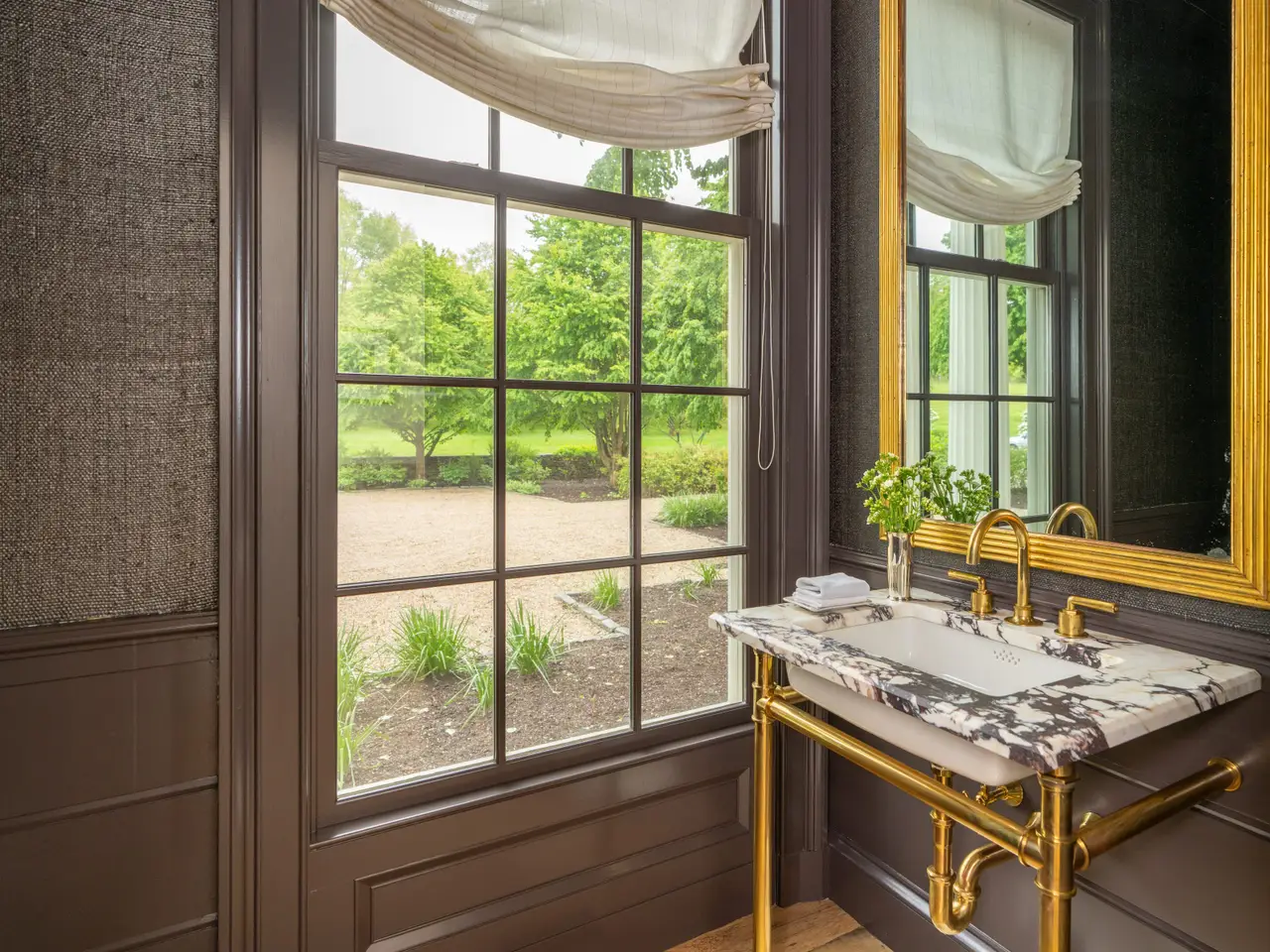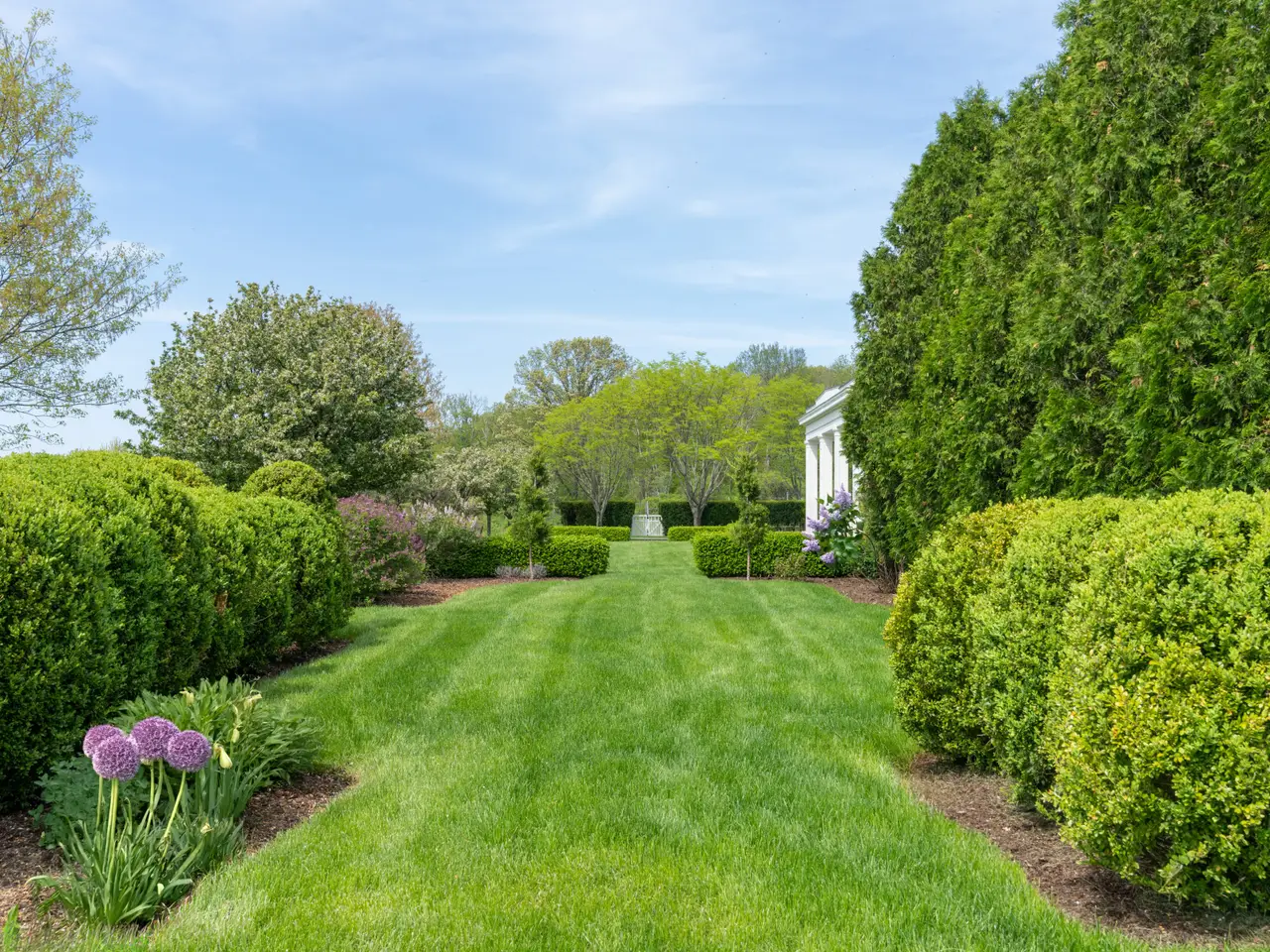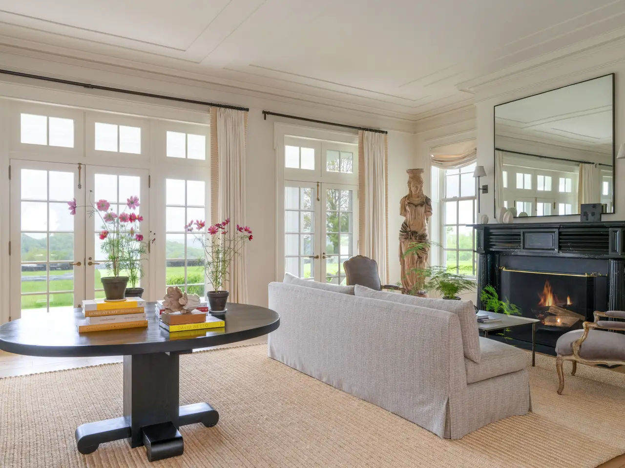 Privately sited at the end of a tree-lined drive, this architectural estate enjoys panoramic views over the Hudson Valley and Catskill Mountains. Designed by AD100 architect Gil Schafer, with landscape architecture by Warren Byrd, the home is a Greek Revival masterpiece that blends timeless elegance with modern sophistication. As featured in Elle Decor, the interiors showcase meticulous craftsmanship and richly layered detail. A dramatic double-height entry gallery centers around a sculptural spiral staircase, offering a striking introduction to the home. From there, a 36 x 24-foot great room unfolds with 11-foot-plus ceilings, two wood-burning fireplaces, and French doors leading to an expansive covered porch that captures stunning sunset views. The kitchen is outfitted with top-of-the-line appliances, hand-hewn beams, dual pantries, and an inviting lounge area, perfect for gathering and entertaining. A large-scale wet bar connects the kitchen and great room, while the adjacent dining area opens to a beautifully landscaped pool terrace. A heated breezeway leads to private guest quarters, offering two en-suite bedrooms and a comfortable sitting room. In the west wing, a richly paneled library with fireplace sits beside the serene primary suite, which includes dual dressing rooms, luxurious bathrooms, and views of an English garden and the rolling landscape beyond. Upstairs, two additional bedroom suites each feature private sitting areas and discreet breakfast bars, creating refined and restful retreats. An extraordinary offering where architectural pedigree, design excellence and natural beauty converge.