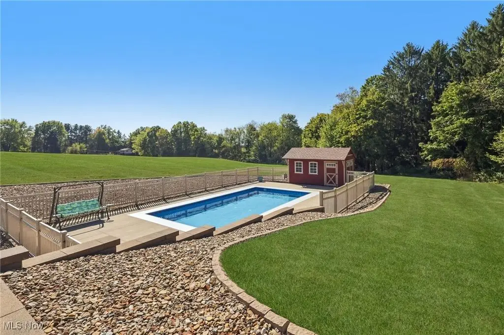 Stunning Custom Ranch on nearly 2 Acres in the charming Village of Doylestown. Welcome to your dream home! This beautifully designed 4-bedroom, 3.5-bath custom ranch offers an inviting open-concept floor plan perfect for modern living and entertaining. Set on a picturesque lot, this property is a rare find with exceptional amenities both inside and out. Step into a welcoming foyer that flows seamlessly into a spacious office, ideal for working from home. The heart of the home features an expansive eat-in kitchen and great room with an abundance of natural light, perfect for gatherings and everyday living. The main level boasts two bedrooms and a full bath on one side, while the luxurious owner's suite, a convenient half bath, and laundry room are thoughtfully situated on the other side of the home for maximum privacy and comfort. The finished walk-out basement is an entertainer's paradise, complete with a large rec room, fourth bedroom, full bath, workroom, flex space, exercise room, and ample storage. Step outside to your private patio and sparkling saltwater pool, your own backyard oasis for summer fun and relaxation. Car enthusiasts and hobbyists will love the attached heated 4+ car garage, equipped with electricity and water for ultimate convenience. The impressive 48x64 outbuilding features a basketball court, bathroom, and space for all your hobbies, projects, or storage needs. The outbuilding has an attached 10x20 utility shed and a 12x34 lean-to for camper/trailer storage. Enjoy the nearly two acres of beautifully maintained grounds and a custom home with luxury upgrades and premium features while being just minutes from local amenities in Doylestown, Wadsworth, Norton, and Akron.