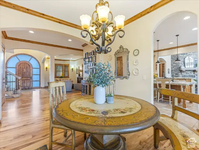 Nestled in the heart of SunCrest, this 5-bedroom, 4-bathroom home stretches across 8,499 square feet of mountain living on a .76-acre lot. You couldn't build this kind of home, on this kind of lot, for this kind of price in today's market. Not even 20 years old, it captures everything SunCrest is known for: fresh air, miles of hiking and biking trails, wide-open space, and views that make you stop mid-sentence. Four decks wrap around the exterior, offering front-row seats Lone Peak, Timpanogos sunrises and twinkling city lights at night. And with a brand-new roof just installed, you get peace of mind to match all that curb appeal. Inside, the main level is all about ease and elegance. It offers true main-floor living with two full bedroom suites. The primary retreat includes a private deck, spa-like ensuite with a walk-in shower, jetted tub, dual vanities, and a roomy walk-in closet. On the opposite side of the main level, a second bedroom also features its own ensuite. Perfect for guests, multigenerational living, or long-stay visitors. The kitchen, dining, and family room flow together seamlessly, making it ideal for both daily life and entertaining. Real hardwood floors, tall ceilings, and windows that frame mountain views add warmth and light throughout. Add in a formal living room, an office with fireplace, and main-floor laundry, and you've got the ideal daily setup. Details like plantation shutters and crown molding add charm and polish throughout. Upstairs, you'll find three additional bedrooms, two bathrooms, a second family room, a game area, and a second laundry room so there's no hauling baskets between floors. The basement is unfinished but well on its way. It features 9- to 11-foot 6-inch ceilings, framing in place, and roughed-in plumbing, and may even qualify as partially finished. The original plans (included) call for 2 full bathrooms, 2 bedrooms, a theater room, laundry, and a wide open family room. Whether you follow the original layout or bring your own vision to life, you'll appreciate the full walkout design and the wraparound deck that steps down to the lower level grassed yard. SunCrest continues to be one of Utah's best-kept secrets, and this home reflects the very best of it. The HOA includes internet, cable, a community clubhouse with a pool and gym, and events that make the neighborhood feel like home. A home this size, on a lot this rare, in a setting this special? That's not just a listing. It's a rare find that actually lives up to the phrase.