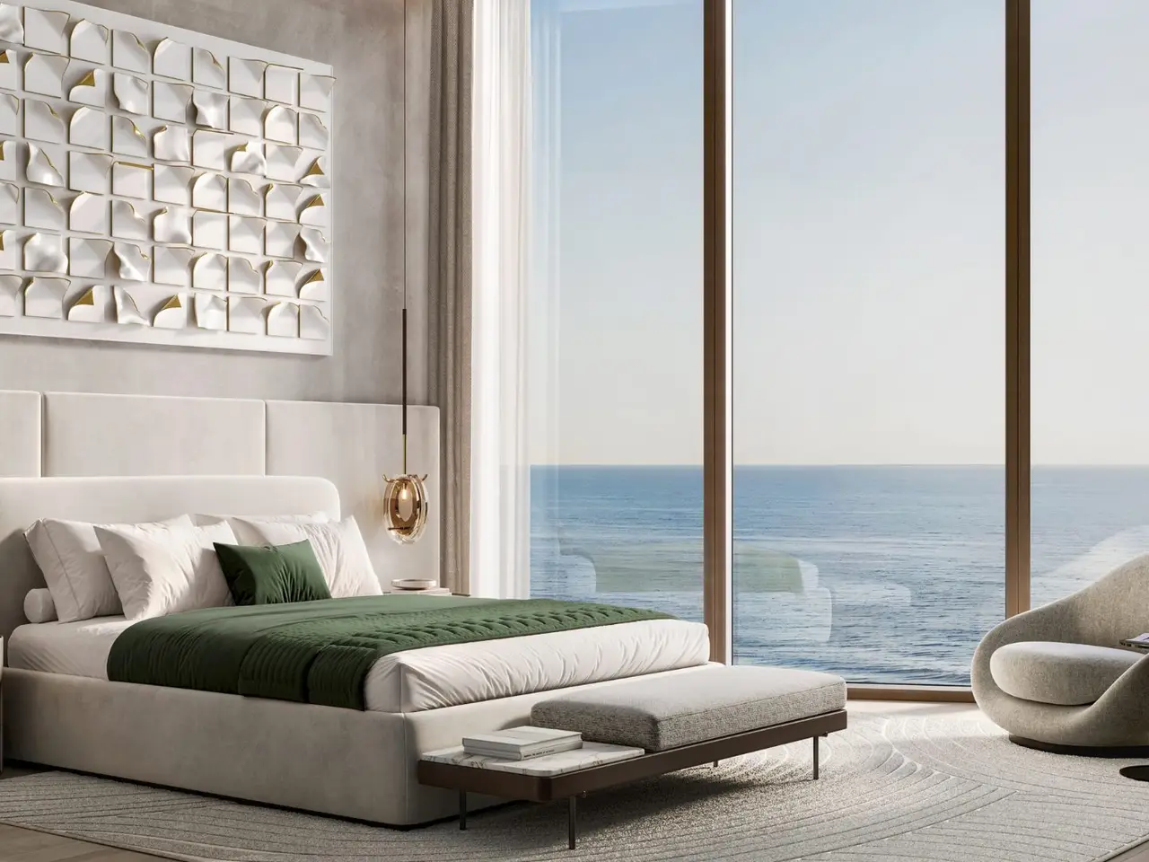 - Floor-to-ceiling glass façades offering uninterrupted sea and skyline views