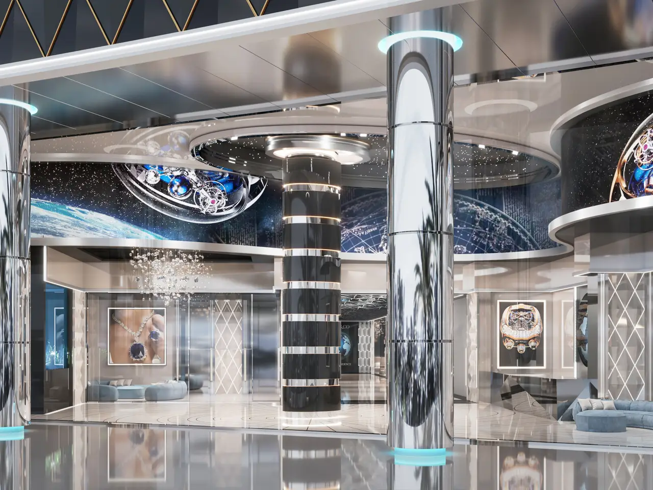 - Triple-height wellness lounge with spa, gym, and relaxation zones.
