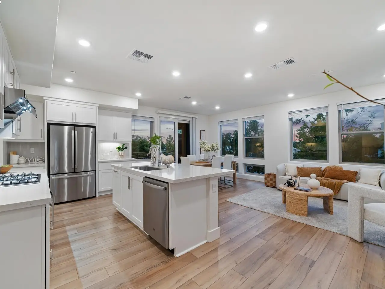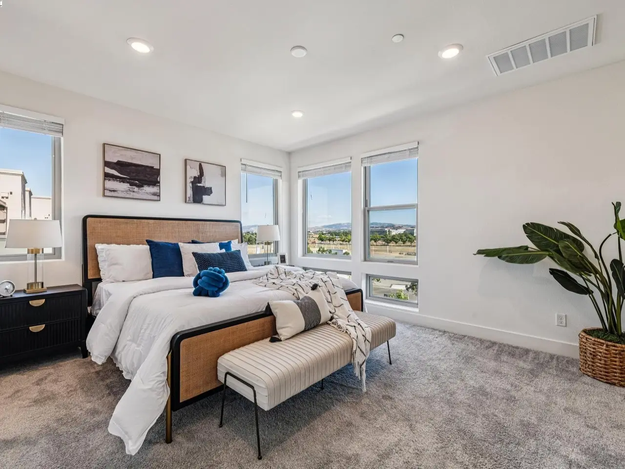 Welcome to this exceptional multi-story corner condo NORTH EAST Facing Front Door. The main level presents an inviting open living concept, flooded w/natural light from an abundance of windows that also offer stunning views. Enjoy peace & quiet thanks to the triple-paned windows designed for superior sound reduction. Contemporary kitchen, a chef's delight featuring sleek quartz countertops, elegant white shaker cabinets, a gas range, stainless steel appliances & a walk-in pantry. Spacious primary suite w/a walk-in closet, a double vanity & a large walk-in shower. 2bed/1ba on the same floor with washer/dryer in closet. Attached two-car garage w/driveway parking ensures easy access. Step out onto your private balcony to enjoy the views. Boulevard Rec Center, featuring a heated pool, meeting rooms, workout areas, a game room & outdoor lounges. Commuting is a breeze with easy access to major highways & just a 5-minute walk to BART. This prime location places you minutes from everyday essentials: groceries, banks, farmer's markets, diverse shopping options, charming cafes, exquisite dining, and entertainment at the local theater. Top-rated schools, beautiful parks, and a variety of recreational facilities are also within easy reach.