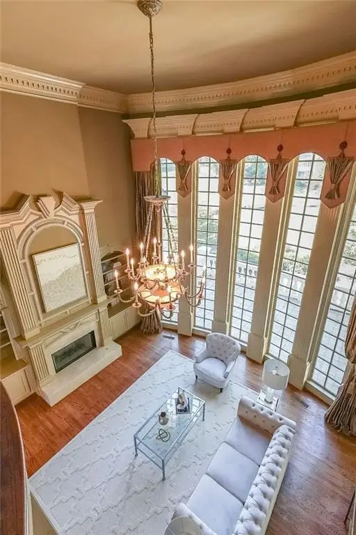 Magnificent four sides brick home with sweeping golf course views in prestigious Sugarloaf Country Club, a guard gated community. This estate home sits on one of the best lots in the community ... it is a premium golf course lot with sweeping views of the 3rd green and fairway, plus it is just under one acre and is set on a cul-de-sac near the gates. The home makes a grand first impression with its circular driveway that also provides plenty of parking. The grandness continues to the interior with a two story foyer graced by a circular staircase, gorgeous chandelier, a dramatic domed ceiling with inset lighting, and beautiful craftsmanship in the trim detail. The banquet-sized dining room and a generously sized fully paneled gentlemans study (with fireplace and built-in bookcases) flank the foyer. Straight ahead through the foyer is the elegantly appointed two story great room with its fireplace, another stunning chandelier, built-in bookcases, and views to the backyard and golf course. The gourmet kitchen is the heart of the floor plan with adjoining octagonal breakfast room, large walk-in pantry, and vaulted keeping room with fireplace and built-ins. The luxurious master suite is spacious and well-appointed with fireplace and his-n-hers closets. Upstairs is a second full master bedroom with the fifth fireplace, plus three additional large bedrooms with ensuite bathrooms and walk-in closets, and also a charming and unique octagonal office area. The terrace is finished with an entertaining bar, poker room, billiards room with the 6th fireplace, media room, and full bathroom and bathroom, plus there is TONS of room for storage. The home is in a great location in the neighborhood, on a cul-de-sac street near the gates with great golf views.
