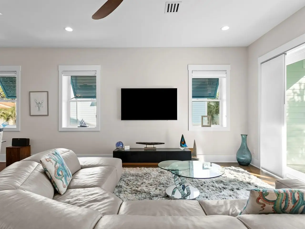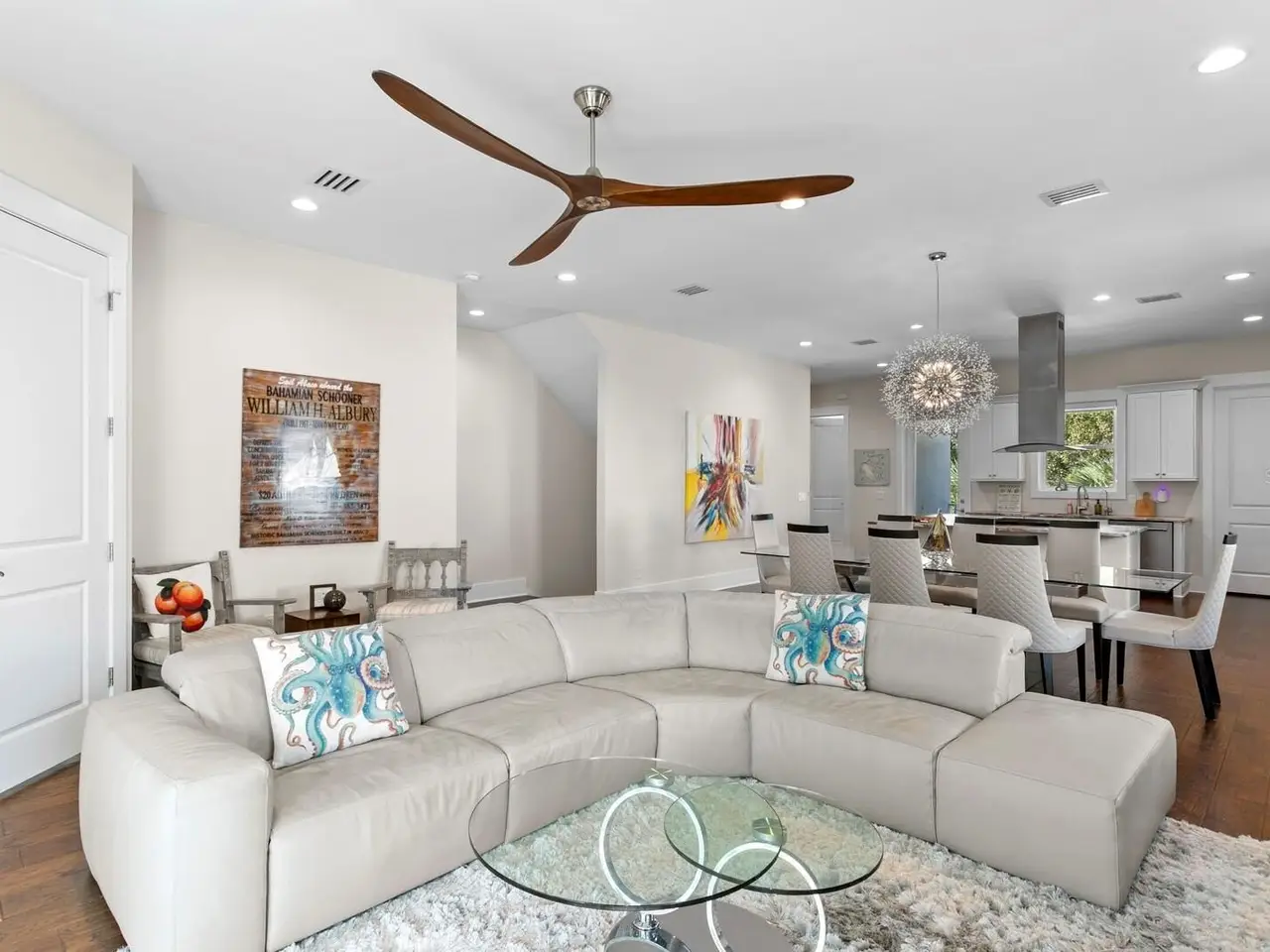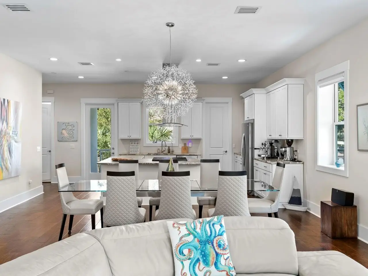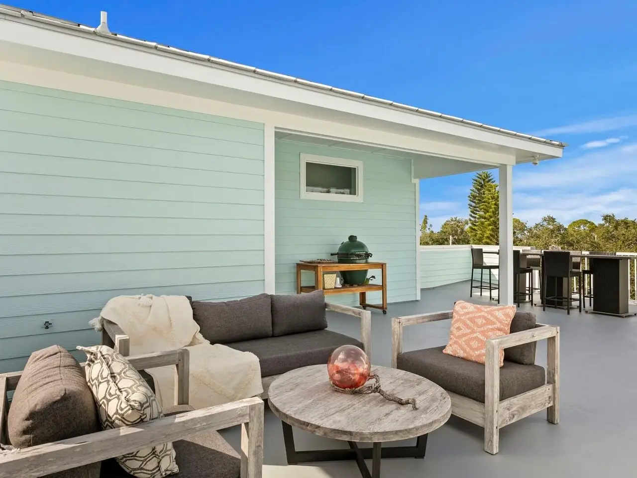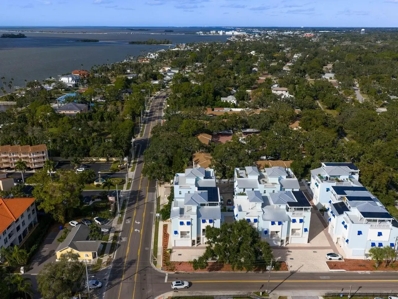 Exquisite Coastal Townhome with Rooftop Terrace and Gulf Views in Dunedin! Discover refined coastal living in this architecturally stunning four-story townhome, boasting 3 bedrooms + office, 2.5 bathrooms and a Private 4-stop Elevator, perfectly positioned across from the Gulf in coveted Dunedin. Constructed with Insulated Concrete Forms (ICF) for superior strength, energy efficiency, and soundproofing, as well as Miami Dade Impact windows and doors, this residence blends modern craftsmanship and security with timeless elegance. The exterior showcases Hardy siding to ensure lasting beauty and durability as well as 2 balconies (front and back) – 1 featuring a wood-paneled ceiling and a charming porch swing that conveys with the home. 4-car garage with pebble epoxy floor has two separate bays with dual garage doors — the rear section thoughtfully outfitted as a home gym. Behind the private gated entry with rich wood ceiling, the interior features 10-foot ceilings, 8-foot solid-core interior doors, and designer finishes creating an ambiance of upscale sophistication throughout the home. The second floor reveals a bright and expansive great room ideal for entertaining, with defined living and dining spaces that flow seamlessly to the gourmet kitchen. This chef’s space features premium shaker-style cabinetry with crown molding, granite countertops, stainless steel appliances (including a 5-burner gas range), spacious pantry, and a generous center island with seating. Wide-plank engineered wood flooring and ample natural light throughout, enhance the home’s modern coastal style. Dedicated home office provides a quiet and functional space ideal for remote work or creative pursuits. Upstairs, the huge primary suite offers a serene retreat complete with sitting area, spacious walk-in closet and spa-inspired en suite bath boasting dual vanities, tile floor, large soaking tub, and a separate shower. Two additional bedrooms (1 featuring a Murphy bed and built-in desk), a well-appointed full bath with tub/shower combo and a convenient laundry closet, complete this level. The fenced backyard offers a private outdoor retreat with a paver patio, low-maintenance turf lawn, and beautifully designed landscaping that enhances both style and relaxation. The crown jewel of this exceptional home is the fourth-level Rooftop Terrace — an entertainer’s dream showcasing panoramic 360-degree views of the Gulf, Caladesi Island and Dunedin. Enjoy unparalleled sunsets and gentle sea breezes from your substantial rooftop sanctuary, easily accessible via private elevator and stairs. Located just steps from the scenic Pinellas Trail and moments from Downtown Dunedin’s acclaimed restaurants, boutiques, and waterfront attractions, this home delivers the perfect fusion of luxury, location, and lifestyle.