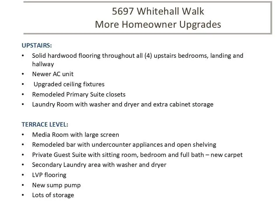 Stylishly remodeled, four-sided brick home in the conveniently located community of Whitehall. Only minutes to GA 400, Perimeter Center, Dunwoody Country Club and a variety of restaurants, parks, and medical services. Excellent schools and lower DeKalb County taxes. Built by John Wieland. Fabulous MAIN LEVEL features two story foyer, many new light fixtures, hardwood floors throughout, vaulted ceilings, and crown moldings. Remodeled kitchen with lots of storage and high-end KitchenAid, Bosch and Thermador appliances, oversized center island, gorgeous granite and new tile backsplash. Family Room features floor to ceiling stacked stone fireplace, and custom bookcases that span the length of the room. The main level is perfectly designed for entertaining! Enjoy a private, covered Trex deck for year-round entertainment featuring tongue-in-groove ceiling, fans, recessed lighting, and a linear gas fireplace with TV connections. UPSTAIRS with four spacious bedrooms, three full baths, hardwoods throughout and convenient laundry facilities. Primary Suite with beautiful bathroom and several spacious custom closets for incredible storage. Remodeled TERRACE LEVEL with home theater/media room, and bar/entertainment area. Fabulous guest suite with bedroom, sitting room and full bath. Additional laundry facilities and more storage. Terrific patio is perfect for grilling, dining, ping-pong and other games. You will love this beautifully remodeled home in this incredibly convenient location!!