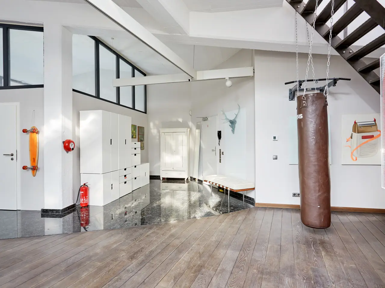 This exquisite loft is located in a former perfume factory and offers an exceptional living space of approx. 278 m². The property was built in 1985 and was last extensively modernized in 2019, as a result of which it presents itself in a very well-kept condition. The loft has a total of 6 rooms, including 3 spacious bedrooms, which can also be used as an office. Two bathrooms ensure maximum comfort, one of which is en suite and equipped with a free-standing bathtub. The open-plan living area with its impressive ceiling heights of up to 4 meters and electrically controllable skylights creates an airy, light-flooded ambience. High-quality oak parquet and marble floors as well as elegant wooden sash bar windows round off the luxurious appearance. A fitted kitchen that leaves nothing to be desired and Bose loudspeakers throughout the living area complete the exclusive living concept. Certainly the highlights: a green, ingrown sunny balcony and a spacious roof terrace with the option to extend. Both areas are perfect for spending sunny hours outdoors. In terms of technology, this property is equipped with a pre-installation for an alarm system, and modern Bose loudspeakers are also installed. New thermostats ensure efficient control of the indoor climate. For future requirements, there is the option of installing photovoltaic modules on the roof surfaces, which underlines the sustainability of the property. This offer is rounded off by an extensive parking solution: a garage supplemented by an outdoor parking space. There is also a cellar compartment for additional storage space. In summary, this loft offers exclusive living quality with a combination of modern comfort and elegant furnishings. Thanks to the extensive modernization of the building services and roof renovation in 2019 as well as the new gas heating from 2024 and the extensive insulation of the basement area this year, the property presents itself in a high-quality condition and is ideally equipped for the future. Do not hesitate to contact us for more information! Locations Düsseldorf Flingern-North Flingern-Nord is one of Düsseldorf's most popular and lively districts. The former working-class and industrial area has been transformed in recent years into a creative, trendy district with a unique charm. Tradition and modernity combine in a special way here - listed old buildings, charming courtyards and stylish loft apartments characterize the cityscape, as do hip cafés, small boutiques, galleries and a diverse gastronomic scene. Flingern-Nord is particularly popular with young professionals, creatives and families due to its urban atmosphere and good infrastructure. The central location provides excellent connections to the city center, the main train station and the Medienhafen - whether by car, bicycle or public transport. Several bus and streetcar lines as well as nearby S-Bahn stations offer ideal mobility throughout the city. Flingern-Nord also leaves nothing to be desired when it comes to local amenities and leisure activities: supermarkets, weekly markets, schools, daycare centers, gyms and doctors are all within walking distance. Green spaces such as the Flinger Broich or the nearby Volksgarten offer recreational opportunities in the middle of the city. Flingern-Nord is a district with character - creative, dynamic and full of quality of life. Features - Oak parquet / marble flooring - Bathroom with walk-in shower - Partial air conditioning - Skylights (electrically controllable) - Air conditioning device - Bathroom en suite with free-standing bathtub - Walk-in dressing room - impressive ceilings up to 4m - fitted kitchen - Wooden lattice windows - Roof covering and insulation from 2019 - New thermostats / underfloor heating - (interior) blinds - Bose loudspeakers - new sealing around the house - green balcony - new gas heating 2024 - new waterproofing and thermal insulation Type of parking 1 x outdoor parking space, 1 x garage, 40,000 EUR (sale) Other information An energy consumption certificate is available. This is valid until January 13, 2030. Final energy consumption is 117.50 kWh/(m²*a). The main energy source for heating is light natural gas. According to the energy certificate, the property was built in 1989. The energy efficiency class is D. On request, we will be happy to send you a detailed exposé with further information, a floor plan and a site plan or answer your initial questions by telephone! Thank you, we look forward to your inquiry or your call! Brokerage contract: You conclude a brokerage contract with VON POLL IMMOBILIEN if you use the services of VON POLL IMMOBILIEN with knowledge of the commission obligation. Commission: If you conclude a purchase contract that is attributable to the activities of VON POLL IMMOBILIEN, you as the buyer must pay the standard local commission to VON POLL IMMOBILIEN GmbH. The commission is due when the purchase contract becomes effective. Right of withdrawal: Your right of withdrawal is regulated in § 355 of the German Civil Code (BGB) and protects you as a consumer from contractual conditions. As a consumer, you have the right, under certain conditions, to withdraw from a contract that has already been concluded within the statutory periods by declaring your withdrawal. MONEY LAUNDERING: As a real estate brokerage company, von Poll Immobilien GmbH is obliged under § 1, 2 para. 1 no. 10, 4 para. 3 of the Money Laundering Act (AMLA) to establish and verify the identity of the contractual partner before establishing a business relationship. For this purpose, it is necessary for us to record the relevant data of your identity card - for example by means of a copy. The Money Laundering Act (AMLA) stipulates that the broker must keep the copies or documents for five years. OUR SERVICE FOR YOU AS THE OWNER: If you are planning to sell or let your property, it is important for you to know its market value. Have the current value of your property professionally asse