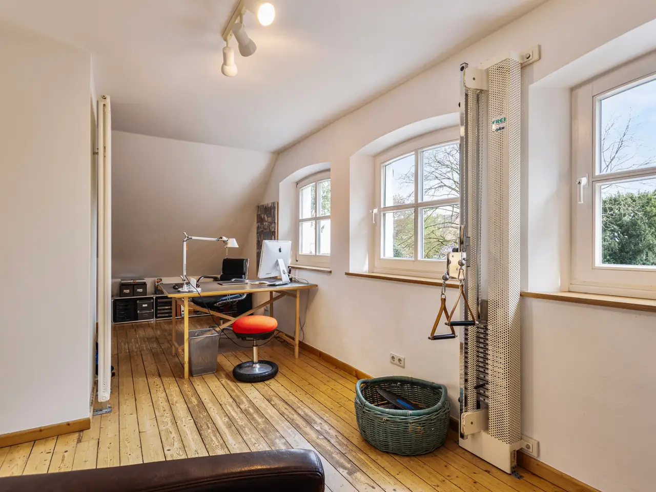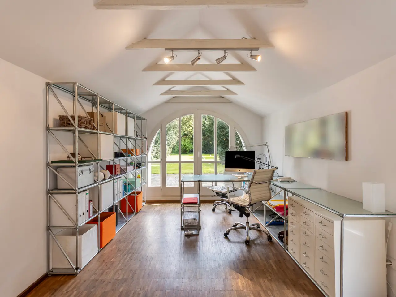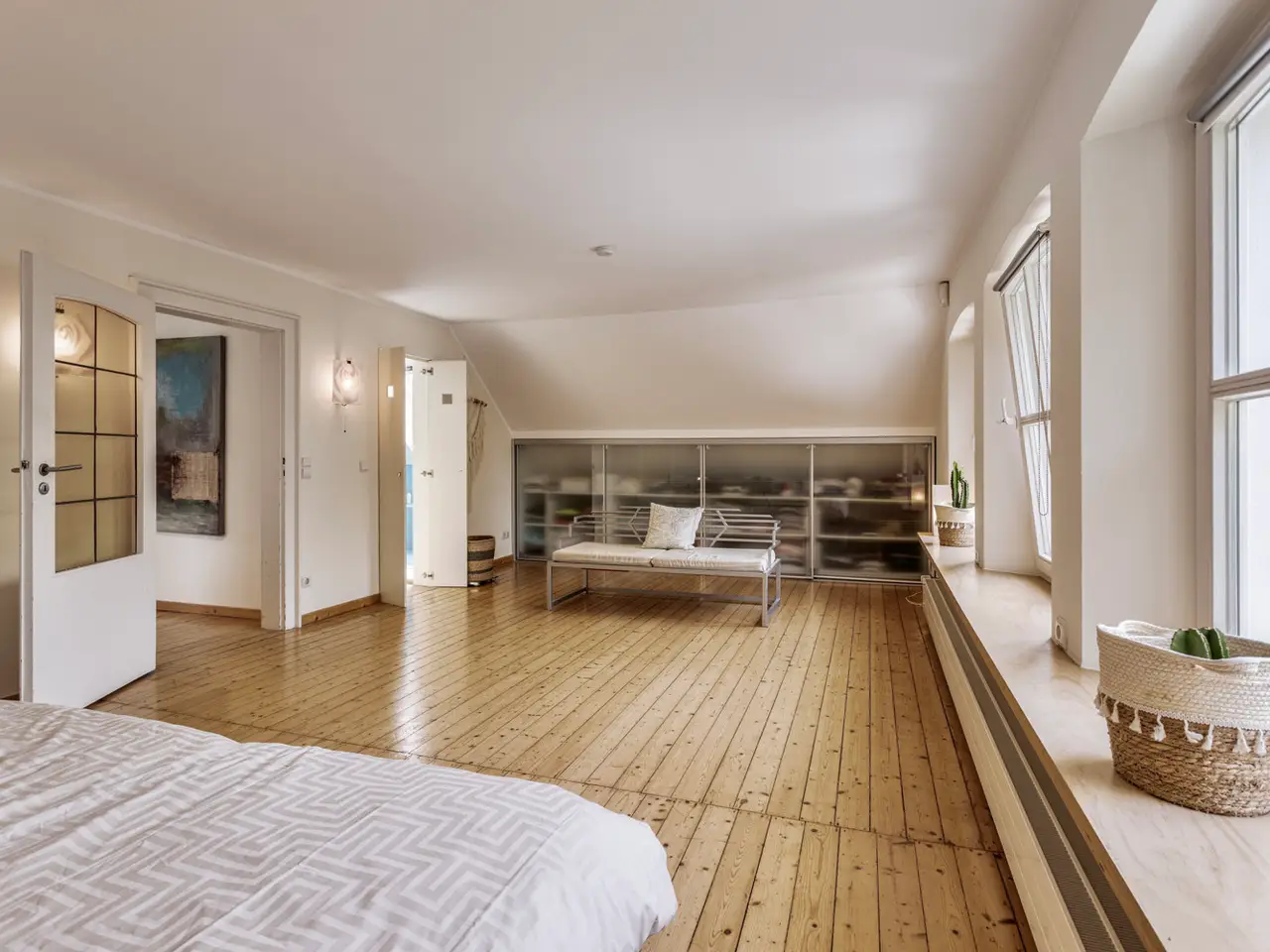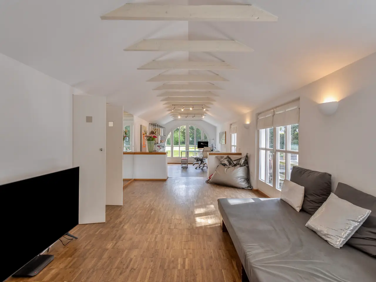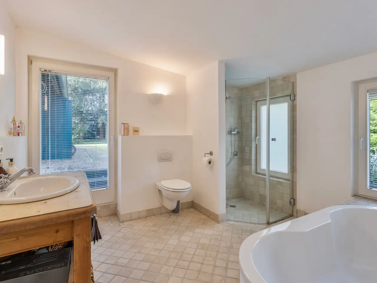 This charming country villa with a view of the Rhine is a truly unique property that is normally difficult to find in Düsseldorf, and not just because of its proximity to the Rhine. This enchanting property on a plot of around 1,730 m² and secluded from view consists of a main house and an extension and is a real gem that offers you peace, comfort and individuality on approx. 215 m² of living space. Built in 1949/50 as a director's villa and extended by an annexe in 1960, the property has combined stylish ambience and individual living quality since its extensive core renovation in 1997. The owners have preserved classic elements from the construction period with great sensitivity, optimized the floor plans and thus preserved the property's incomparable charm. The wooden lattice windows with round arches, the refurbished wooden floorboards and the window blinds are just a few examples. The view of the Rhine and the adjacent fields are constant companions and offer a feeling of space and freedom. Incidentally, the development plan provides for a buildable area of approx. 690 m² with two full storeys, which offers many options ranging from an extension of the house to a completely new development of the property. As soon as you walk through the entrance gate, the spacious and well-kept garden immediately catches the eye, at the end of which, accessible via the cobblestone driveway, lies your new home. Parallel to the extension and in front of the entrance to the house, the quaint courtyard terrace awaits you, which you also use to enter the entrance to the house. From here, you have a smooth transition via the hallway into the living/dining area with its open kitchen, which offers a view of the rear garden and the second terrace area through the floor-to-ceiling windows. Another little oasis surrounded by greenery. In addition to the staircase to the upper floor, you can access the extension from here. A large storage room, a hallway with practical built-in units and another beautiful living area with a fireplace follow next. A bedroom with a small dressing room and a bathroom complete this area of the house, which can also be used as a granny apartment. Back in the entrance area, the guest WC and utility room complete the floor plan on this level. On the upper floor of the main house are the two bedrooms and a bathroom en suite off the master bedroom. The exclusive location not far from the Rhine is particularly noticeable here, as you can enjoy a fantastic view of the fields and the Rhine. The paved area in front of the extension offers space for several cars and a further room accessible from the outside also provides useful storage space. The development plan here offers the possibility of building on a plot of approx. 690 m² with two full storeys plus a staggered storey, thus creating around 1,210 m² of floor space in a direct Rhine location with corresponding views. A corresponding extension to the existing building is also easily possible here. You are welcome to make an appointment to see this rare opportunity for yourself. We look forward to seeing you!