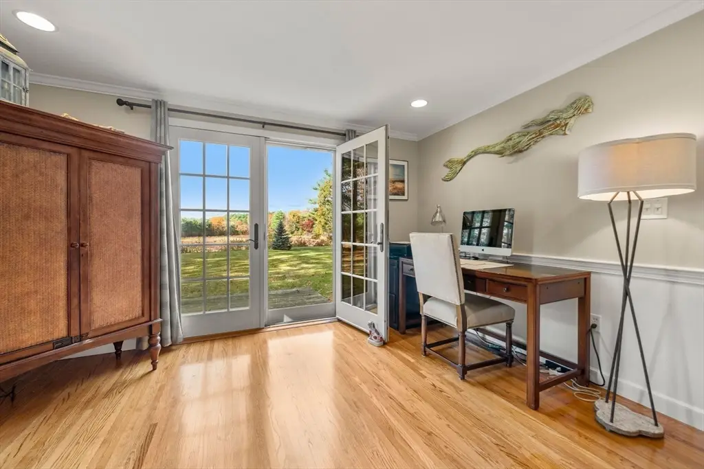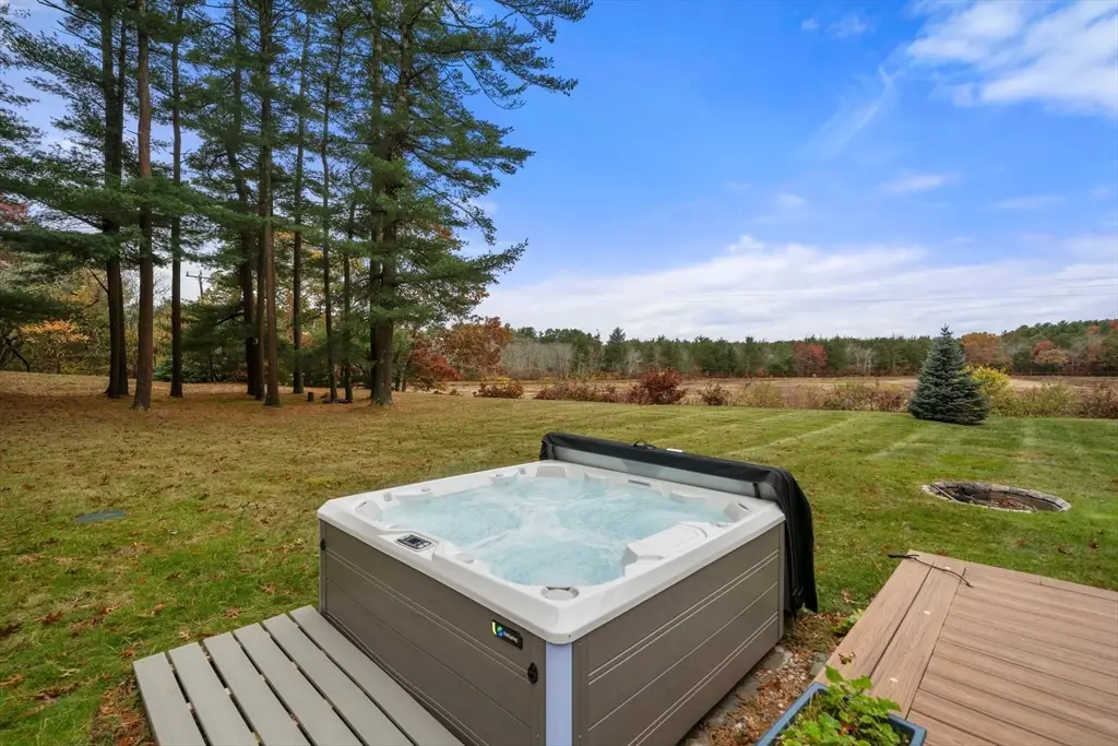 Charming and beautifully maintained Colonial home set on a private .94-acre lot, offering serene views of the surrounding cranberry bogs and amazing sunsets. This 4-bedroom, 2.5-bath residence exudes timeless New England charm with gleaming hardwood floors and two spacious living rooms, each featuring a cozy wood-burning fireplace. The kitchen showcases stainless steel appliances, ample cabinetry, and a welcoming layout ideal for everyday living and entertaining. Upstairs, the primary suite offers a private en suite bath for added comfort. Step outside to enjoy the peaceful natural setting from the expansive yard, complete with an inviting outdoor jacuzziùperfect for relaxing under the stars. Recent renovations include a partially finished lower level with a home gym, bonus room, and a dedicated storage area with a workbench. With a two-car garage and a set-back location ensuring exceptional privacy, this property combines classic style, modern updates, and tranquil outdoor living.