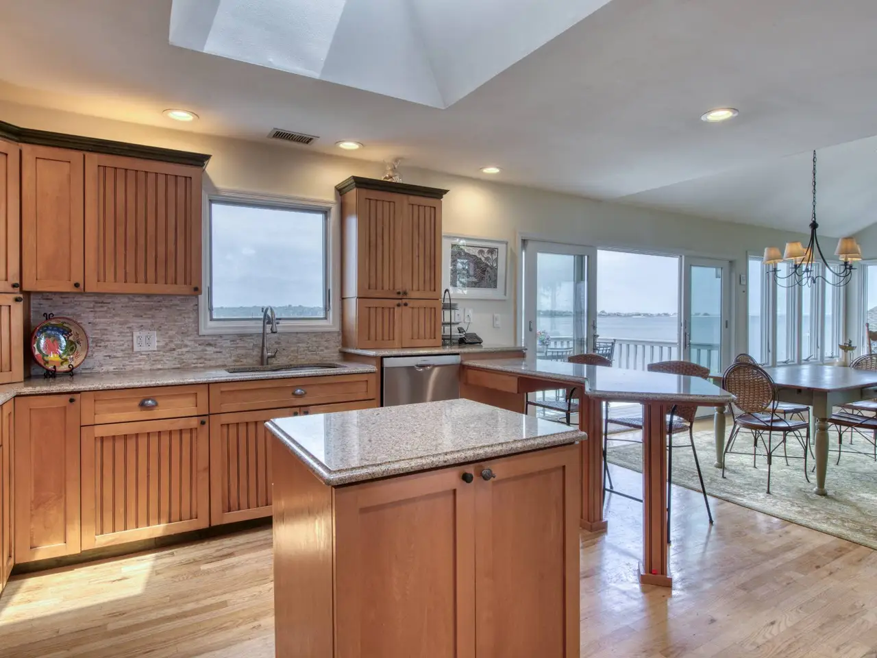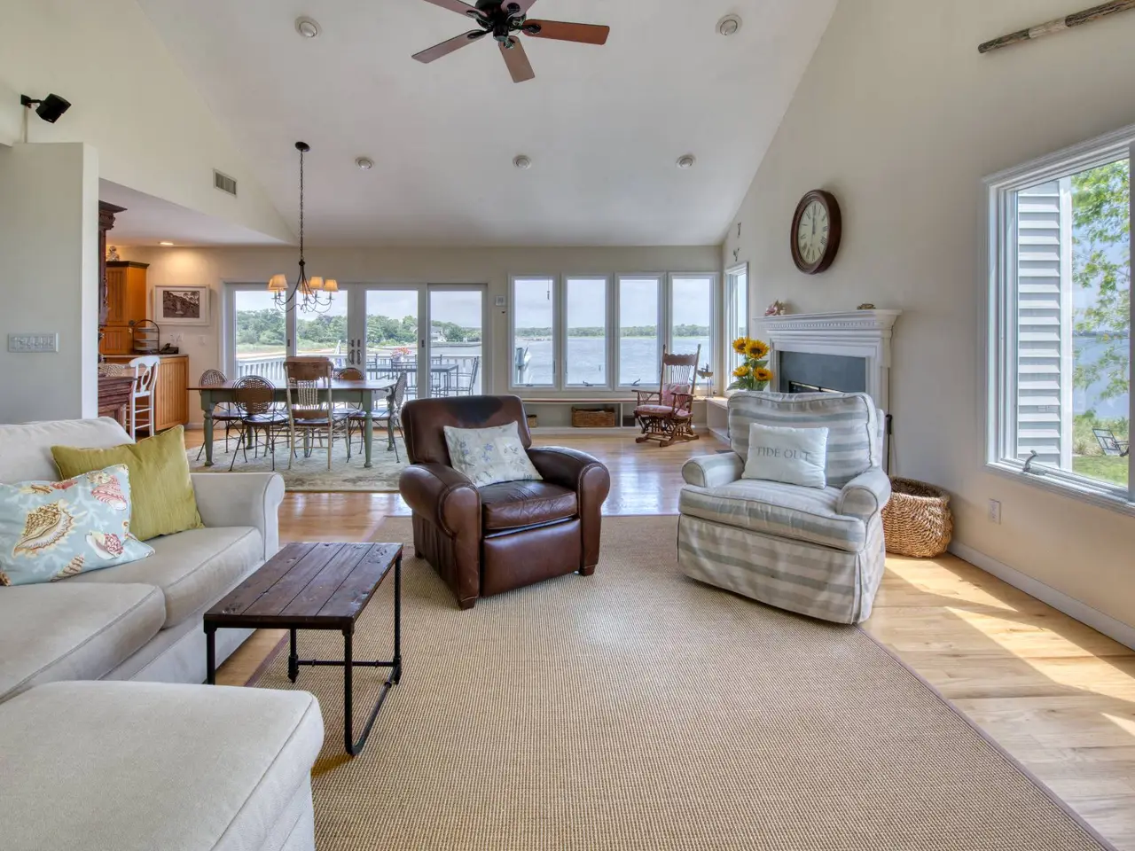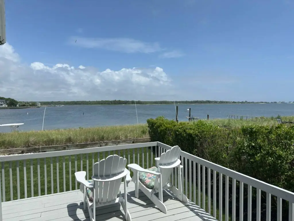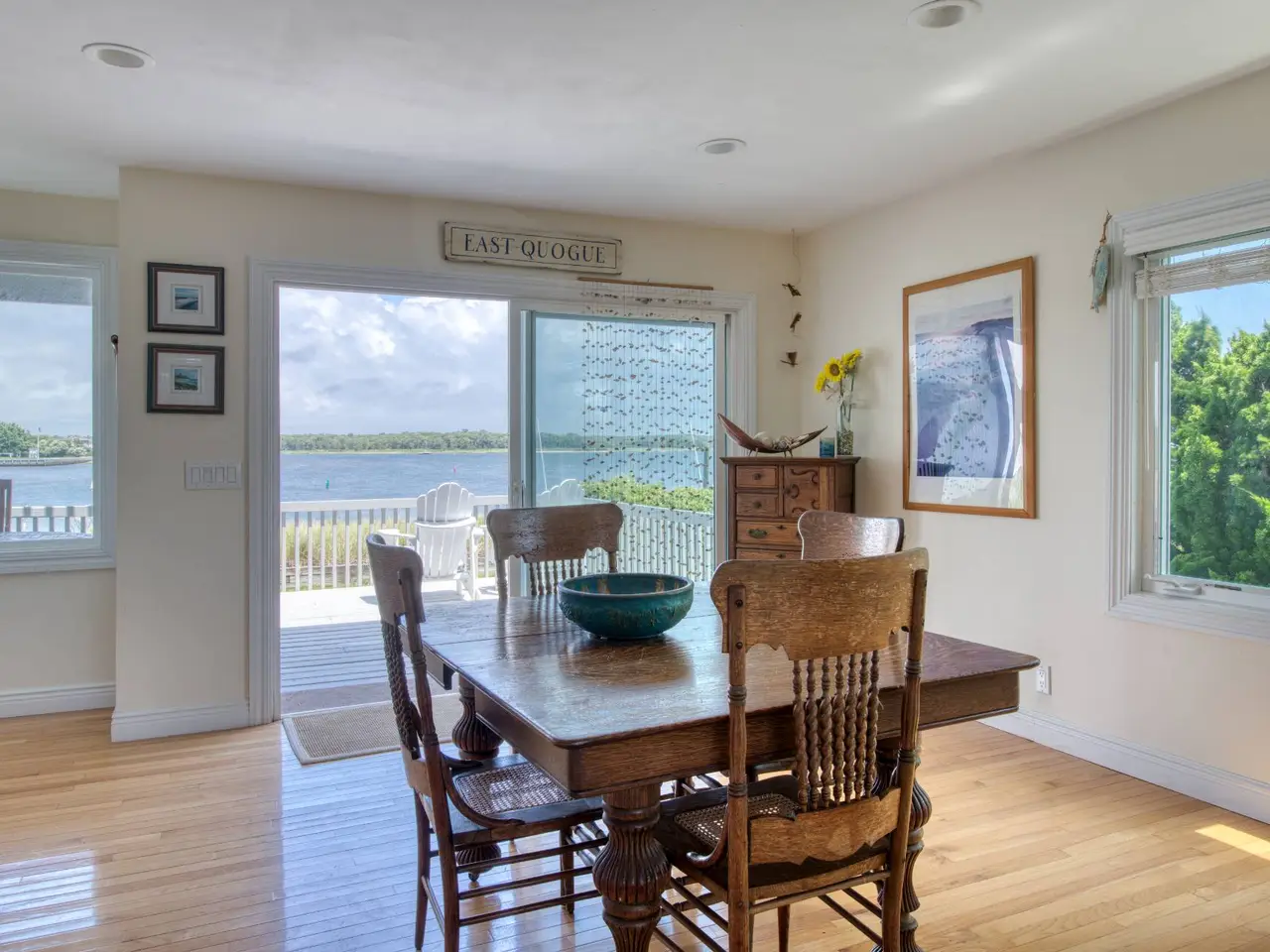 Waterfront Beach House / Shinnecock Bay, East Quogue Nestled along the shimmering shores of Shinnecock Bay, this stunning two-story beach house boasts panoramic water views to the east, south to Dune Road, and west-offering serene sunrises and captivating sunsets. Situated within an exclusive private beach community with residents-only access, the home is perfectly designed for effortless summer living. Expansive decks on both levels create inviting spaces for entertaining or peaceful relaxation by the water's edge. A bulkhead with ample space to dock your boat enhances the true bayfront lifestyle, complemented by four community docks providing added convenience for boating enthusiasts. Whether you're looking for a weekend retreat or year-round coastal sanctuary, this East Quogue gem embodies the best of Hamptons waterfront living.