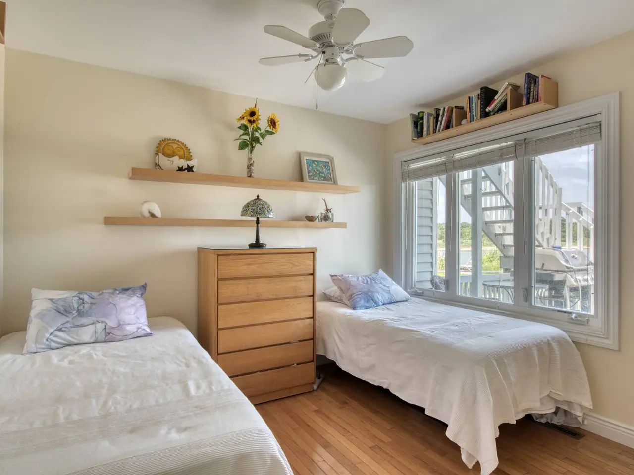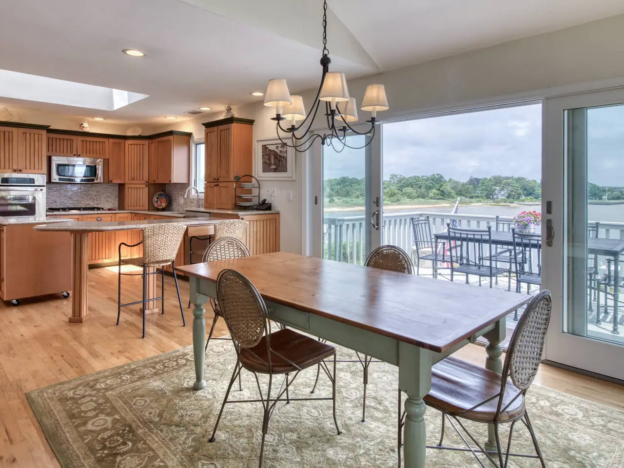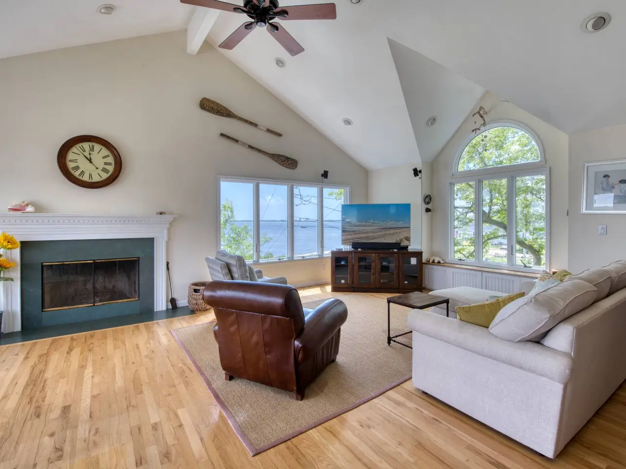 Waterfront Beach House / Shinnecock Bay, East Quogue Nestled along the shimmering shores of Shinnecock Bay, this stunning two-story beach house boasts panoramic water views to the east, south to Dune Road, and west-offering serene sunrises and captivating sunsets. Situated within an exclusive private beach community with residents-only access, the home is perfectly designed for effortless summer living. Expansive decks on both levels create inviting spaces for entertaining or peaceful relaxation by the water's edge. A bulkhead with ample space to dock your boat enhances the true bayfront lifestyle, complemented by four community docks providing added convenience for boating enthusiasts. Whether you're looking for a weekend retreat or year-round coastal sanctuary, this East Quogue gem embodies the best of Hamptons waterfront living.