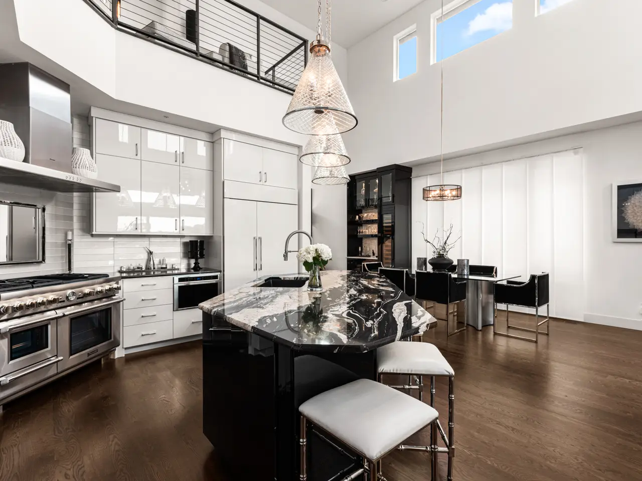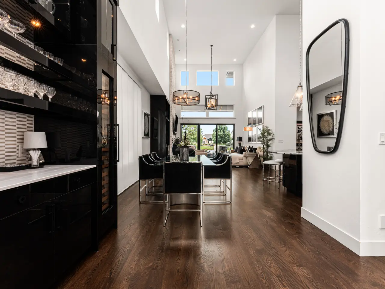Experience refined living in this one-of-a-kind custom-built residence, set on a private waterfront lot within the prestigious gated Lakemoor community. Situated on a quiet, dead-end cul-de-sac with direct Greenbelt access, this prime location is just steps from the renowned Crave restaurant and the Lakemoor District shops. The sleek, modern interior is adorned with soaring double-height ceilings, rich hardwood flooring, and expansive windows that flood the home with natural light. The open-concept living space centers around a dramatic floor-to-ceiling stacked stone fireplace and flows seamlessly onto a covered patio equipped with a full outdoor kitchen. The kitchen features a curved granite island, Thermador and Sub-Zero appliances, a walk-in pantry, and a convenient dumbwaiter. The luxe master is set on the main level while the upper level hosts a large bonus room and full Jr. Suite. Enjoy exceptional amenities including two resort-style pools, sports courts, & walking paths with fabulous walkability!
