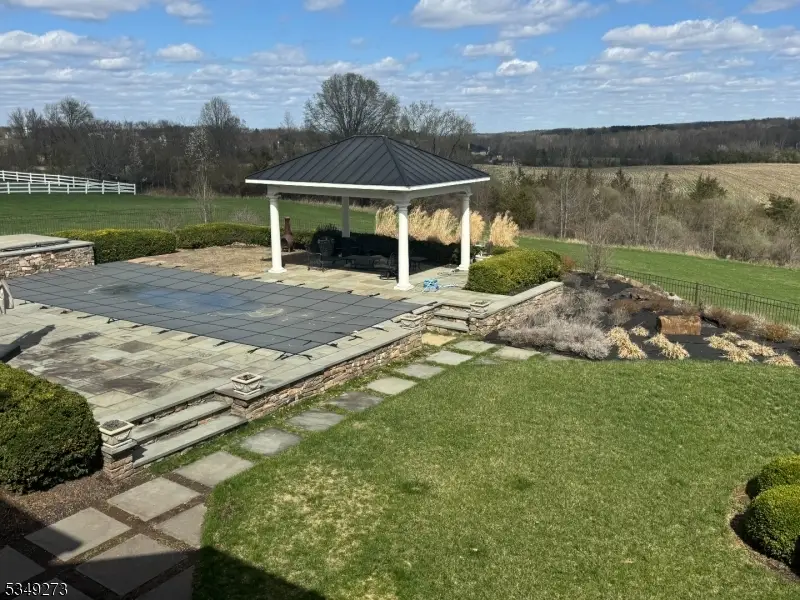 Experience the epitome of luxury country living in this magnificent 5,428 sq ft French Country Manor, nestled on 10 acres of pristine, level land. Built in 2007, this home offers a perfect blend of elegance and functionality, with exquisite stone and stucco exteriors and a resort-style backyard. The property features six fireplaces, soaring 10-foot ceilings on the main and ground levels, and an impressive two-story foyer with a curved staircase. Architectural highlights include arched doorways, barreled, tray, and coffered ceilings, rich millwork, and transom-topped casement windows, all adding to the home's exceptional character. The expansive chef's kitchen is equipped with glazed maple cabinetry, granite countertops, and high-end appliances, including Wolf, Sub-Zero, and Asko. The kitchen seamlessly flows into the formal dining and living spaces, perfect for both casual and elegant entertaining. The finished walk-out basement (approx. 1500 sq. ft.) offers resort-like amenities, including a sauna, steam shower, full bath, rec room with a bar and billiards area, exercise room, and a home theater room " an entertainer's dream! Outside, the backyard oasis features a resort-style pool and spa, a picturesque waterfall, a charming pergola, and covered patios, creating a perfect setting for relaxation and outdoor living.