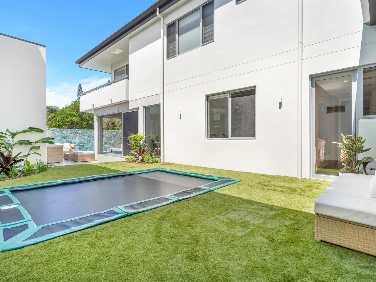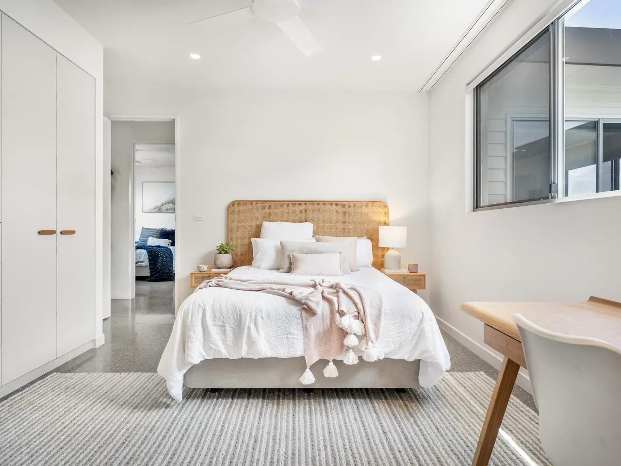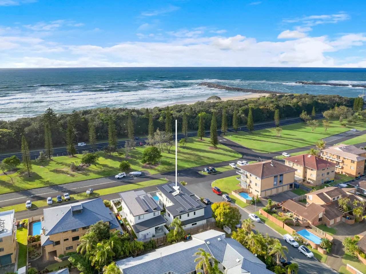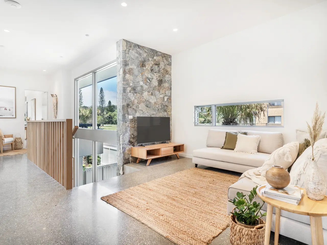 Showcasing a clever and contemporary take on the classic beach house, 'Solana' is a near new family home set within a desirable seaside location, just a stone's throw from the serene backdrop of Shaws Bay. Behind a merged stone feature wall and contemporary vertical batten fence, the refined residence sprawls over two lavish levels. On the ground floor, the entry foyer leads to a spacious open-plan kitchen, dining, and living zone, with stacker sliding doors that spill out to the covered alfresco and pool area, with polished concrete decks, a waterfall blade, and an outdoor shower. Continuing the elegant nature of the home, a total of five bedrooms are strategically placed throughout, each with its own ensuite and all with a walk-in or built-in robe. The grand main bedroom occupies an entire private wing of the first floor, featuring a galley-style walk-in robe, an oversized ensuite, and a wrap-around balcony. Encouraging an idyllic outdoorsy lifestyle, the home's low-maintenance tropical gardens welcome endless ways to unwind for kids and adults alike, from the poolside breakfast bar and hanging chair to the level lawn with an in-ground trampoline. What's more, with beach access straight to middle track via a gate, water-related pursuits are made trouble-free, be it a leisurely level stroll to Lighthouse Beach or a scenic cycle along the Richmond River. - Premiere beachside location, just a short stroll to the water's edge - Stone feature walls, bespoke front entrance door, designer staircase - Exposed aggregate polished concrete floors, honed ceiling and stairs - Entertainer's kitchen with Cesar Stone benchtops and Miele appliances - Underfloor heating, ducted conditioning, laundry chute, water tank - Low-maintenance tropical garden with lighting throughout - Tiled in-ground pool with polished concrete decks and waterfall blade - Covered alfresco zones, level lawn with in-ground trampoline - Double carport with remote access to a double garage with internal access - 10-minute drive to Ballina Byron Gateway Airport, 30 minutes to Byron Bay