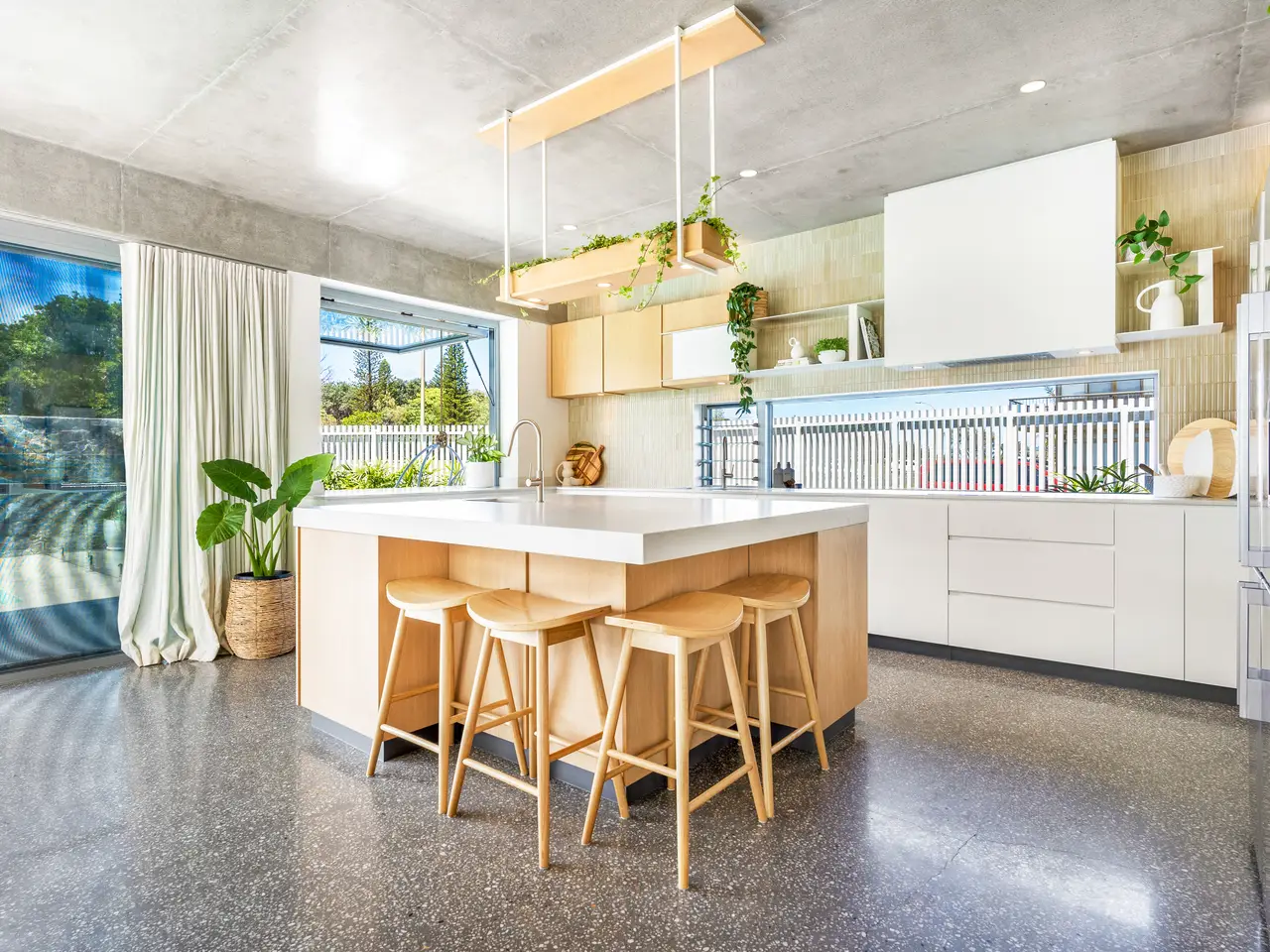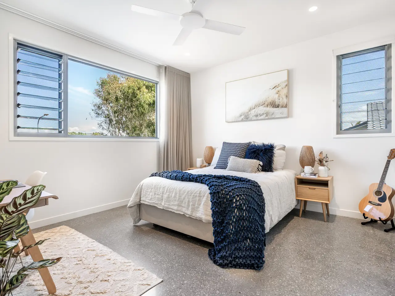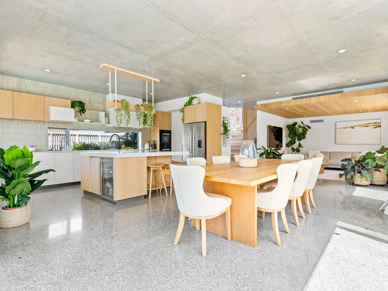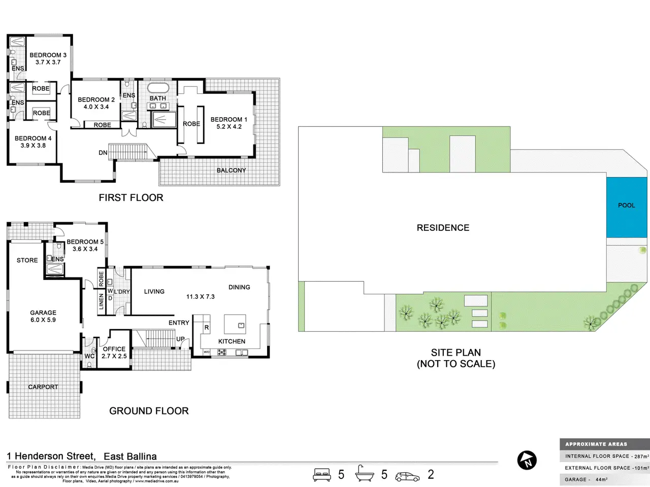 Showcasing a clever and contemporary take on the classic beach house, 'Solana' is a near new family home set within a desirable seaside location, just a stone's throw from the serene backdrop of Shaws Bay. Behind a merged stone feature wall and contemporary vertical batten fence, the refined residence sprawls over two lavish levels. On the ground floor, the entry foyer leads to a spacious open-plan kitchen, dining, and living zone, with stacker sliding doors that spill out to the covered alfresco and pool area, with polished concrete decks, a waterfall blade, and an outdoor shower. Continuing the elegant nature of the home, a total of five bedrooms are strategically placed throughout, each with its own ensuite and all with a walk-in or built-in robe. The grand main bedroom occupies an entire private wing of the first floor, featuring a galley-style walk-in robe, an oversized ensuite, and a wrap-around balcony. Encouraging an idyllic outdoorsy lifestyle, the home's low-maintenance tropical gardens welcome endless ways to unwind for kids and adults alike, from the poolside breakfast bar and hanging chair to the level lawn with an in-ground trampoline. What's more, with beach access straight to middle track via a gate, water-related pursuits are made trouble-free, be it a leisurely level stroll to Lighthouse Beach or a scenic cycle along the Richmond River. - Premiere beachside location, just a short stroll to the water's edge - Stone feature walls, bespoke front entrance door, designer staircase - Exposed aggregate polished concrete floors, honed ceiling and stairs - Entertainer's kitchen with Cesar Stone benchtops and Miele appliances - Underfloor heating, ducted conditioning, laundry chute, water tank - Low-maintenance tropical garden with lighting throughout - Tiled in-ground pool with polished concrete decks and waterfall blade - Covered alfresco zones, level lawn with in-ground trampoline - Double carport with remote access to a double garage with internal access - 10-minute drive to Ballina Byron Gateway Airport, 30 minutes to Byron Bay