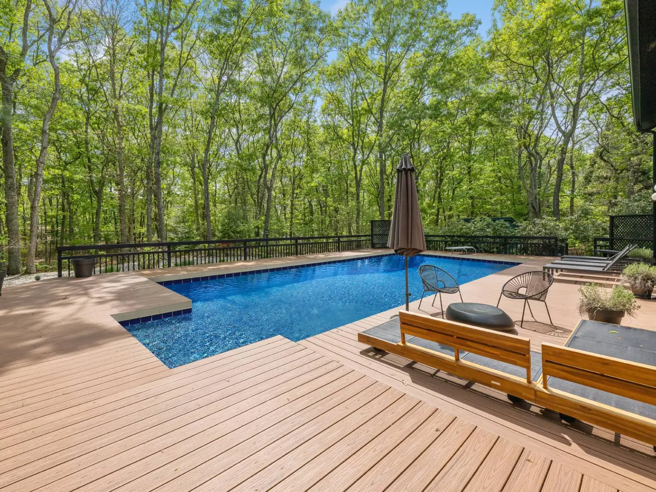 This beautifully landscaped, renovated and newly decorated contemporary sits on 0.81 acres in the Northwest Woods with community tennis available. Enjoy stunning details and an open floorplan with four bedrooms, three bathrooms and lots of natural light. Inside you will find two cozy sitting areas with a large fireplace open to the dining room and fabulous kitchen with new stainless appliances. The primary bedroom on the second floor enjoys a private terrace and a sunlit bathroom. The three beautiful guest rooms share two bathrooms - one on each floor. In addition to lush landscaping, there is a large deck surrounding the heated pool. Hardwood floors and central air throughout.