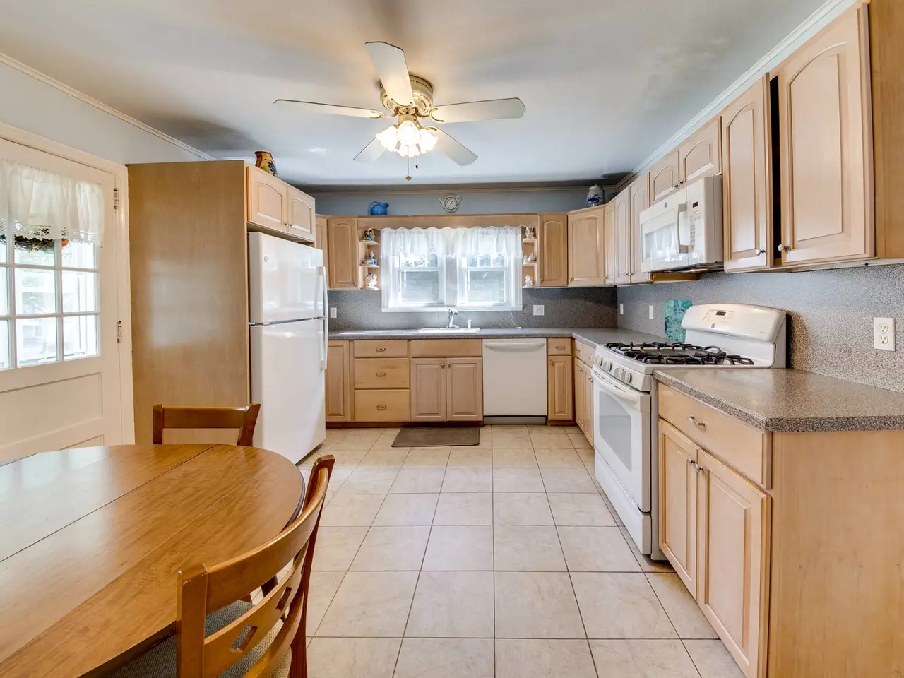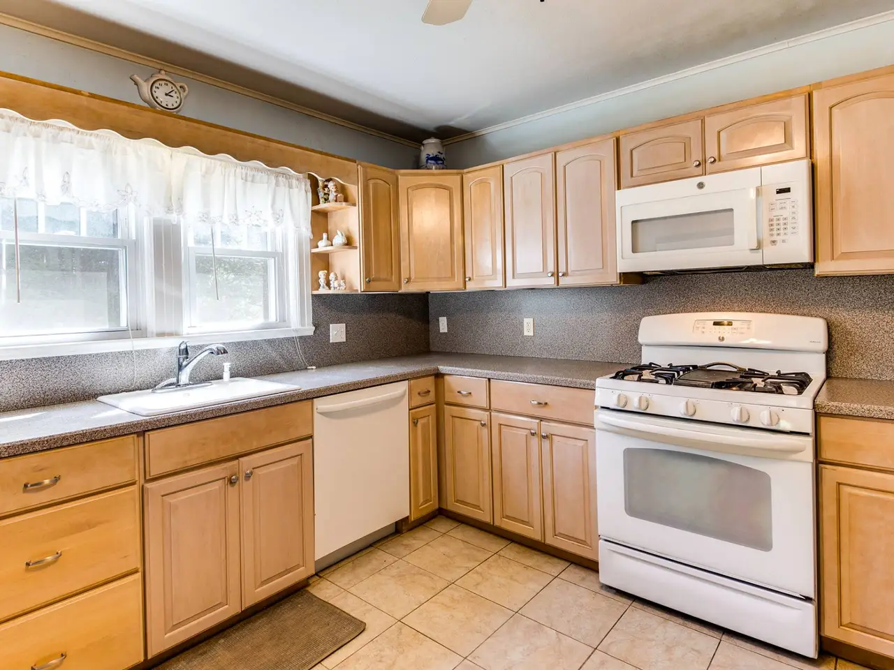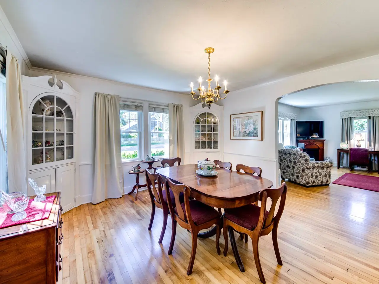 Just a stone's throw away from East Hampton's North Main Street, this charming 3-bedroom, 2-bathroom cottage is cute as a button and offers all the conveniences that come with village life. Enjoy nearby ocean beaches, shopping, restaurants, and museums, as well as the ease of having the Jitney and train station just a mile away. Upon entering the front door, you'll be greeted by a cozy living room with wood floors that flow into the adjoining dining room through a wide graceful arched doorway. Other original architectural features include two glass panned built-in corner cabinets in the dining room and a set of built-in drawers and shelving in the downstairs primary bedroom. An adjacent renovated full bathroom serves the first floor. Just off the dining room is a bright and cheerful eat-in kitchen with access to the laundry room and a full unfinished basement. The second floor offers 2 additional bedrooms and a shared full bathroom. This 1800 square foot home sits on a neatly landscaped .34-acre lot with front and rear stone driveways, a detached one car garage, and a spacious backyard for relaxing and entertaining. Don't miss this perfect summer retreat!
