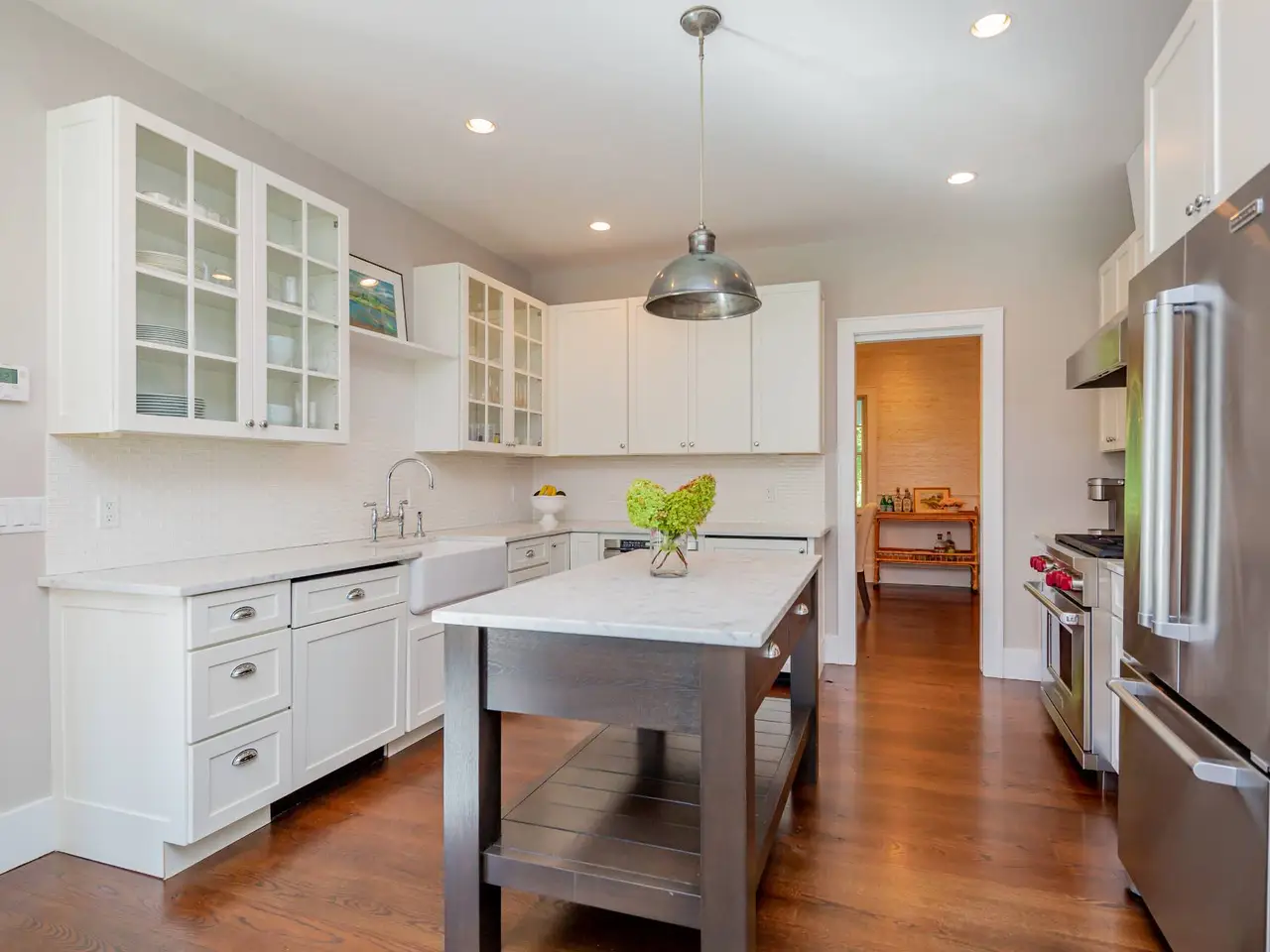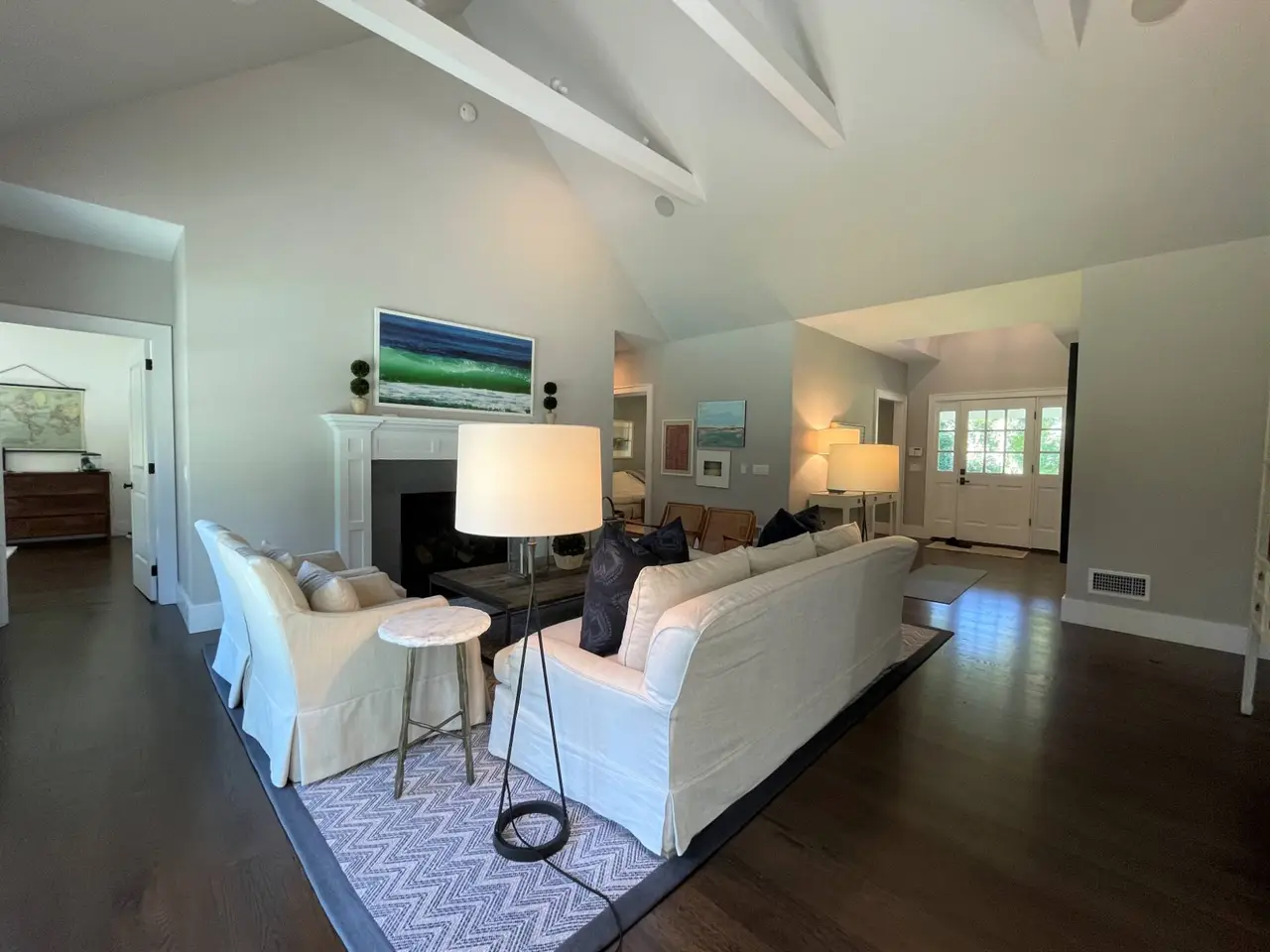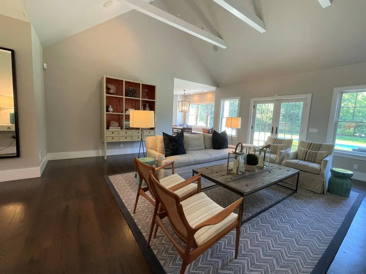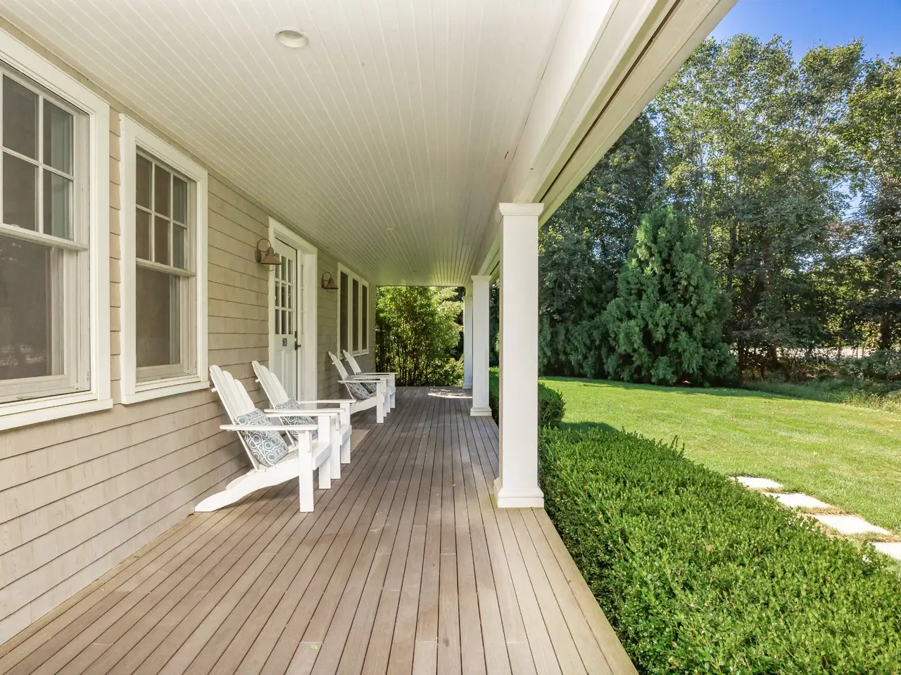 Rental Registration # 21-1,189 - Located within short distance to East Hampton village is this well-kept postmodern home. The home was built in 2013 by a Hampton top notch builder and offers five bedrooms and three and one half bathrooms on just about 3,000 square feet of living space. Upon arrival at the property, you are welcomed by a classic front porch that leads to the entry hall where the high ceiling living room with fireplace overlooks the heated salt water pool and manicured grounds. Additionally, the main floor includes a gourmet kitchen with marble countertops, stainless steel appliances, island, and breakfast nook, formal dining room with paneled wainscoting, den/TV room, powder room, two guest bedrooms, and a Jack-n-Jill bathroom. On the opposite side is the primary suite with walk-in-closet and bath with double stone vanity. The 12-foot lower level is finished with two additional bedrooms, a full bath and rec room. Additional amenities include an outdoor shower, central air-conditioning, a heated pool, and a two-car garage. Come experience the summer of a lifetime.