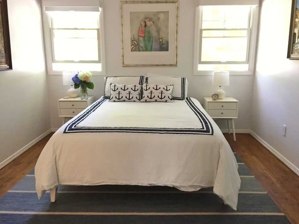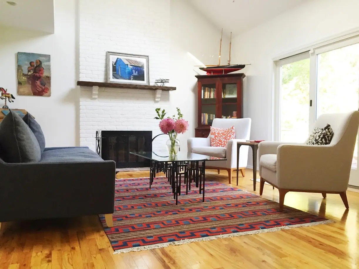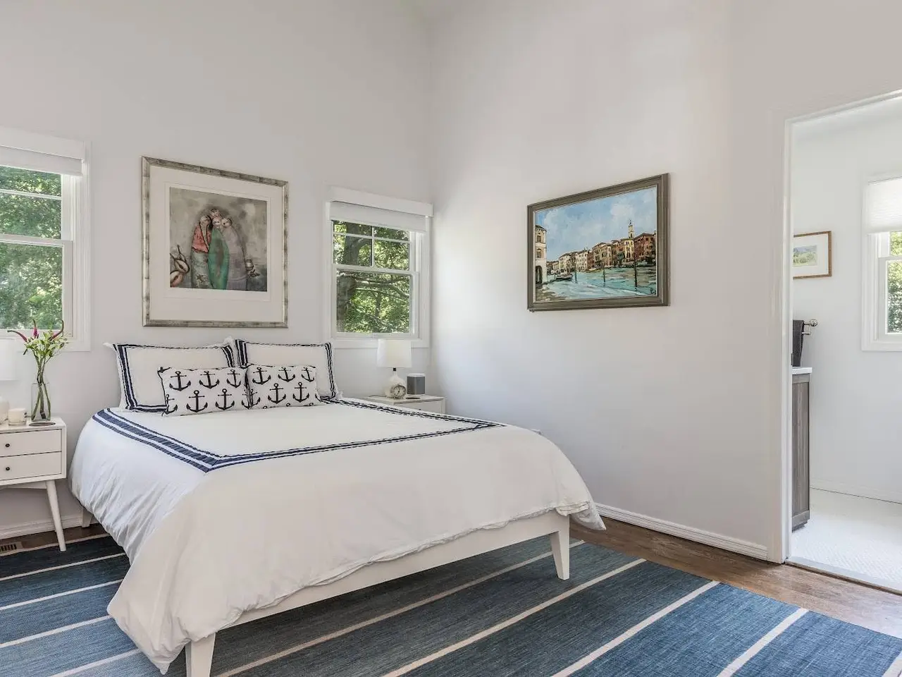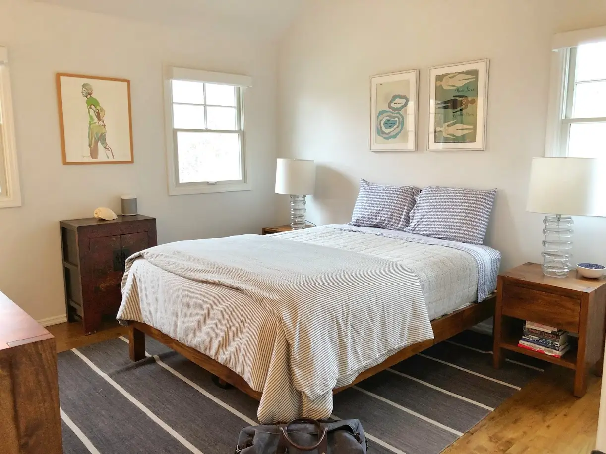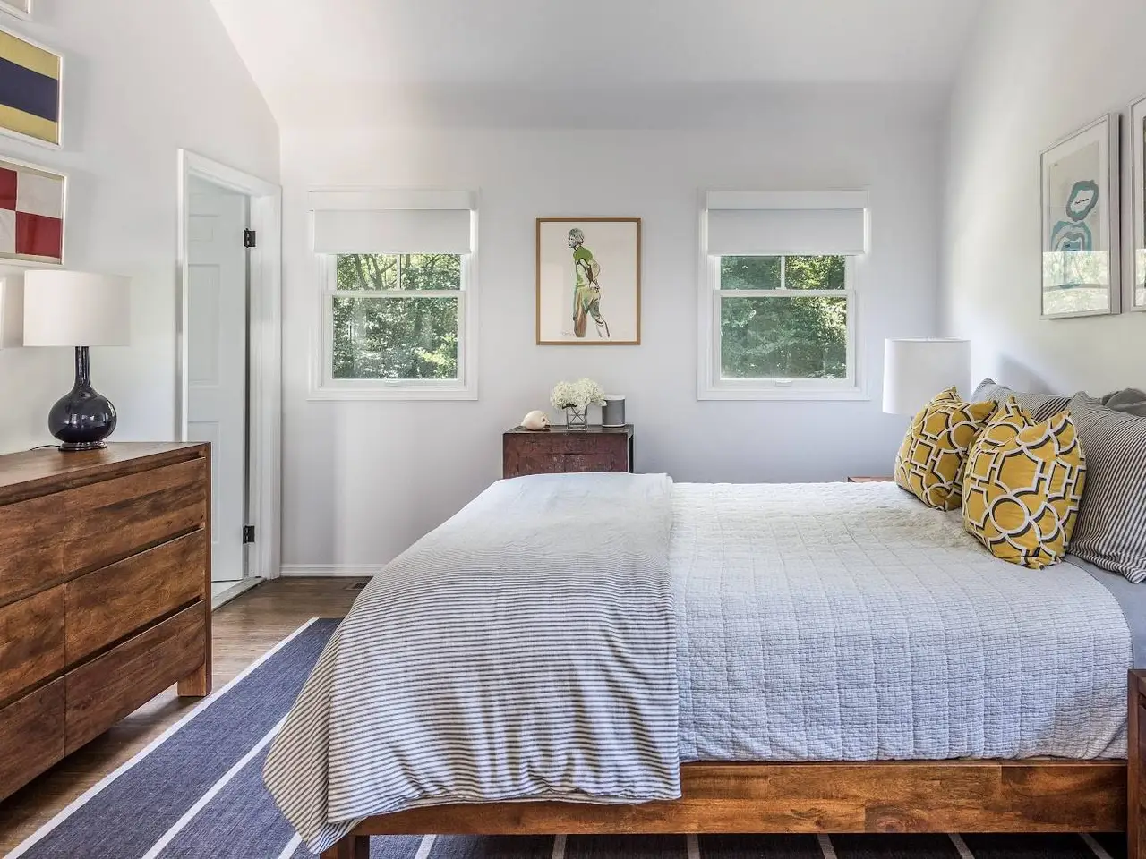 Rental Registration #: 22-1,620. Located just outside East Hampton Village, this charming home on private cul-de-sac on 0.8 acres is a secluded East Hampton retreat. The home is situated with proximity to Main Street, Long Island Railroad train station, East Hampton Grill, Nick & Toni's, Serafina, and the IGA grocery store. It is a classic salt-box house with spacious, sunny great room boasting an open living space that features a traditional wood-burning fireplace. Sliding glass doors open to a large deck with outdoor furniture and gas grill, overlooking the manicured lawn, gardens and the heated salt-water swimming pool (40x20). The additional large den is perfect for afternoon reading or gathering for a movie on the 55-inch television. There are two upstairs bedrooms fitted with queen beds and full, en suite bathrooms. The third bedroom is on the ground floor with a queen bed and full bathroom. Amenities include central-air-conditioning.