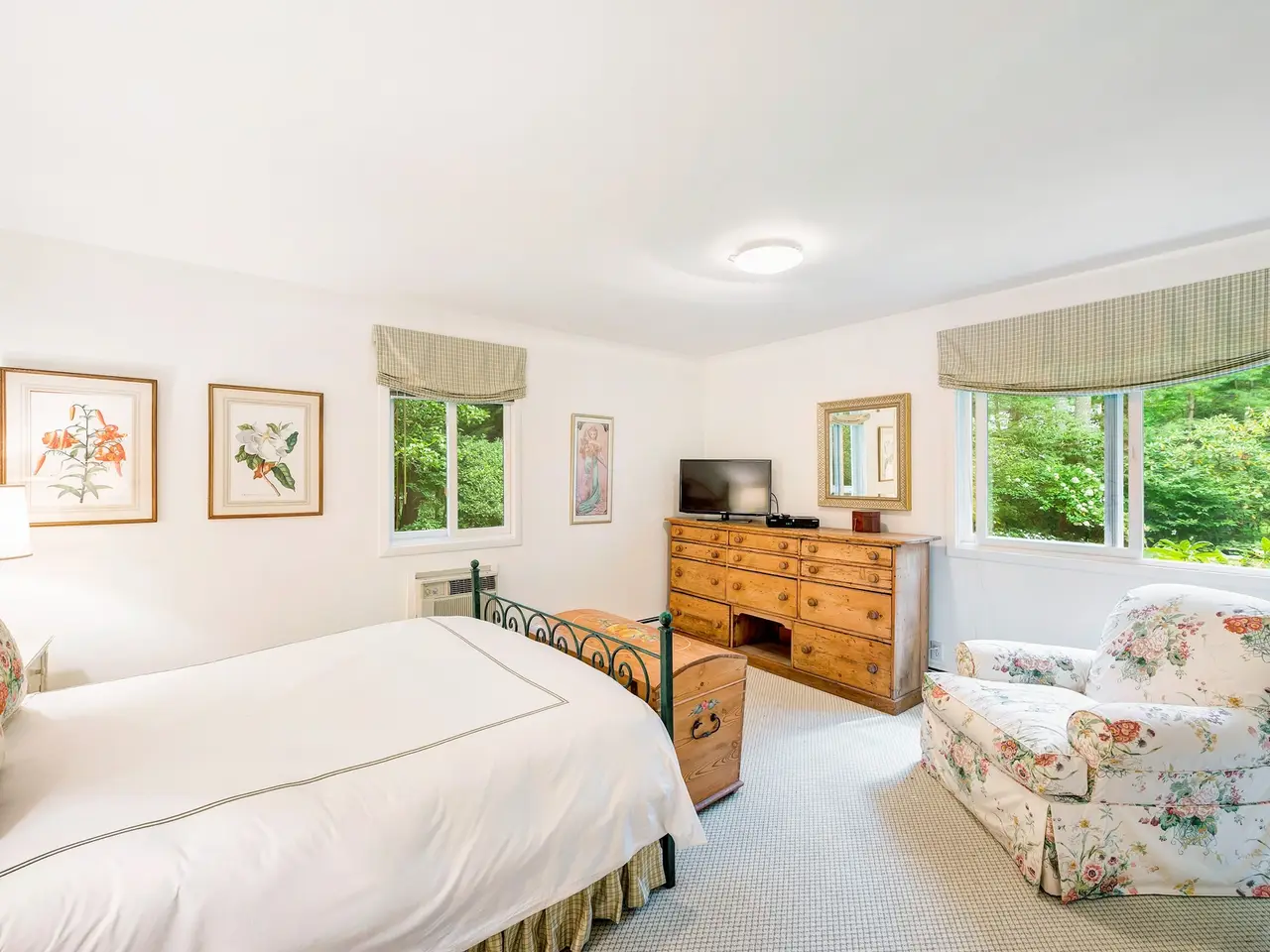 Mature trees and flower gardens