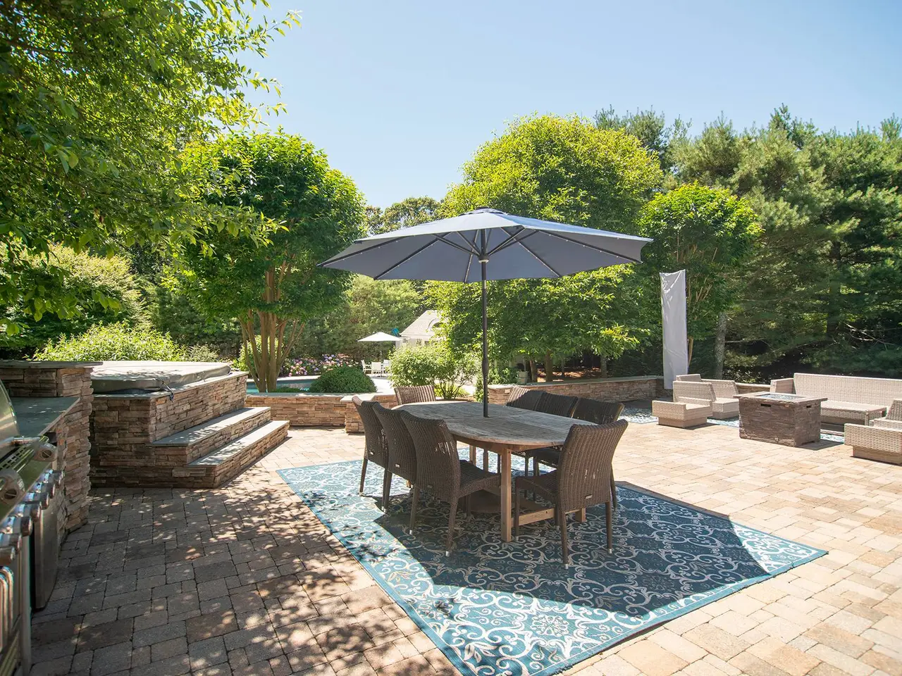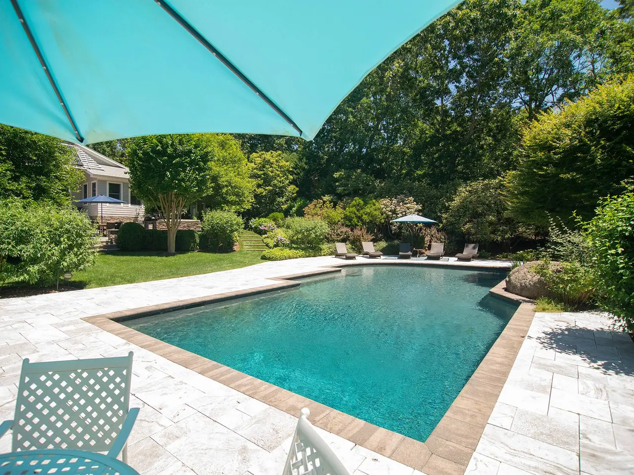 Rental Registry #21-1231 Spend a magical and memorable summer enjoying the breathtaking beauty and serenity of Gardiner's Bay. You'll enjoy private access to its pristine salt-water beaches while living in this fastidious, private, and spacious home designed by noted architect Harry Bates. Located in the North Hollow community of East Hampton, village amenities are just minutes away, including restaurants, shops, Hampton Jitney, train station, and East Hampton airport. This 5-bedroom, 4-bath rental is sited on 0.84+/- acre and features a custom heated Gunite swimming pool, a pool house with kitchenette, an outdoor shower, and meticulously maintained grounds that integrate perfectly with the exterior entertaining areas. Multiple stone terraces provide charming spaces for entertaining or lounging in the Hamptons sun, as well as several dining areas. The custom outdoor kitchen features a large built-in barbecue, outdoor media/tv space, and spa. The stunning open interior areas include a custom kitchen, dining and living room with a beautiful stone fireplace. Cathedral ceilings, large and numerous windows, as well as glass doors fill the spaces with light and comfort. Top-of-the-line appliances including two ovens, two dishwashers and a wine cooler can be found in the eat-in kitchen. The luxurious accommodations continue into the well-appointed bedrooms. The primary bedroom defines a grand lifestyle with a private terrace, roof deck with lovely views and a primary bath with double granite-top vanity, soaking tub, and frameless glass-enclosed shower. The finished lower level offers a living area/media room, all new state-of-the-art professional gym, and separate laundry area with 2 top quality washers and dryers. All is power by a solar energy system. This exceptional East Hampton rental offers nearly every amenity one could need for a fabulous summer on the East End! Listing ID: 884542