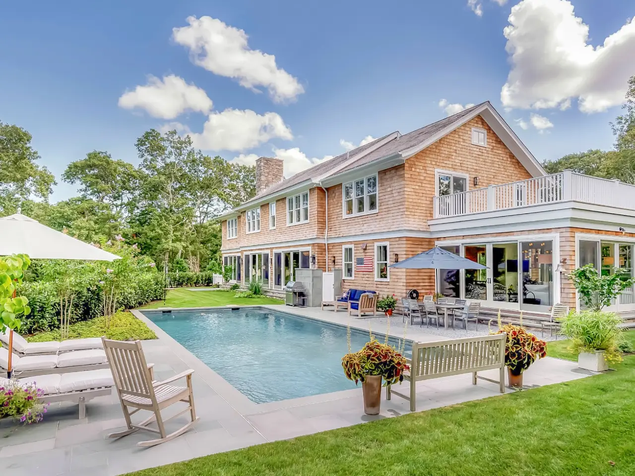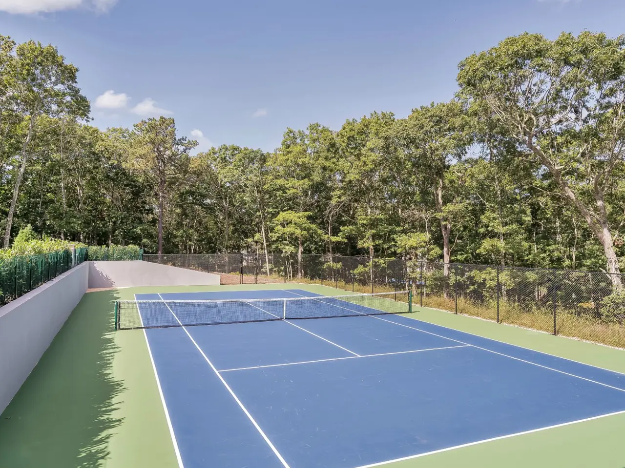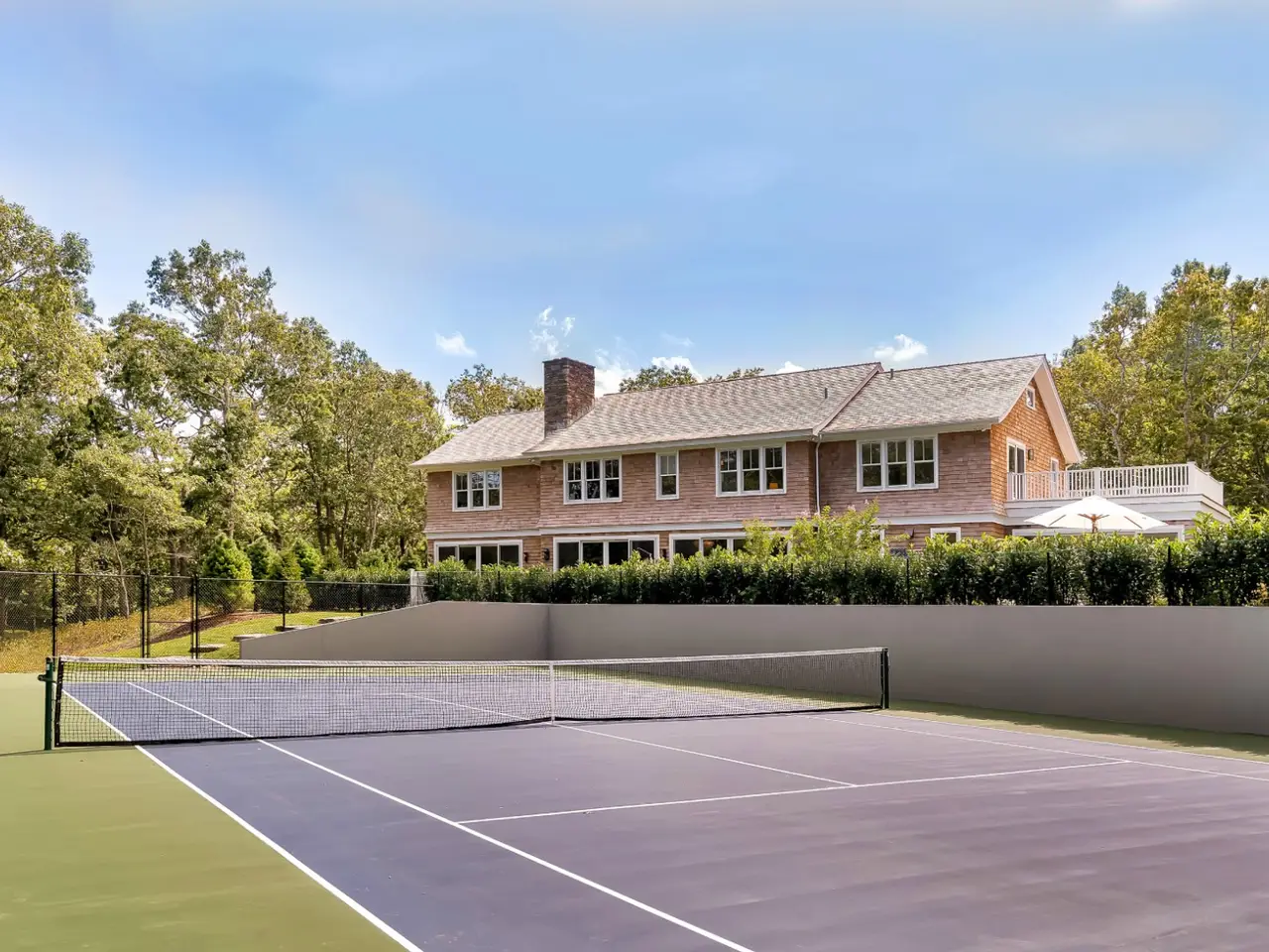 Rental Registration # 22-223. This newly constructed custom home offers resort-style amenities. Light-filled open living areas all have walls of glass opening to the grounds for indoor-outdoor living. These include a living room with fireplace, sunroom, formal dining area, and eat-in kitchen featuring island with seating, top-grade stainless steel appliances including wood-paneled Sub-Zero refrigerator/freezer and separate Sub-Zero refrigerator drawers, Wolf range, Italian-inspired custom cabinetry and breakfast area with expansive banquette. The six exquisite bedrooms and six and a half baths include three master suites incorporating features such as multiple fireplaces, sitting room, huge walk-in closets, luxurious baths and private roof terraces perched over the beautifully landscaped grounds. Pick your favorite spot and relax in the sun-drenched open living room or sunroom, or sit quietly with a good book behind 8' tall glass doors in the library. The finished lower level includes huge recreation areas with two fireplaces, glass-partitioned office or gym area, a bedroom and bath with private separate entrance, and a laundry room. The thoughtfully landscaped grounds provide a lovely and private setting for the heated gunite pool and bluestone patio with ample room for outdoor dining and lounging. Steps away, a private, all-weather tennis court. This masterfully designed home is located in a private upscale neighborhood a short way across the street from one of the prettiest bodies of water in the Hamptons. Updated for winter 2021/22 and summer 2022.