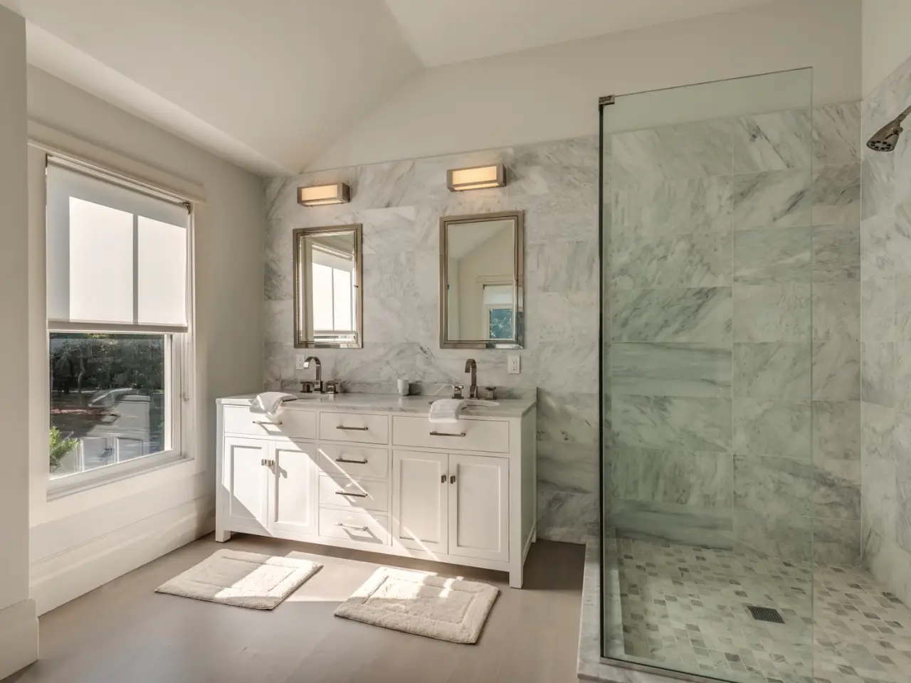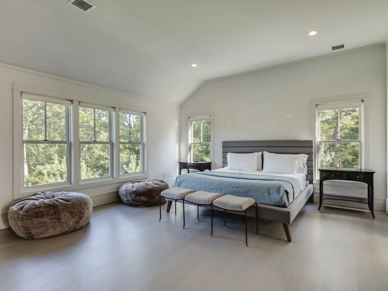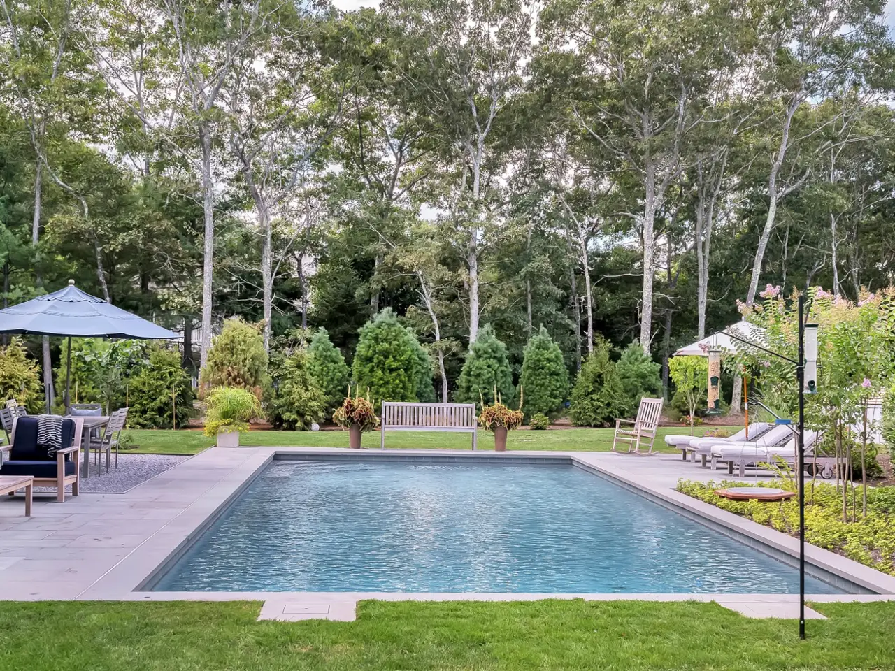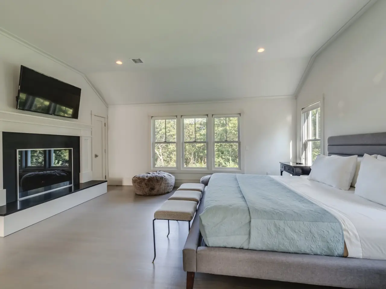 Rental Registration # 22-223. This newly constructed custom home offers resort-style amenities. Light-filled open living areas all have walls of glass opening to the grounds for indoor-outdoor living. These include a living room with fireplace, sunroom, formal dining area, and eat-in kitchen featuring island with seating, top-grade stainless steel appliances including wood-paneled Sub-Zero refrigerator/freezer and separate Sub-Zero refrigerator drawers, Wolf range, Italian-inspired custom cabinetry and breakfast area with expansive banquette. The six exquisite bedrooms and six and a half baths include three master suites incorporating features such as multiple fireplaces, sitting room, huge walk-in closets, luxurious baths and private roof terraces perched over the beautifully landscaped grounds. Pick your favorite spot and relax in the sun-drenched open living room or sunroom, or sit quietly with a good book behind 8' tall glass doors in the library. The finished lower level includes huge recreation areas with two fireplaces, glass-partitioned office or gym area, a bedroom and bath with private separate entrance, and a laundry room. The thoughtfully landscaped grounds provide a lovely and private setting for the heated gunite pool and bluestone patio with ample room for outdoor dining and lounging. Steps away, a private, all-weather tennis court. This masterfully designed home is located in a private upscale neighborhood a short way across the street from one of the prettiest bodies of water in the Hamptons. Updated for winter 2021/22 and summer 2022.