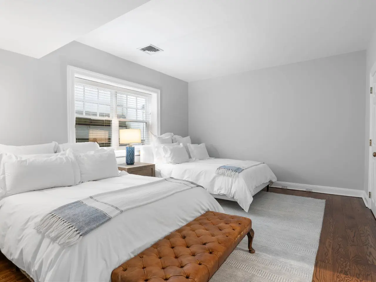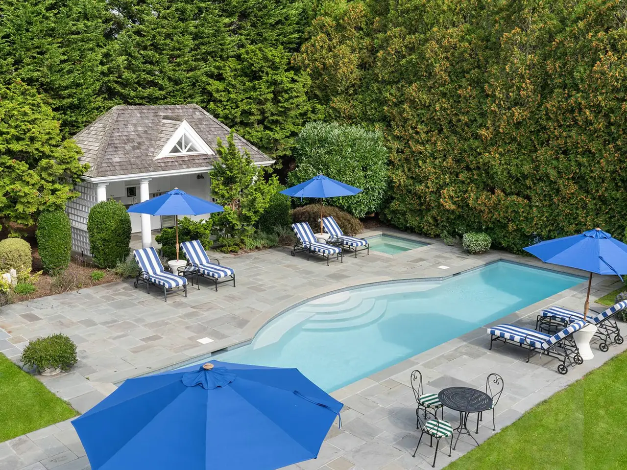 In the world class destination of the Hamptons is this classic gabled traditional on over 1.3 gorgeous acres in the coveted Georgica enclave of East Hampton Village offering a fortunate tenant a rare opportunity. Newly designer decorated, painted and floors done, this South of the highway jewel should not be overlooked. With elements of size and construction that could not be duplicated again on this parcel, a seven bedroom, approximately 8,000 square foot residence, on three levels of finely articulated living space, down a long driveway, and sequestered behind a gated entry, brings the combination of masterful construction, exquisite finishes, copious amenities and a sensible floor plan that has become the hallmark of fine East End design. Newly refinished oak floors welcome all into a grand entrance that fans out to find the living room and formal dining room, both warmed by their own fireplaces. The expansive kitchen and family room is bolstered by an additional outdoor kitchen making both intimate meals and grand entertaining effortless. A three-season sunroom adds additional space to spread out and relax while enjoying views of the verdant property. Upstairs, the primary wing with private balcony offers a large sleeping chamber with fireplace, luxurious bath and generous closets. Three additional en suite bedrooms, including one with fireplace, and a sitting/TV room or office complete the second floor. The finished lower level offers gym, billiards lounge, media room, powder room and two additional bedrooms sharing a full bath. Outside, major patios with ample room for couches, chairs and alfresco dining look out to the manicured lawn, pool with hot tub and cabana, while the sunken all weather tennis court is just beyond sheltered behind mature trees. Above the semi attached 2 car garage is a complete studio with full bath, perfect for the weekend overflow while a dedicated pool bath and laundry is built below. A professional half court invites all to practice their free throws at the end of an expanded parking court. Additional features include Sonos inside and out, public gas and water, security system, Wi-Fi with multiple boosters throughout, and irrigation. Extensive landscaping, specimen trees, colorful gardens and perimeter plantings have created an estate like setting only minutes to East Hampton Airport, Georgica Beach and East Hampton Village. This impeccable beauty should not be missed.