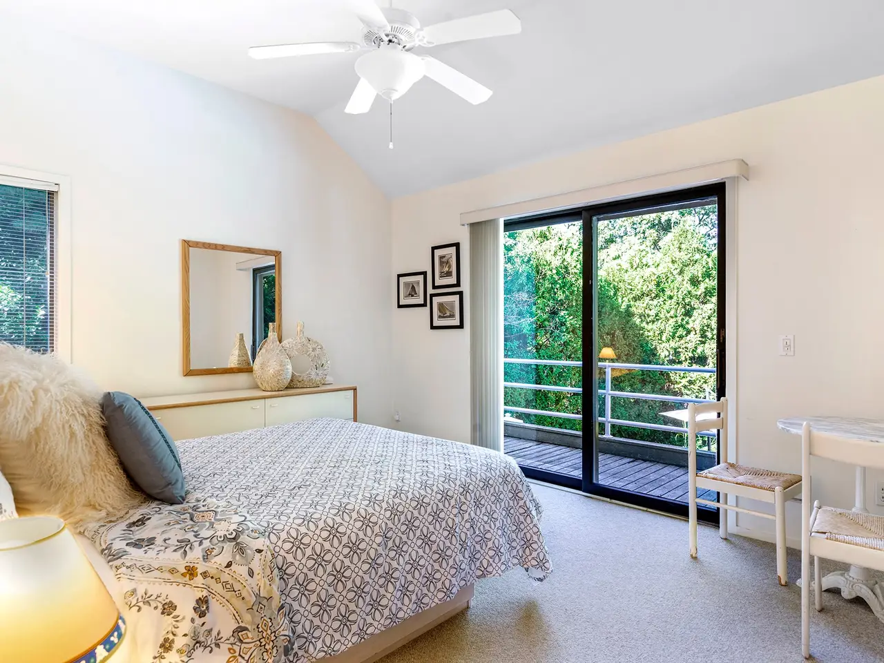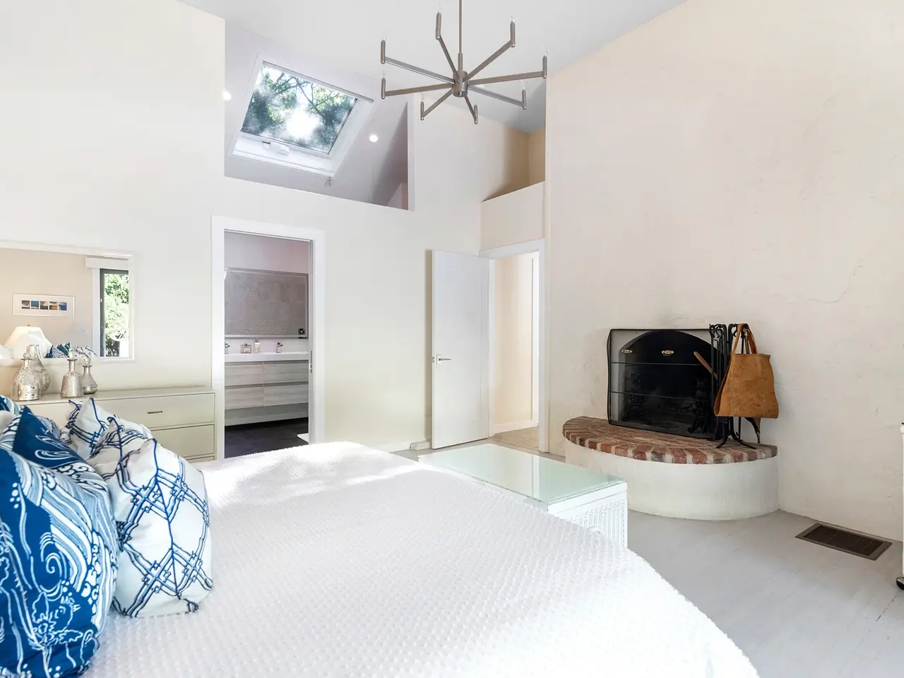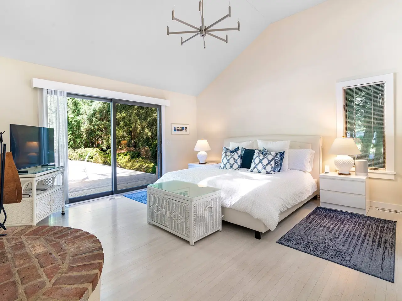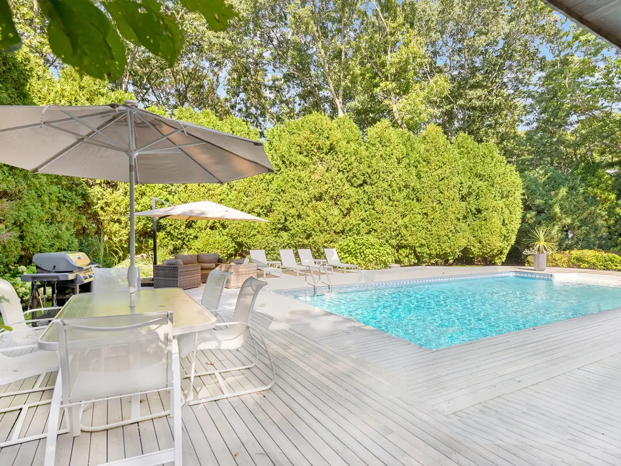 Located in East Hampton, less than three and a half (approximate) miles to the Atlantic Ocean at Main Beach, this three bedroom and two and a half bath Hamptons contemporary home embodies casual sophistication and a truly modern beach lifestyle. Situated in a convenient East Hampton village fringe location, the home features a vaulted living room and a breathtaking two-story stone fireplace, creating a warm and inviting atmosphere. The open-concept design seamlessly connects the living area to the dining room and kitchen, creating a perfect setting for entertaining. Lined with glass sliders, the great room offers panoramic views of the pool area and the ability to effortlessly transition between indoor and outdoor spaces. The first-floor primary en suite bedroom has a double height ceiling and a cozy fireplace, setting the tone for ultimate relaxation. Recently renovated, the new bath exudes modern opulence with a spa-like open shower. On the second level, two additional bedrooms along with a full bath provide ample space and privacy for guests. One of these bedrooms offers a terrace overlooking the pool area, offering a tranquil spot to unwind while enjoying the beautiful surroundings. The expansive deck provides the perfect space for outdoor dining, sunbathing, or simply enjoying the heated pool and unique blend of luxury, comfort, and privacy.