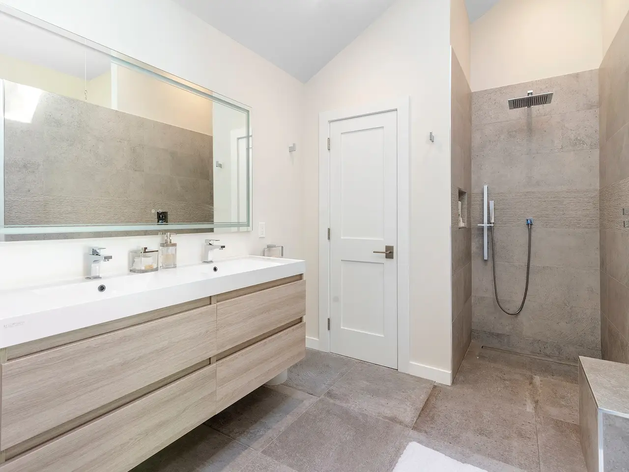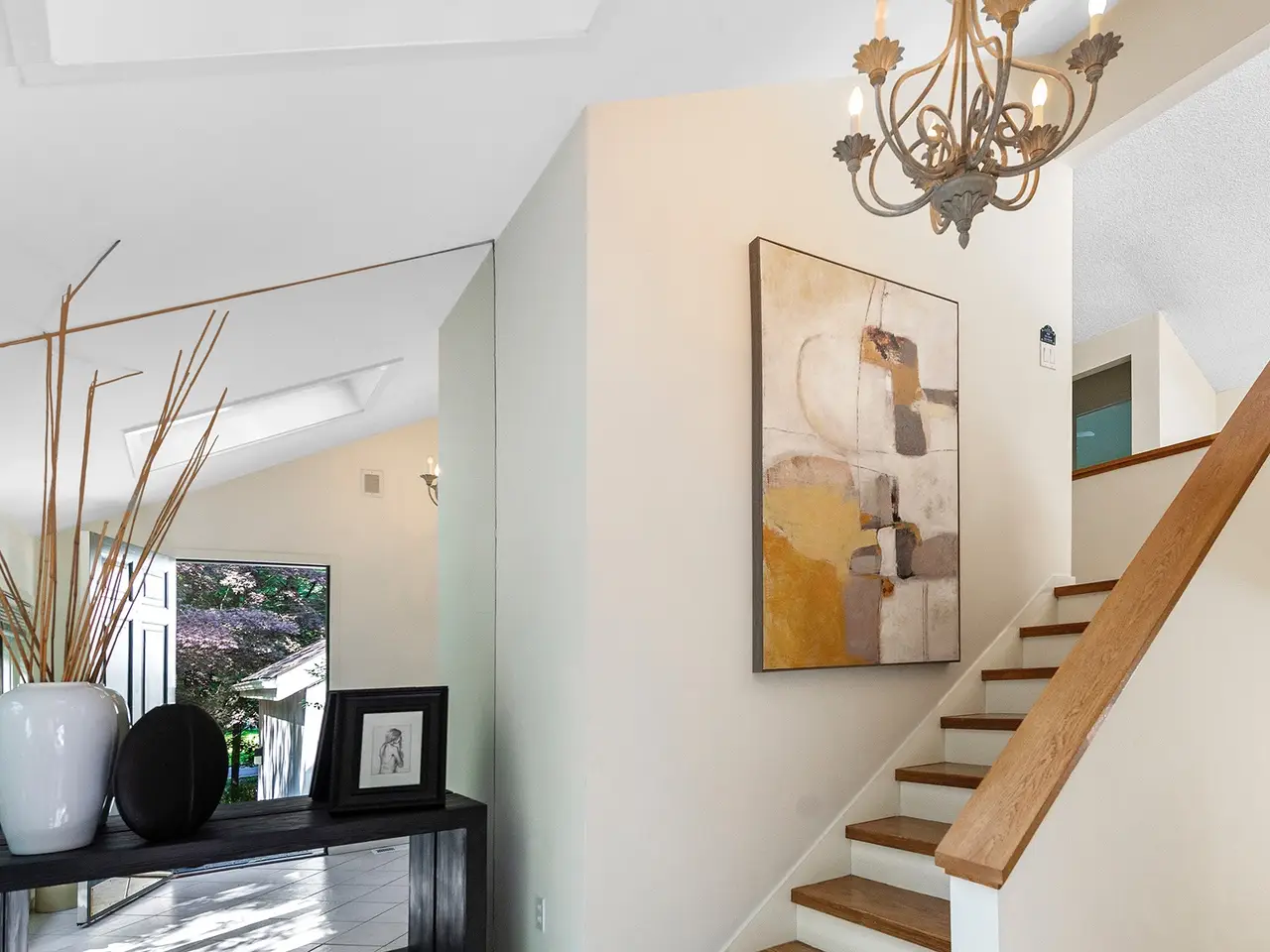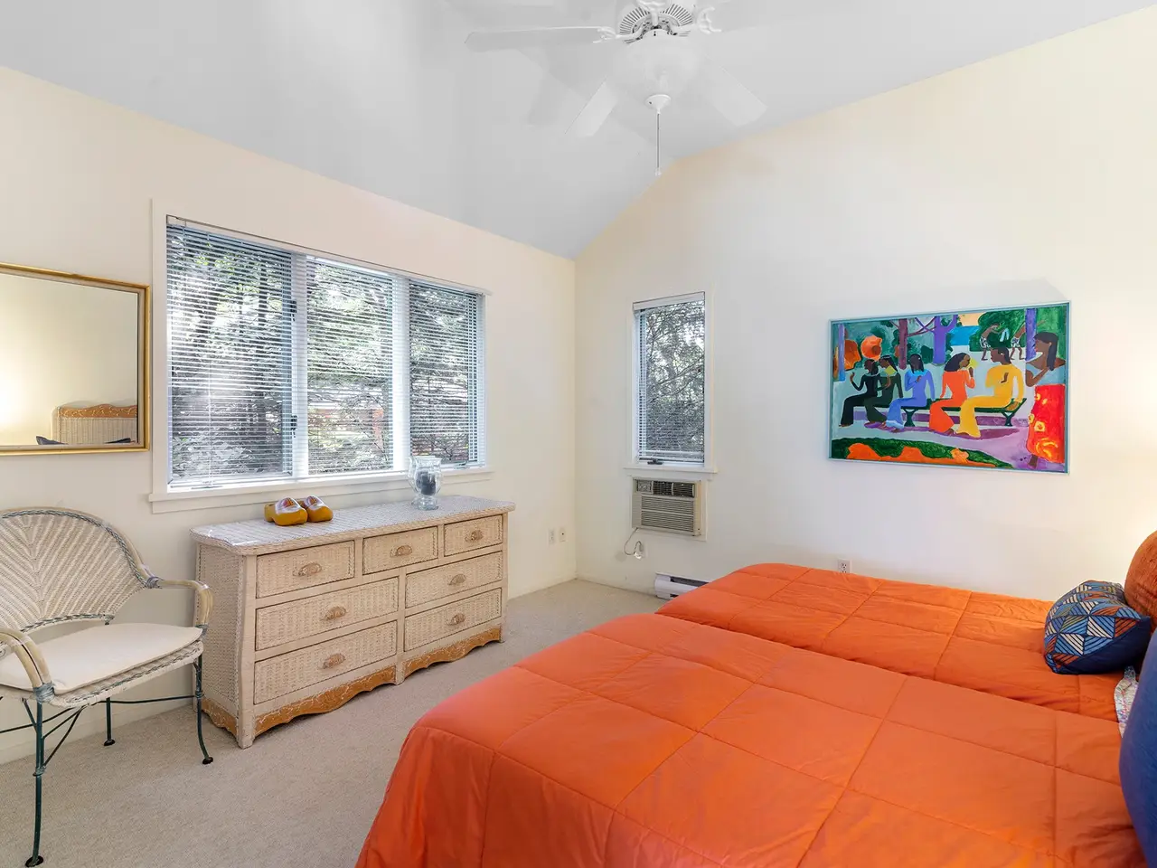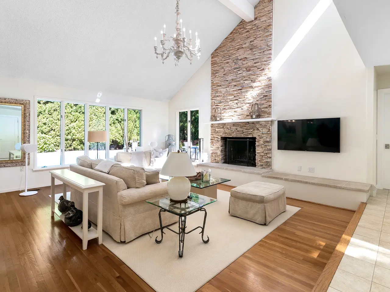 Located in East Hampton, less than three and a half (approximate) miles to the Atlantic Ocean at Main Beach, this three bedroom and two and a half bath Hamptons contemporary home embodies casual sophistication and a truly modern beach lifestyle. Situated in a convenient East Hampton village fringe location, the home features a vaulted living room and a breathtaking two-story stone fireplace, creating a warm and inviting atmosphere. The open-concept design seamlessly connects the living area to the dining room and kitchen, creating a perfect setting for entertaining. Lined with glass sliders, the great room offers panoramic views of the pool area and the ability to effortlessly transition between indoor and outdoor spaces. The first-floor primary en suite bedroom has a double height ceiling and a cozy fireplace, setting the tone for ultimate relaxation. Recently renovated, the new bath exudes modern opulence with a spa-like open shower. On the second level, two additional bedrooms along with a full bath provide ample space and privacy for guests. One of these bedrooms offers a terrace overlooking the pool area, offering a tranquil spot to unwind while enjoying the beautiful surroundings. The expansive deck provides the perfect space for outdoor dining, sunbathing, or simply enjoying the heated pool and unique blend of luxury, comfort, and privacy.