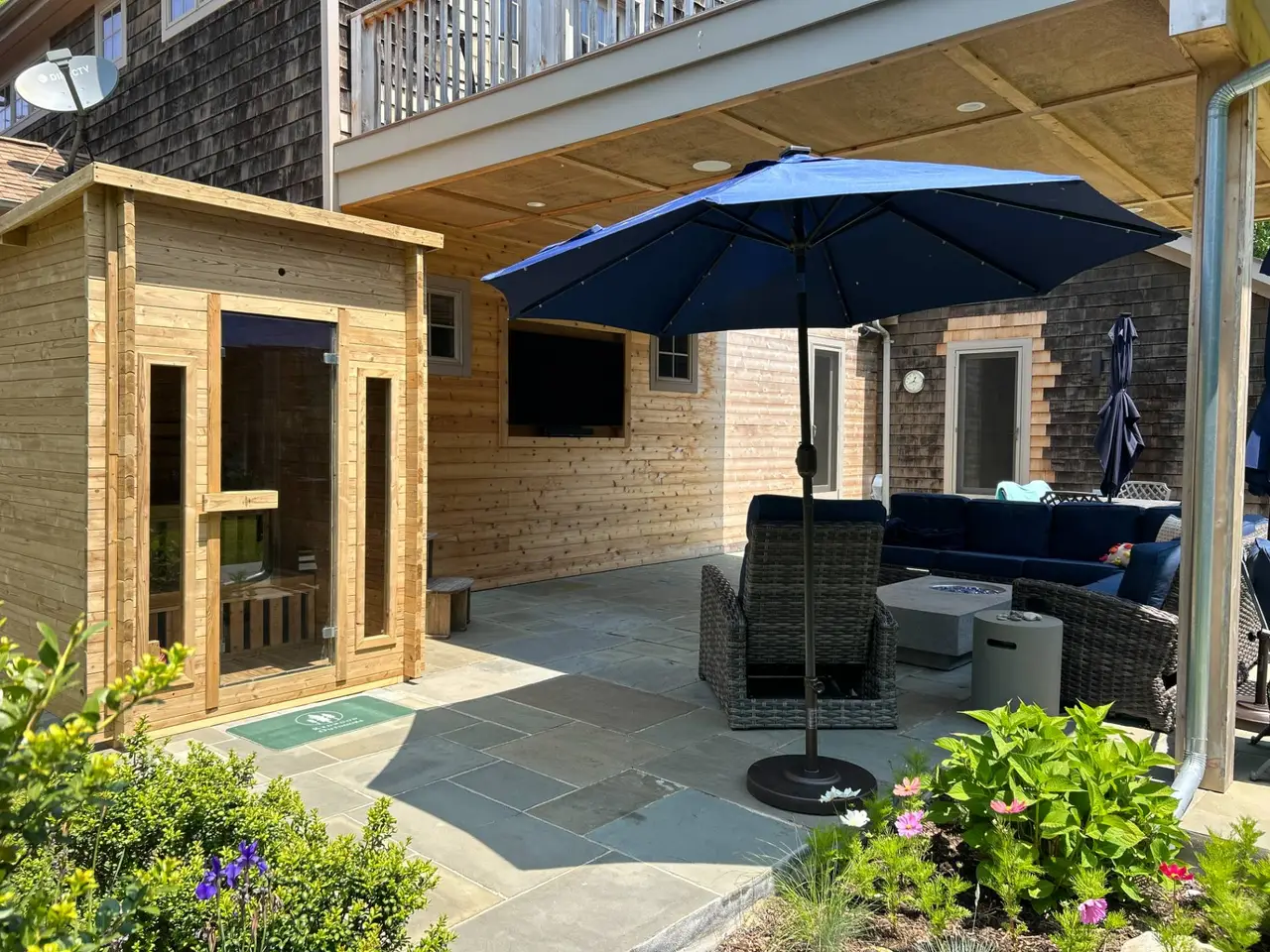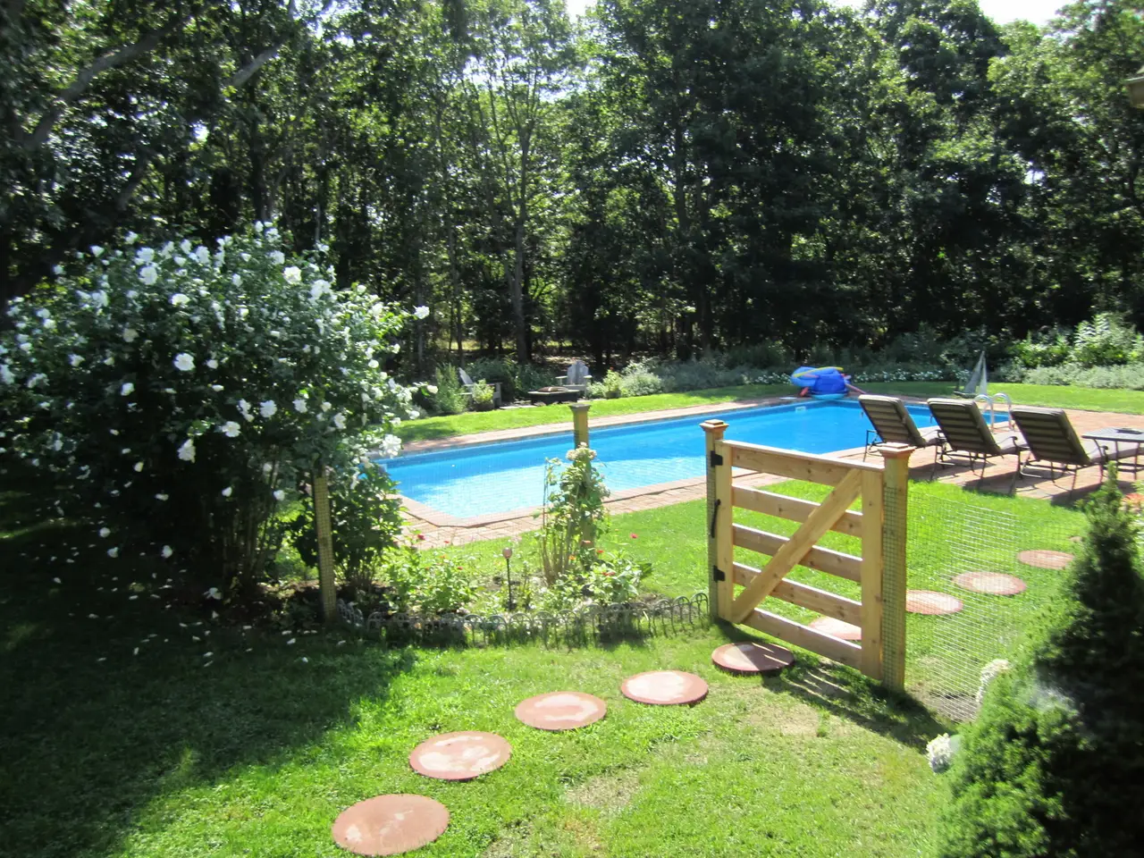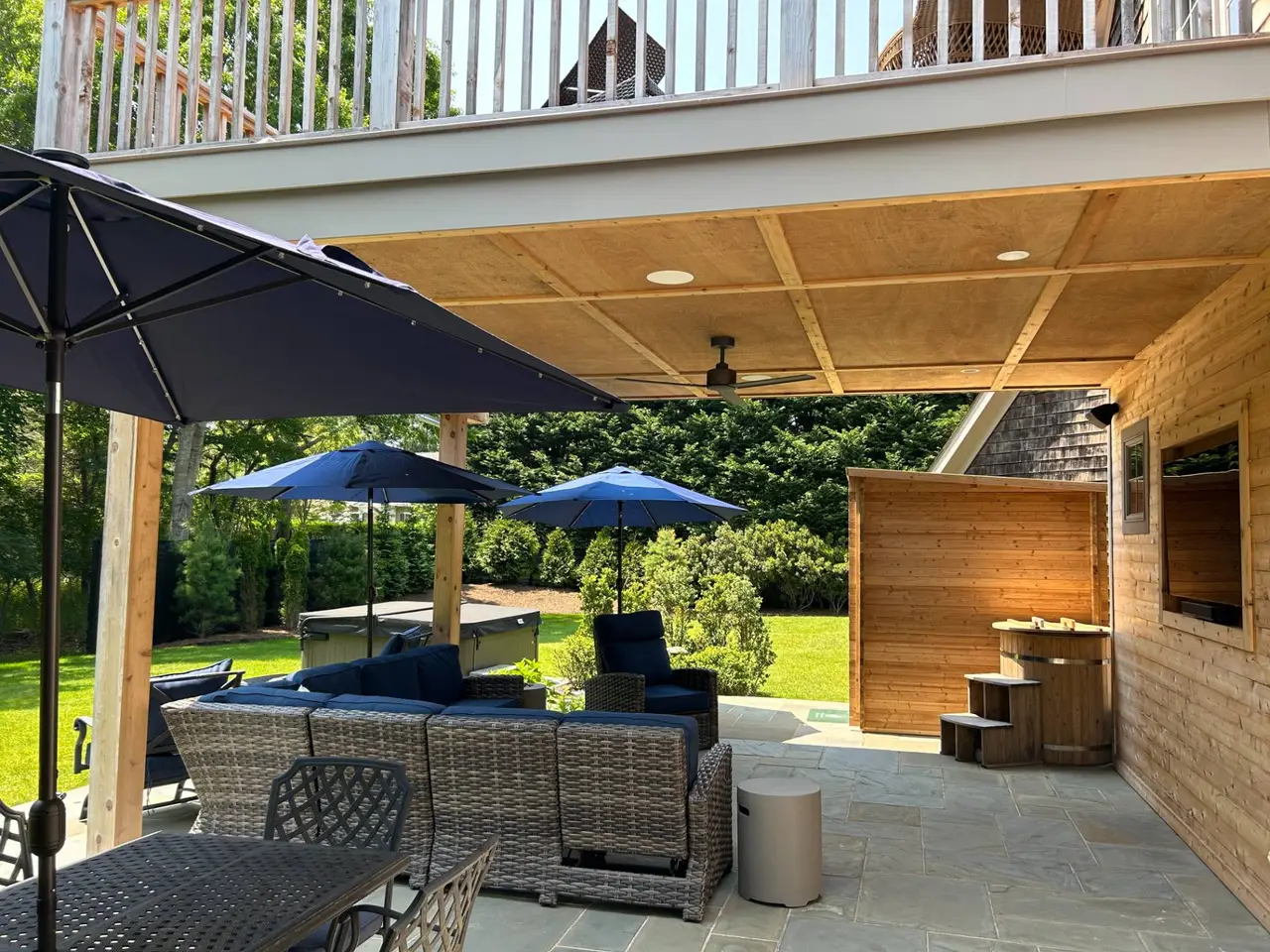 Rental Registry #23-865 - This one-of-a-kind home located on a private cul-de-sac offers a cathedral living room, den, loft, gourmet kitchen, four bedrooms and three and half baths. All amenities including central air, stereo system throughout interior and exterior, wireless internet access and finished lower level. There is an outdoor patio entertainment area with hot tub, outdoor sauna, cold plunge barrel, double deck with WiFi, covered patio with TV. The safe heated pool, outdoor shower and custom basketball court complete this perfect summer getaway. Proximity to village shops and ocean beaches. Short distance to the local farmers market, Nick & Toni's, the IGA grocery store, and Main Street. 741501
