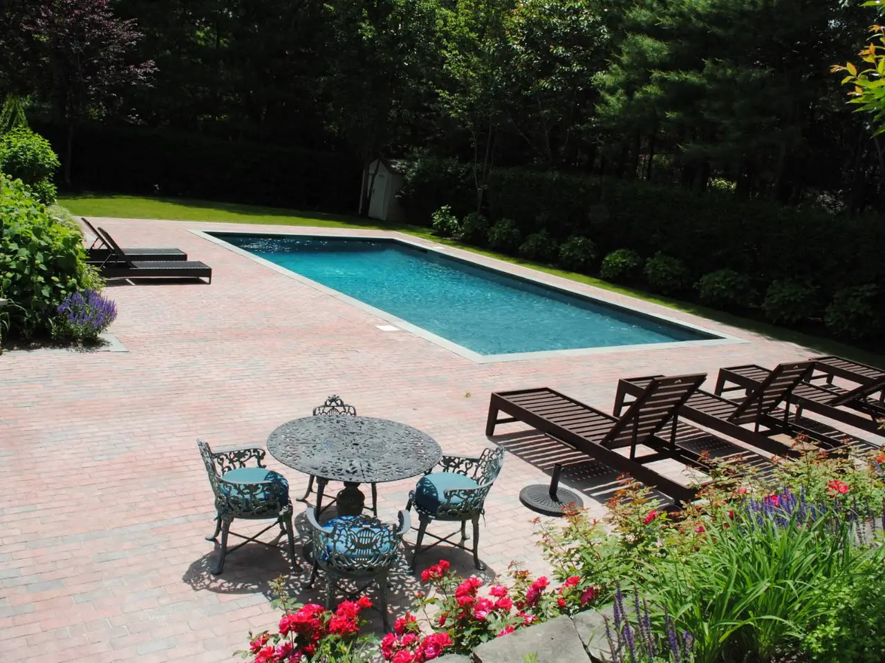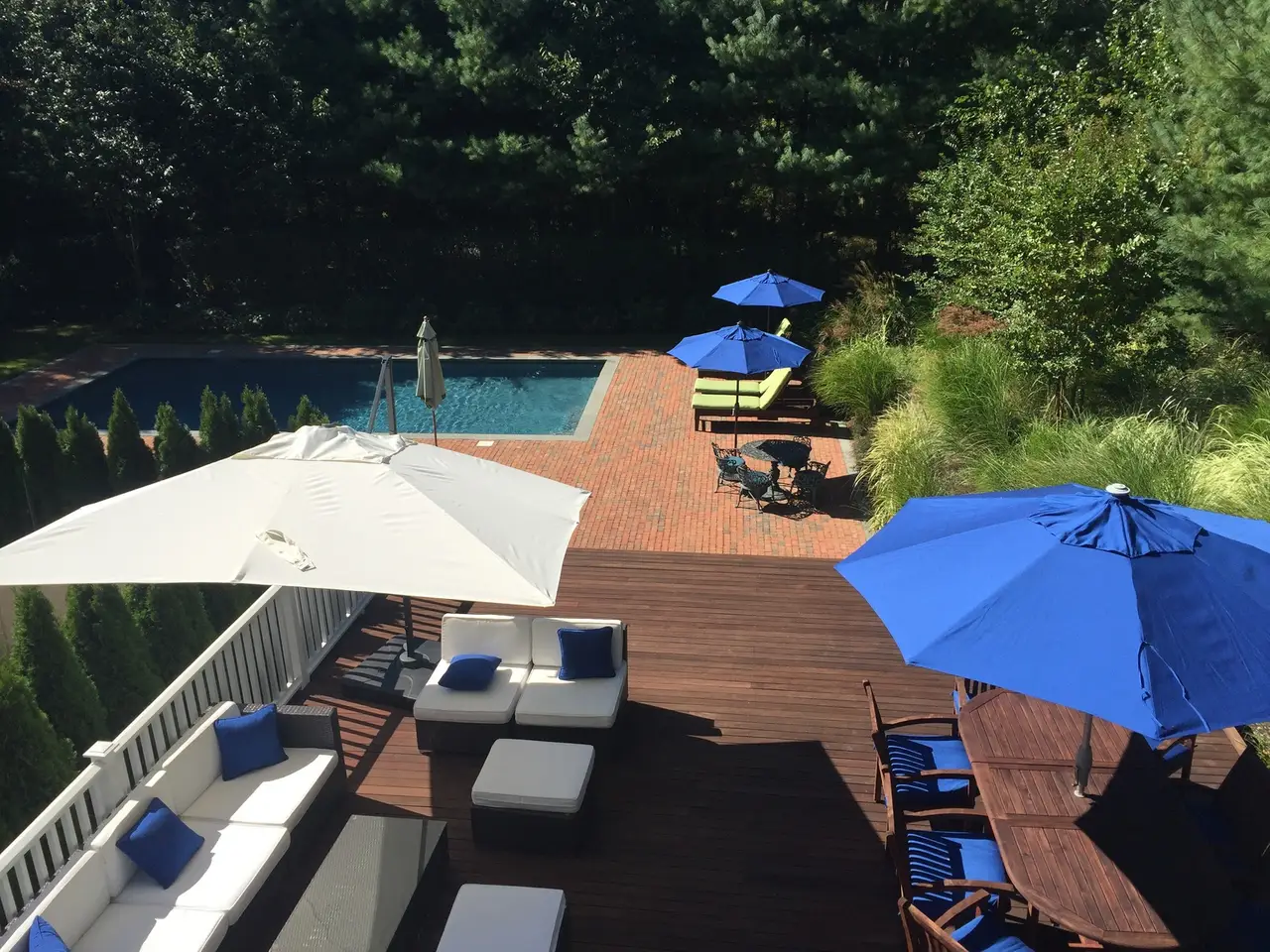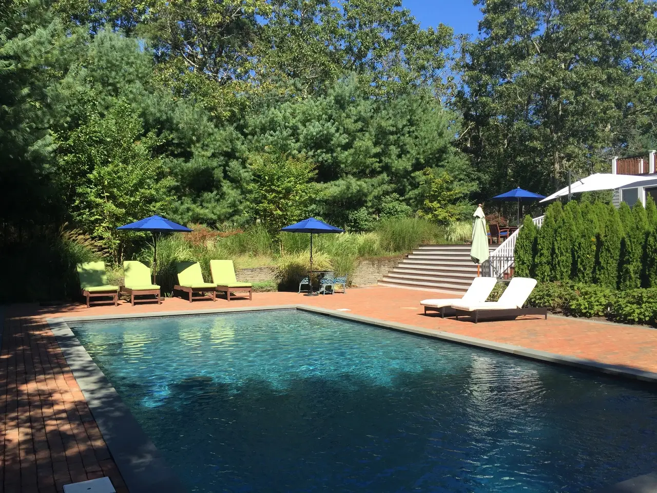 Rental Registration # 22-187. Welcome to the perfect East Hampton summer getaway. This elegant Post modern cedar shingle home is located just minutes from East Hampton Village, ocean beaches, and Main Street shopping. Nestled on a secluded acre off a private road, this 5-star estate-like home boasts 6,500 square feet of living space, with six bedrooms all en suite (separate master and junior suites), seven bathrooms, home theater, fitness center, home office, and spacious finished lower level. You will find plenty of room here with the flowing open floor plan, high ceilings, hardwood floors, large living room and huge separate den. A fabulous gourmet chef's kitchen opens to your expansive outdoor mahogany decking and patio, where you will find your sun-soaked and heated gunite pool. Wireless Sonos Sound System for inside and out is ideal for entertaining. Enjoy luxurious privacy all summer long in this exclusive property.