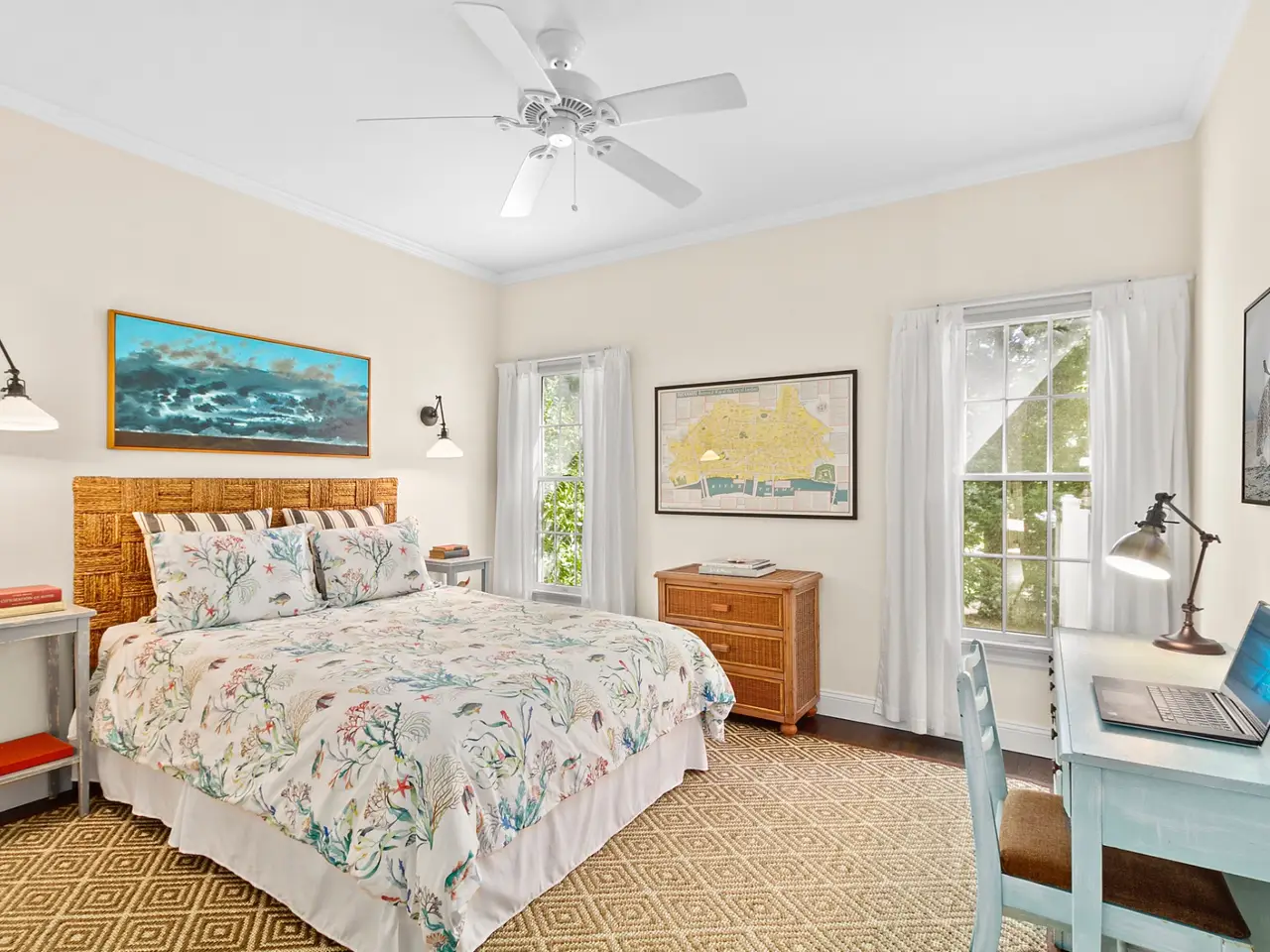 This quintessential Hamptons home features five bedrooms, three and a half baths and plenty of living space for the perfect summer getaway. Boasting a large double-high living room with a fireplace, dining area and open kitchen, this home has it all. The first floor is equipped with a generous master suite, half bath, and guest bedroom, while the second floor has an additional master suite and two additional guest bedrooms. The property is rounded out with a heated saltwater pool, surrounded by meticulously maintained landscaping, designed by a renowned horticulturist. Conveniently located, this is the ideal summer escape.