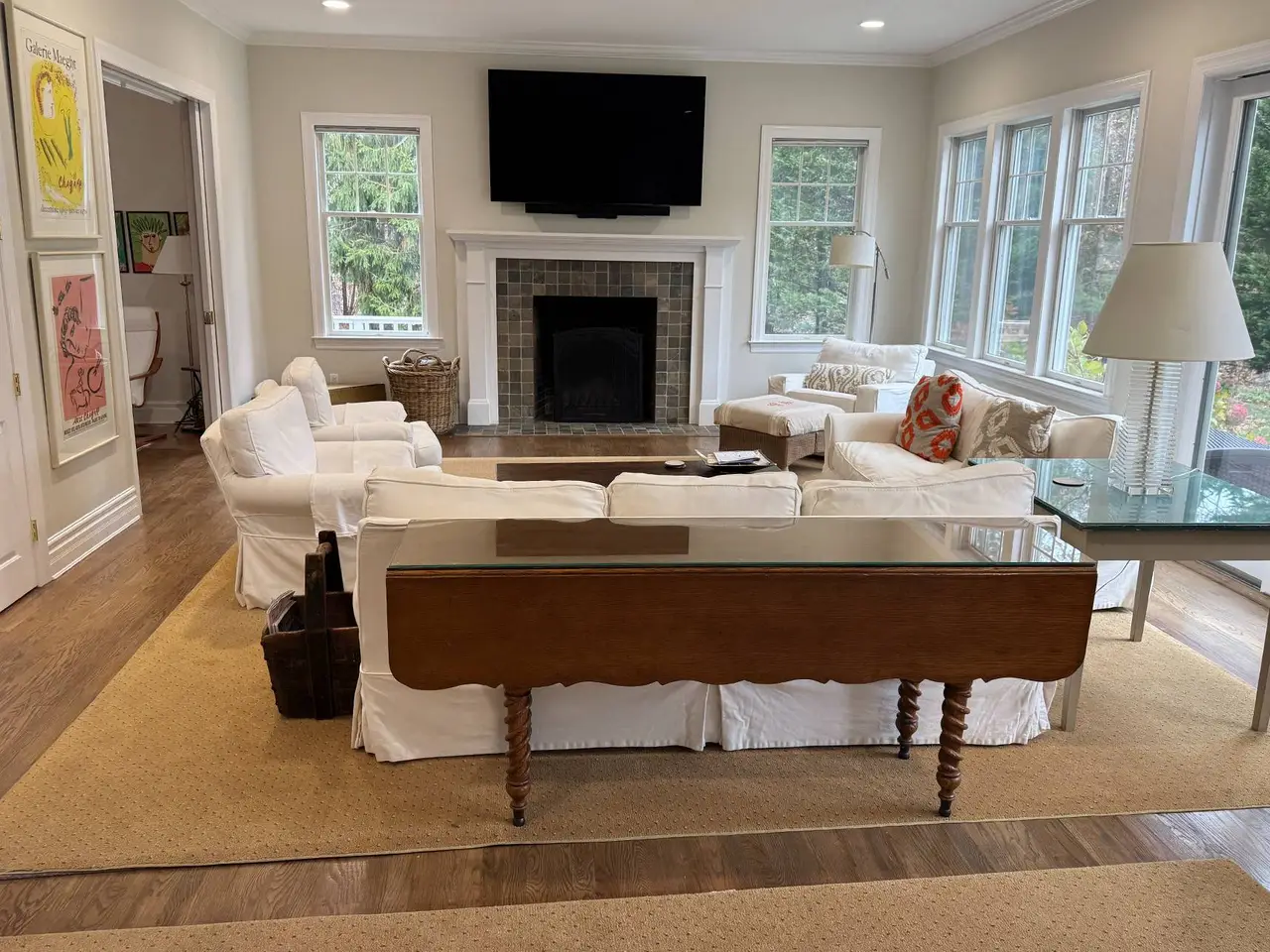 Rental Registration #: 18-189 This immaculate post modern is located on a quiet lane in East Hampton's Northwest Woods. Beautifully decorated, offering four bedrooms (including two masters), four baths, chef's kitchen, living room with fireplace, central air-conditioning and cable television. On approximately one and one-half acres, with brick terrace and a twenty by forty-foot heated pool. Listing ID: 738724