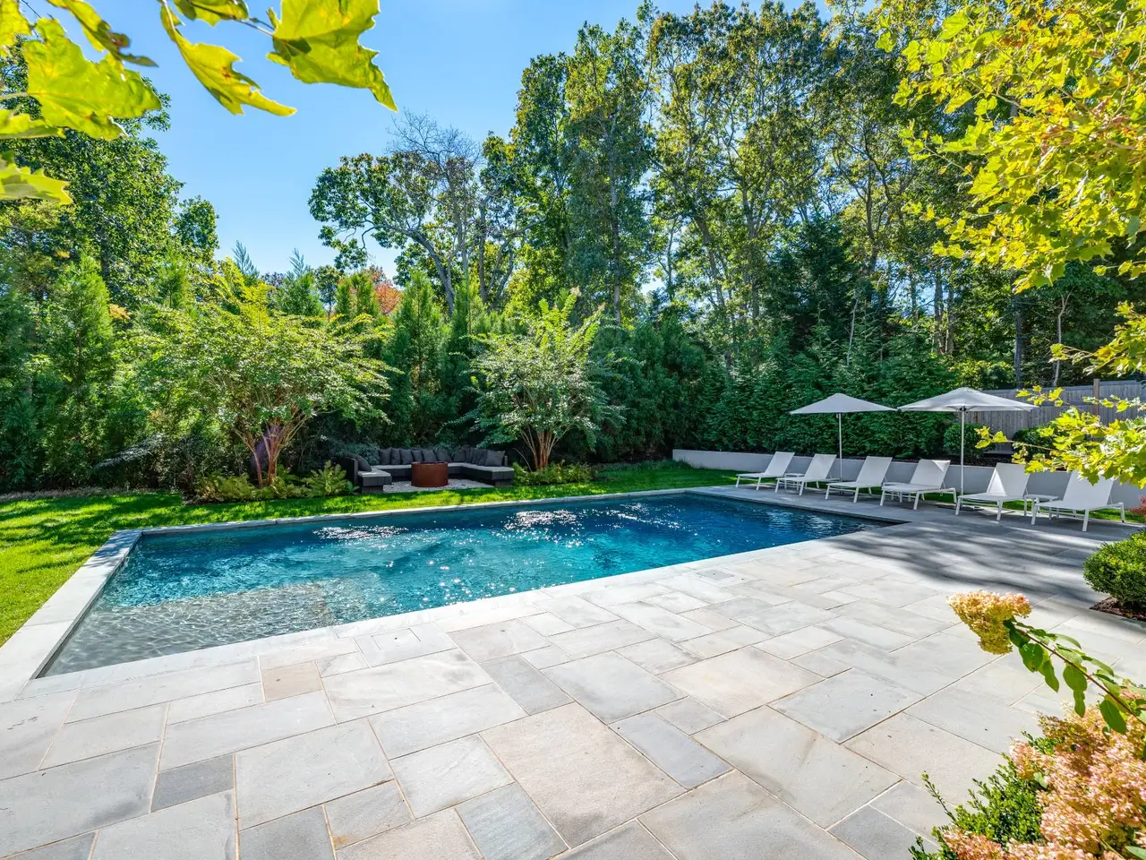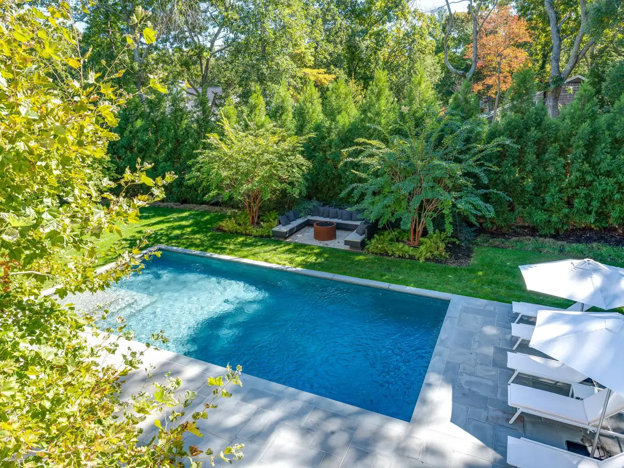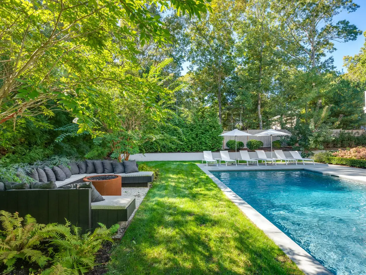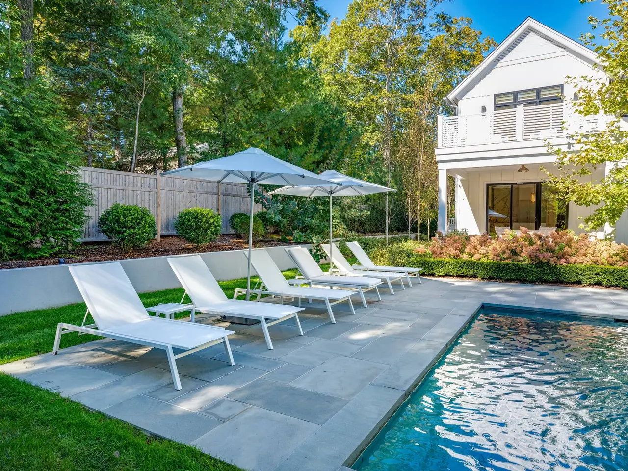 Beautiful architectural design, exquisite details and a coveted location in the Settlers Landing community of East Hampton combine to create an exceptional new offering. Built in 2019, the sophisticated design spans approximately 5,093 square feet of elegant living space on three levels, with floor plans that flows seamlessly throughout. The living room features a fireplace with custom, carved wood mantle and walls of cascading glass doors opening to an extensive bluestone patio. The kitchen is truly a showstopper, with a full wall of gorgeous marble, marble counters, custom iron and frosted glass cabinetry and an informal dining area with large sliding glass doors leading to the terrace. A light-filled formal dining room provides ample space for entertaining. Meticulously appointed throughout by a renowned decorator who captured the home's openness and light through the brilliant use of color, materials, and decor. The four bedrooms and four and one-half baths include an impressive master suite with private terrace and luxurious bath. The finished lower level is outfitted with a full bar, gaming and entertaining areas, a gym and a professional quality home theater with sumptuous seating. The 0.60-acre grounds, exactingly conceived by Landscape Details, are replete with extensive manicured plantings designed for all seasons, multiple outdoor dining and entertaining areas with imported designer seating suited for entertaining on any scale. Further highlights include a full outdoor kitchen with a Lynx grill, Kalamazoo pizza oven, refrigerator and icemaker, a firepit, and patios centered around the sparkling, heated gunite pool. This special property is located within the waterfront community of Settlers Landing, with deeded access to Three Mile Harbor nearby, and bay beaches moments away.