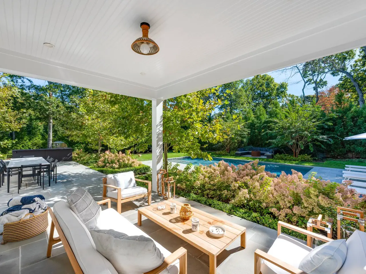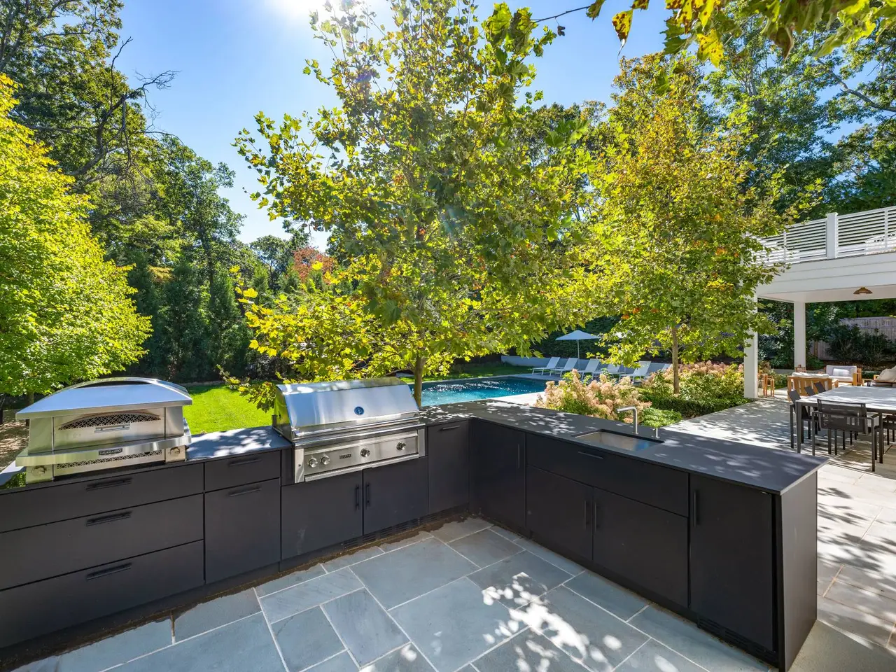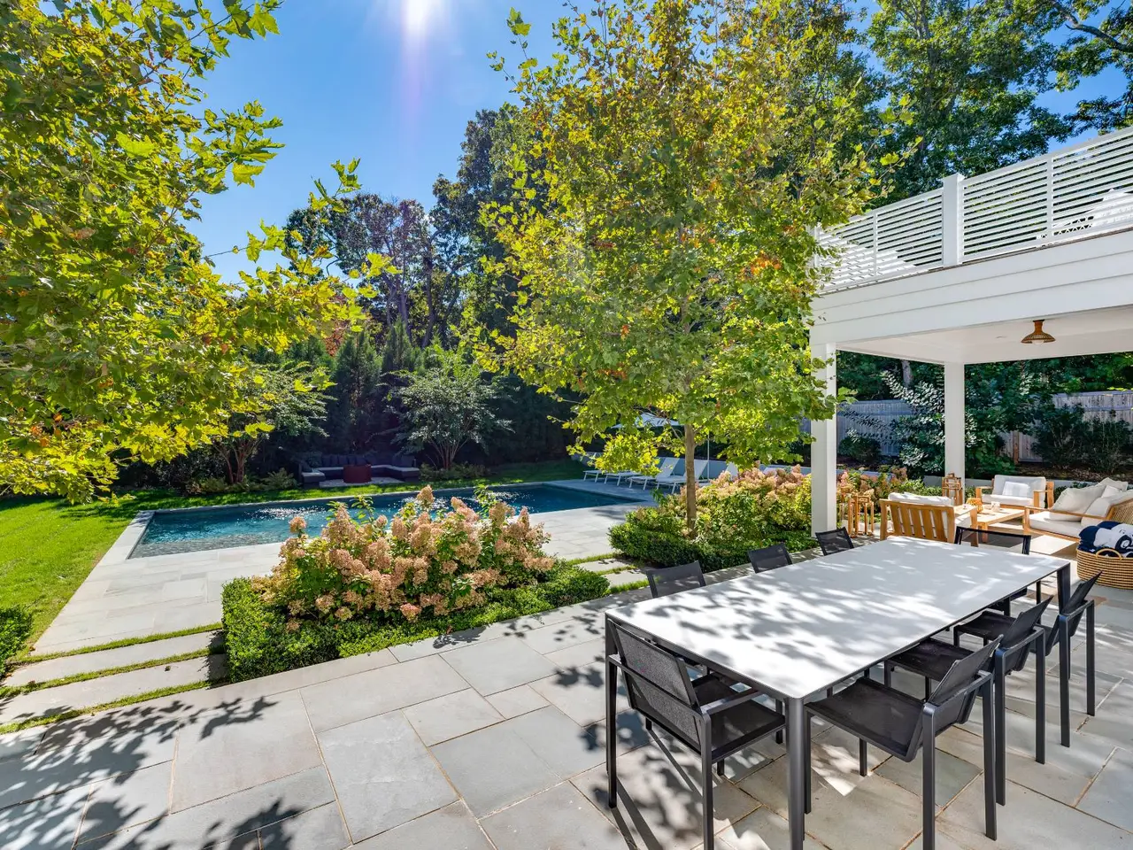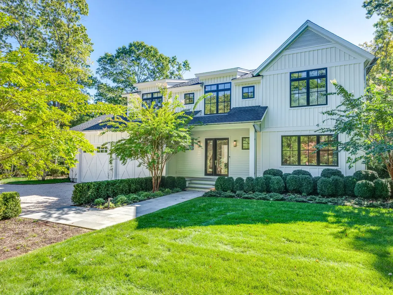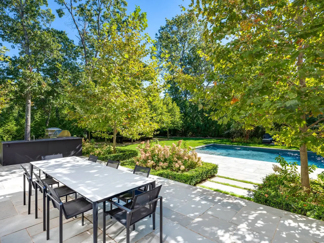 Beautiful architectural design, exquisite details and a coveted location in the Settlers Landing community of East Hampton combine to create an exceptional new offering. Built in 2019, the sophisticated design spans approximately 5,093 square feet of elegant living space on three levels, with floor plans that flows seamlessly throughout. The living room features a fireplace with custom, carved wood mantle and walls of cascading glass doors opening to an extensive bluestone patio. The kitchen is truly a showstopper, with a full wall of gorgeous marble, marble counters, custom iron and frosted glass cabinetry and an informal dining area with large sliding glass doors leading to the terrace. A light-filled formal dining room provides ample space for entertaining. Meticulously appointed throughout by a renowned decorator who captured the home's openness and light through the brilliant use of color, materials, and decor. The four bedrooms and four and one-half baths include an impressive master suite with private terrace and luxurious bath. The finished lower level is outfitted with a full bar, gaming and entertaining areas, a gym and a professional quality home theater with sumptuous seating. The 0.60-acre grounds, exactingly conceived by Landscape Details, are replete with extensive manicured plantings designed for all seasons, multiple outdoor dining and entertaining areas with imported designer seating suited for entertaining on any scale. Further highlights include a full outdoor kitchen with a Lynx grill, Kalamazoo pizza oven, refrigerator and icemaker, a firepit, and patios centered around the sparkling, heated gunite pool. This special property is located within the waterfront community of Settlers Landing, with deeded access to Three Mile Harbor nearby, and bay beaches moments away.
