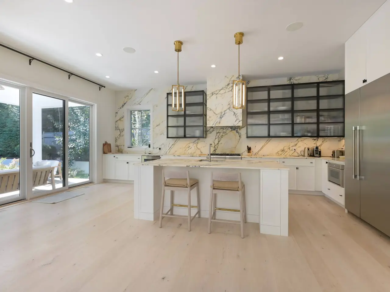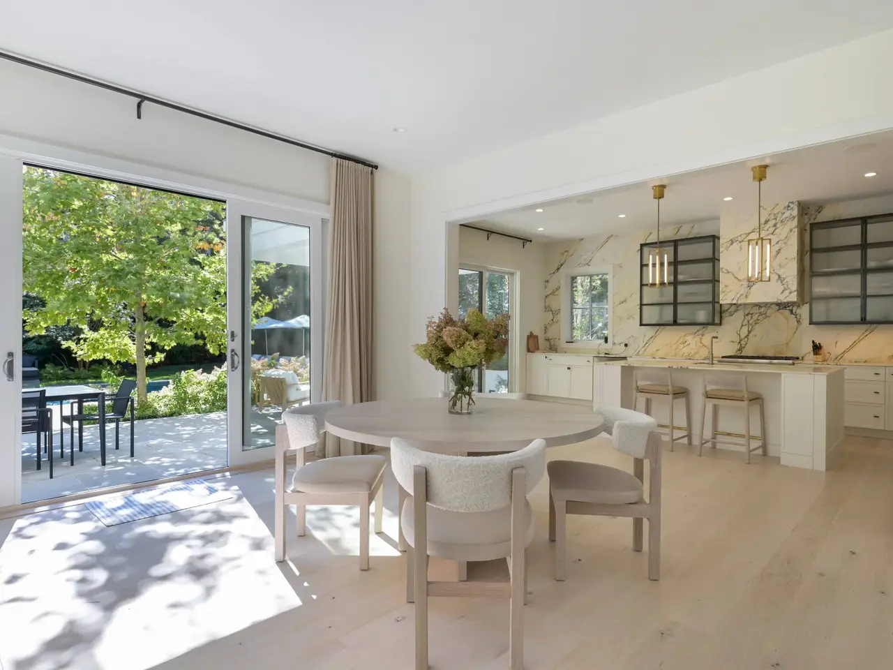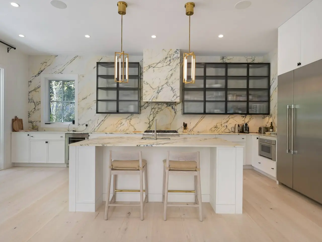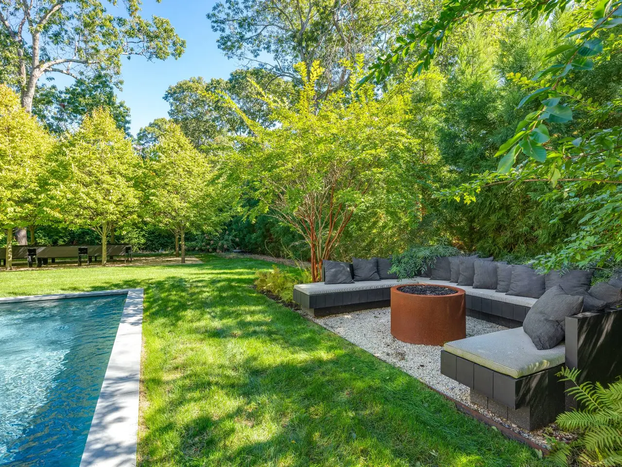 Beautiful architectural design, exquisite details and a coveted location in the Settlers Landing community of East Hampton combine to create an exceptional new offering. Built in 2019, the sophisticated design spans approximately 5,093 square feet of elegant living space on three levels, with floor plans that flows seamlessly throughout. The living room features a fireplace with custom, carved wood mantle and walls of cascading glass doors opening to an extensive bluestone patio. The kitchen is truly a showstopper, with a full wall of gorgeous marble, marble counters, custom iron and frosted glass cabinetry and an informal dining area with large sliding glass doors leading to the terrace. A light-filled formal dining room provides ample space for entertaining. Meticulously appointed throughout by a renowned decorator who captured the home's openness and light through the brilliant use of color, materials, and decor. The four bedrooms and four and one-half baths include an impressive master suite with private terrace and luxurious bath. The finished lower level is outfitted with a full bar, gaming and entertaining areas, a gym and a professional quality home theater with sumptuous seating. The 0.60-acre grounds, exactingly conceived by Landscape Details, are replete with extensive manicured plantings designed for all seasons, multiple outdoor dining and entertaining areas with imported designer seating suited for entertaining on any scale. Further highlights include a full outdoor kitchen with a Lynx grill, Kalamazoo pizza oven, refrigerator and icemaker, a firepit, and patios centered around the sparkling, heated gunite pool. This special property is located within the waterfront community of Settlers Landing, with deeded access to Three Mile Harbor nearby, and bay beaches moments away.