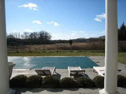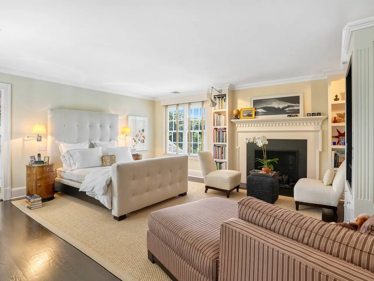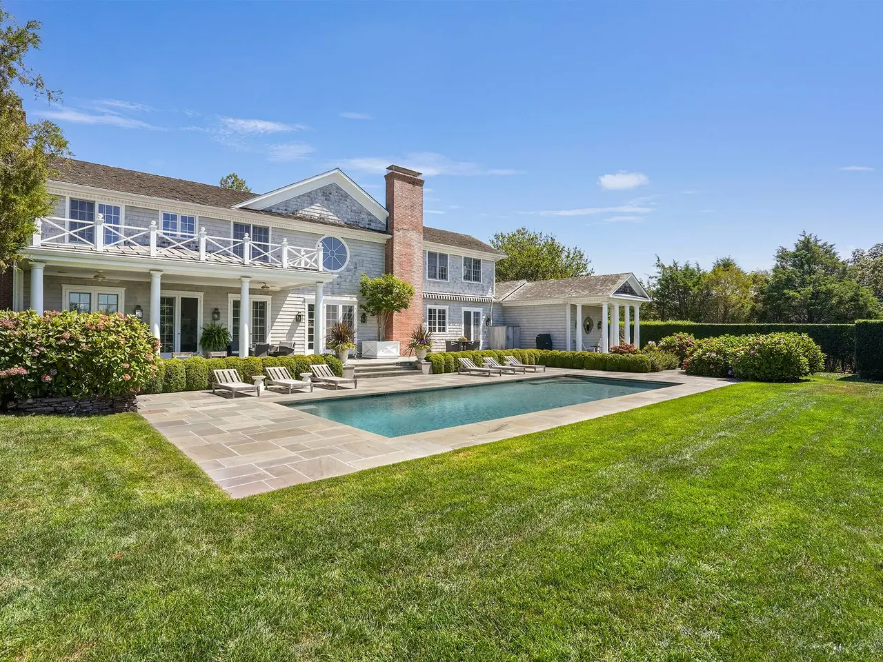 This elegant 3,000 sq. ft. traditional, designed by acclaimed interior designer Larry Laslo, combines contemporary comfort with refined architectural detail. The home's clean lines, sophisticated palette, and Hollywood Regency accents create a residence that is both stylish and welcoming. The main level features a formal entry with a striking black-and-white checkerboard floor, leading into a spacious living room, dining area, and kitchen. Eleven-foot ceilings, substantial crown moldings, and a double-height foyer with a grand staircase contribute to the home's impressive scale. The upper level is thoughtfully laid out with a private primary suite on one wing and a guest suite plus study/library on the other. The study is designed for versatility, offering a convertible option for additional overnight accommodations. A marble laundry room completes the interiors. South-facing principal rooms provide abundant natural light and open views across a wide field. Outdoor amenities include a heated gunite pool, bluestone patio, and covered porch, offering multiple areas for entertaining and summer living. Conveniently located just minutes from East Hampton Village, the property is close to shopping, galleries, dining, theaters, and beaches. Listing ID: 743623