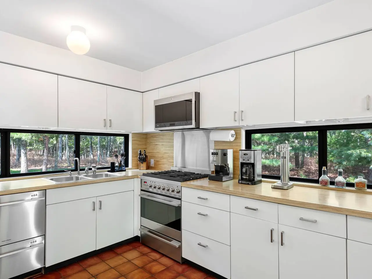 Located in the Northwest woods, just a few miles from the village. Stylish home offering three bedrooms and 2.5 baths of spacious airy living and set on a gorgeous and completely private three-acre lot bordering a reserve (no visible neighbors during the summer). Oversized living room, dining room and den with a 65-inch flat screen TV. Central air, heated pool, beautiful decking, BBQ, indoor-outdoor audio/video, fireplace, Wi-Fi (also, Wi-Fi enabled lights, thermostat, universal remote) -- Super spacious!