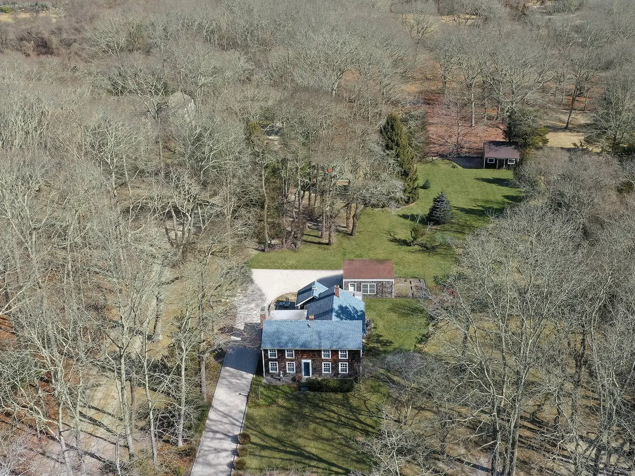 Updated historic home on 6.72 +/- acres near East Hampton Village, Main Beach and minutes to Round Swamp Farm! Built before zoning and cleared, the unique property consists of two contiguous, separate parcels. The post and beam cape style home sits on 3.58 +/- acres with a separate vacant and build-able 3.14 +/- acre lot behind it. The residence features three bedrooms and two full baths. Gorgeous wood floors are throughout. The open living room with a wood-burning fireplace and dining room both have wood-beamed ceilings and a wall of windows allowing natural light to permeate the charming spaces. The two bedrooms on the first floor also boast wood beams and wide plank wood floors. The kitchen features lots of granite countertop space and generous wood cabinets for all your storage needs. It has a high beamed ceiling, a Viking stove, Bosch dishwasher and GE Monogram refrigerator. Finishing the main floor is a full bathroom and a full washer and dryer nook. As you go upstairs you will notice the old beams, some with the old wooden pegs framing the doorway. Here, the rooms include an area currently used as an office, a primary bedroom, full bath as well as a unfinished 'attic' type room great for storage or future playroom. Outside, the deck area is perfect for barbecuing, relaxing and taking in the natural landscape. The property also features a one-car garage and an old barn that was once home to horses. The nearly 7 acres affords you plenty of room to expand, bring your horses, add a pool, tennis and some great vegetable and flower gardens! Create your perfect compound in East Hampton. The two parcels are also available separately.