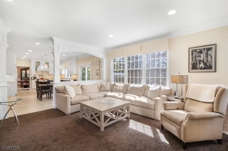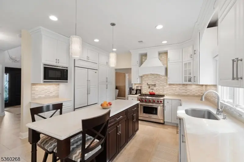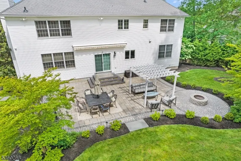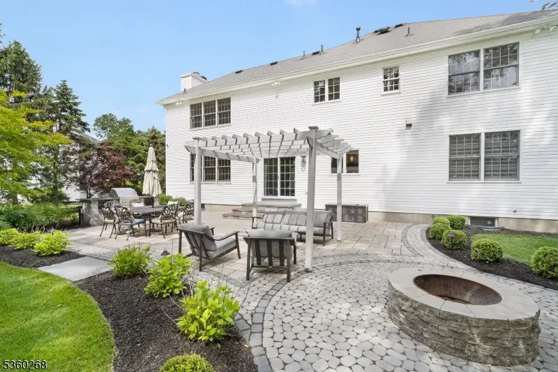 Outstanding brick front Center Hall Colonial set back beautifully on spectacular showcase property in a welcoming cul-de-sac neighborhood- a truly compelling luxury home abounding with custom amenities. 9 rooms including 4 airy bedrooms, 3 full baths, powder room, and brimming with many desirable features and captivating details, including volume ceilings, custom millworker, stylish lighting, lustrous hardwood flooring, and a newly renovated designer kitchen. This 3203 sq ft homes has a comfortable, spacious floor plan and seamless flow with the added utility and comfort of a sprawling finished lower level with full bath and kitchenette, plus a two-car attached garage, paved driveway with ample parking, expansive rear patio area with pergola, fire pit, and barbeque island, walk-in storage shed, pancake flat lawns with exquisite landscaping, and rear yard with tree-lined borders on three sides ensuring the utmost backyard privacy. Other notable features include abundant closet space, six-panel interior doors, neutral interior color scheme, central fire and security system including outdoor camera and Ring doorbell, newer 75-gallon hot water heater, no-maintenance brick and vinyl exterior siding, worry-free public utilities (all underground), and desirable cul-de-sac location; expertly maintained, skillfully updated, and move-in ready. An ideal commuter-friendly location offering easy access to connecting major roads and highways, and less than 23 miles to Newark airport.
