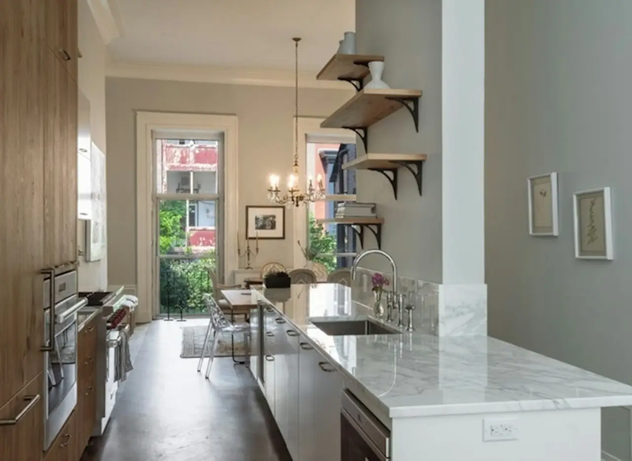 This beautiful garden apartment located in an elegant townhouse has been fully renovated and converted to a 4 bedroom, 3.5 bath home. The parlor floor has a spacious living room, bright dining room, chef's kitchen, bedroom and bath, cozy library with additional powder room and all with modern Chevron floors, 13" foot ceilings, central air & massive windows. French doors off the library to your private balcony leading to the lush garden. The Italian, Aster kitchen with breakfast table, Sub-Zero fridge, 2 ovens, 36" Viking range & wine cooler is open to the living room and formal dining room which faces the garden. Two of the four bedrooms are en-suite and a primary has French doors leading to the original, sunken garden from 1920 with mature plantings. Another primary bedroom has a double sink, mosaic & marble tiles & a walk-in closet. This home is perfect for those looking for both a mix of old & new world charm all in the convenience of the heart of Greenwich Village just off the Gold Coast.